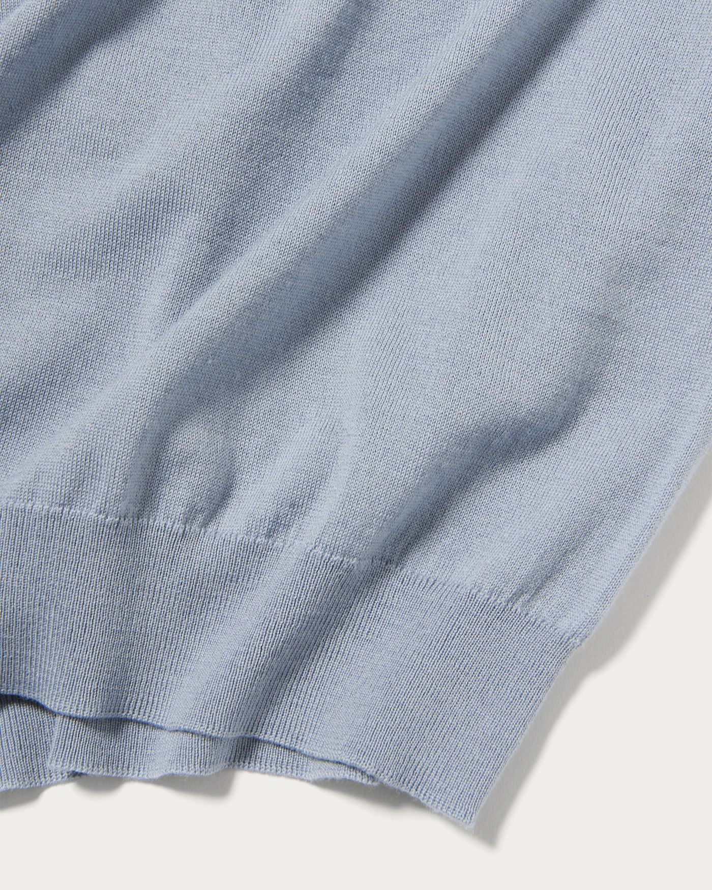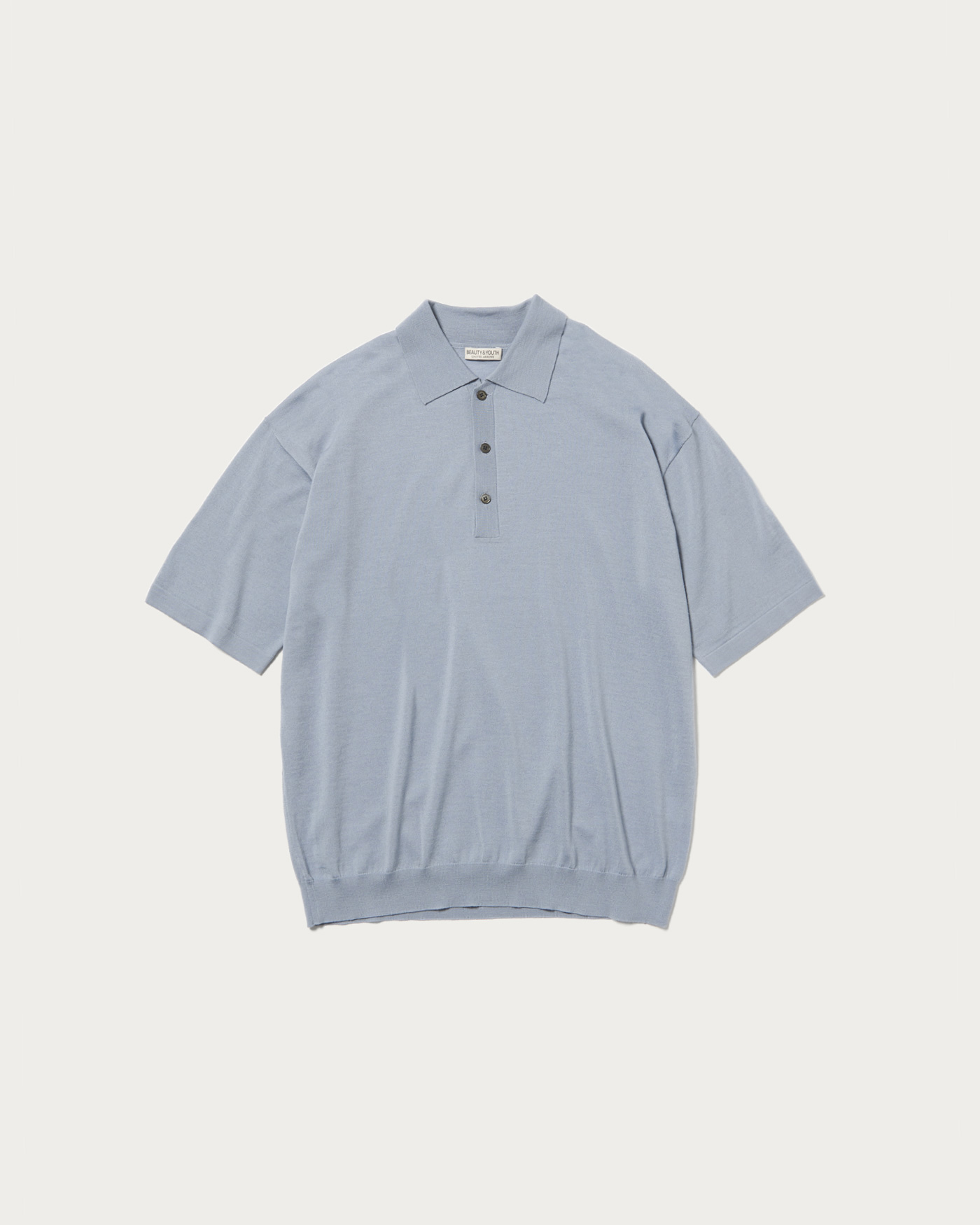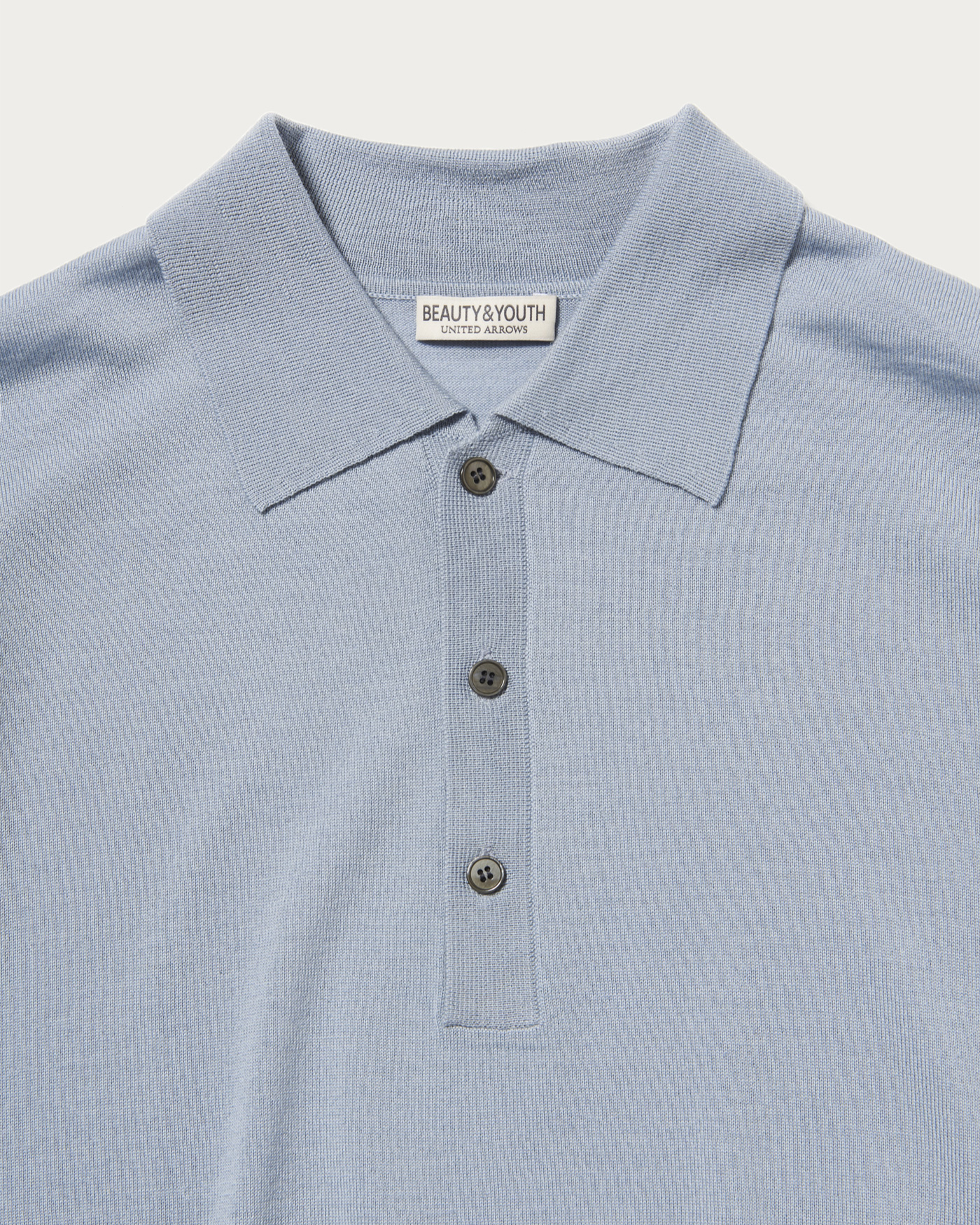 A fine gauge knit polo made from high-quality washable wool. It features a relaxed silhouette with just the right amount of room, and the cuffs and hem ribbing are woven with ultra-fine stretch yarn for added stability. The thin, tightly-knit fabric offers an appealing drape. We also recommend pairing it with a cardigan made from the same material for a coordinated ensemble.