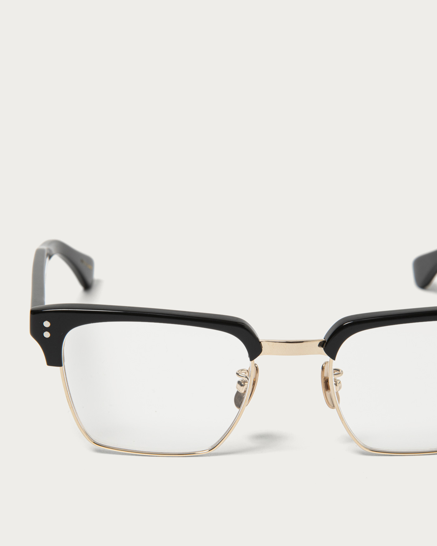 The design commonly known as "Sirmont" features a transition from fabric to metal material at the top of the lenses. The nose pads are crafted from titanium, giving them a luxurious finish. We offer two plating colors: silver and gold. This is a meticulously crafted item made in Japan.
