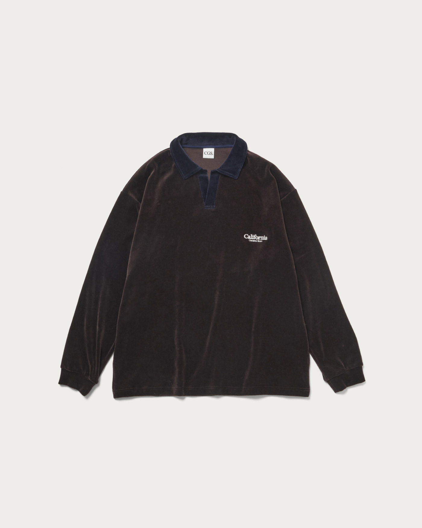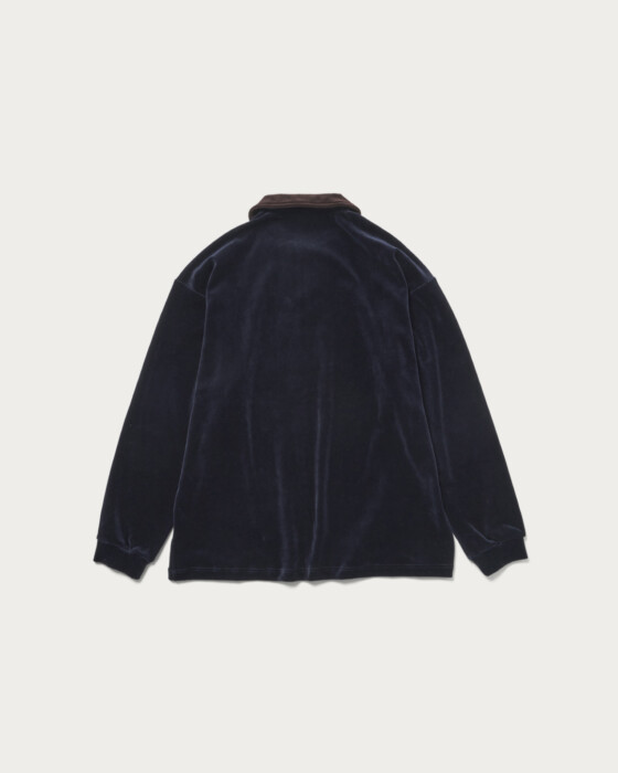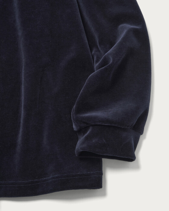 Skipper shirt made from 100% organic cotton medium-weight velour jersey. The velour's subtle sheen and smooth nap provide a comfortable texture. This item features a silhouette that perfectly balances fashion and relaxation, making it an excellent choice to wear on its own. The embroidered shop logo on the left chest adds a distinctive touch. Designed to be unisex, this versatile piece can be worn as a standalone top or as an inner layer.