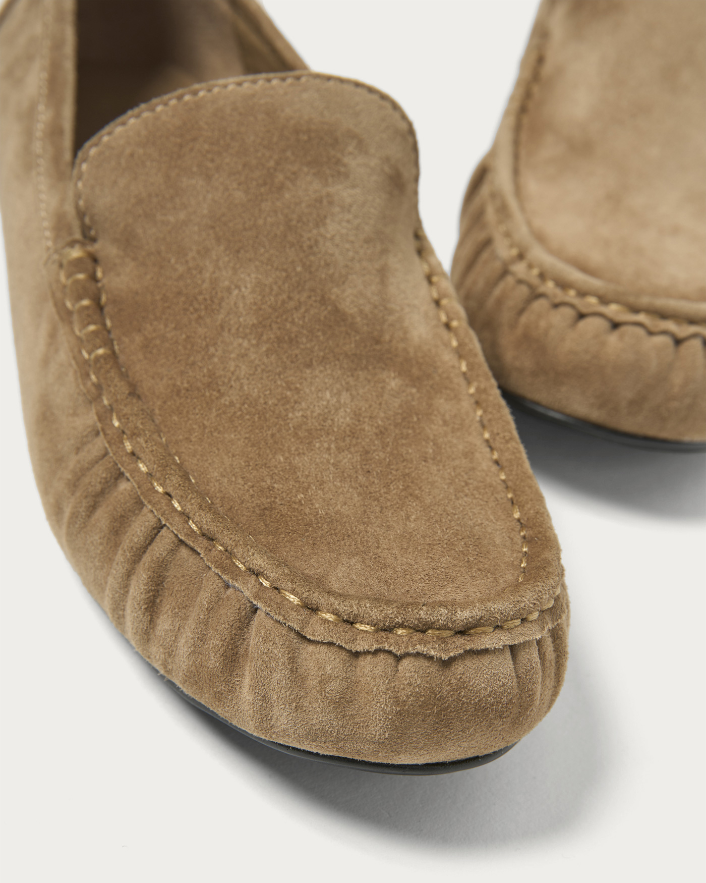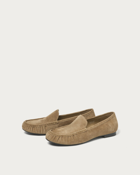 The slip-ons, featuring a sheep leather upper and a cow leather insole, offer a comfortable fit with the softness of the leather gently enveloping your feet. They pair well with a wide range of bottoms, such as wide pants, denim, and long skirts, making them versatile for various outfits. Not only are they great for styling with socks or tights in the colder seasons, but they also look fabulous worn barefoot in the spring and summer. These shoes are perfect for wearing all year round.