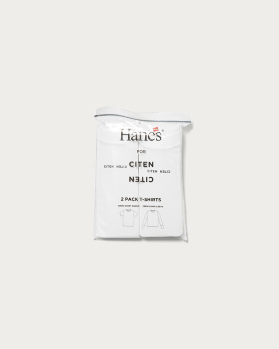 The pack T-shirt, specially ordered from Hanes, is a new staple piece from CITEN. Designed to be worn with a feminine touch, it features a shorter length and wider sleeves, while the neckline is crafted to be sleek and casual. This results in a silhouette that looks well-balanced whether worn alone or as a layering piece. Additionally, blind stitching, commonly used in vintage T-shirts, is applied to the sleeve cuffs and hem to create a minimalistic impression. The CITEN logo is printed on the chest, adding an accent to the design.