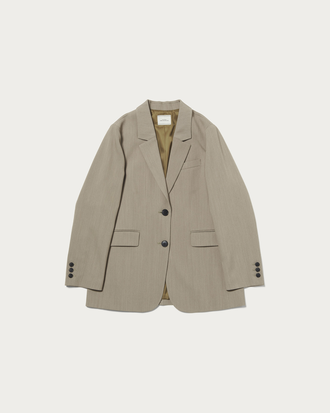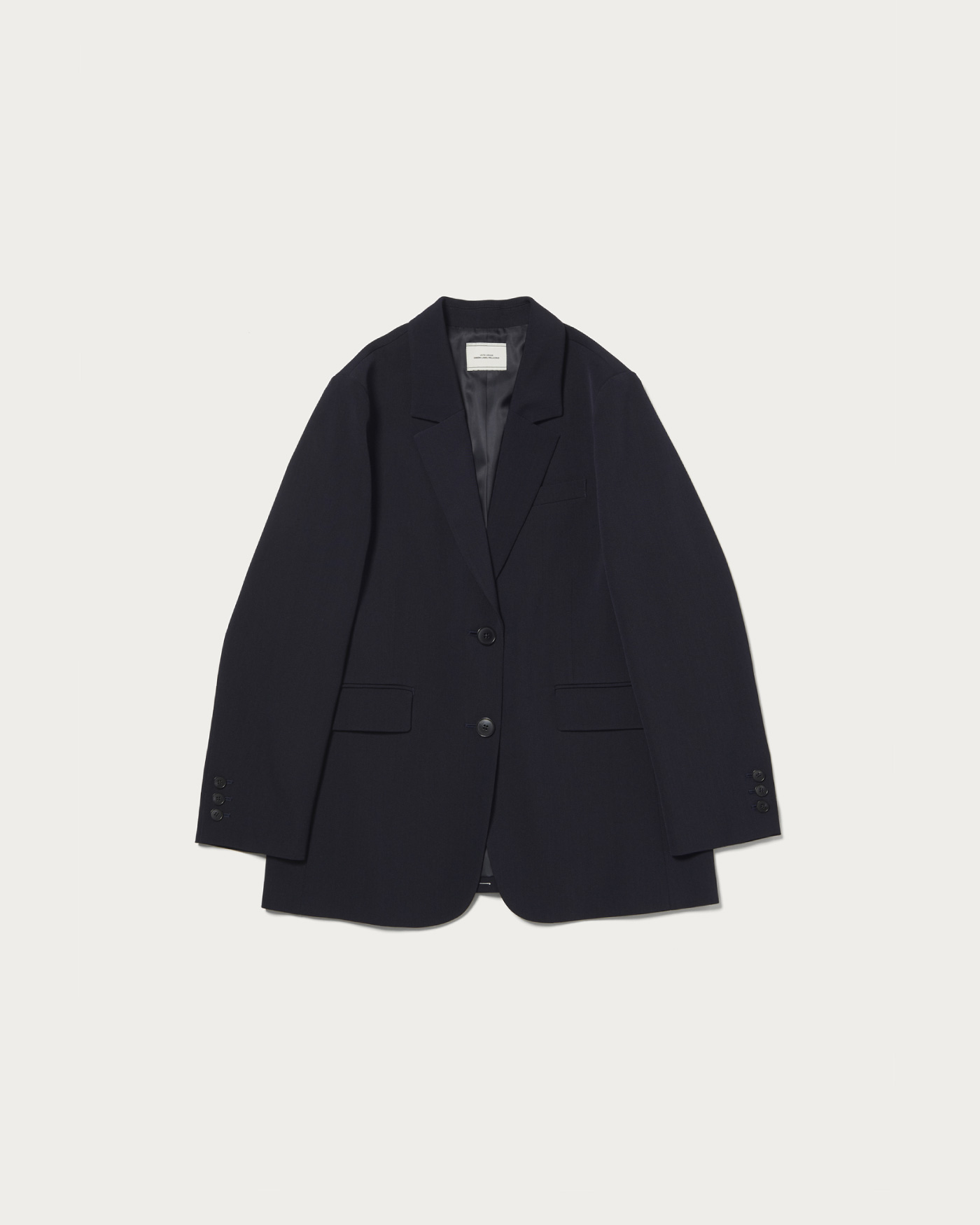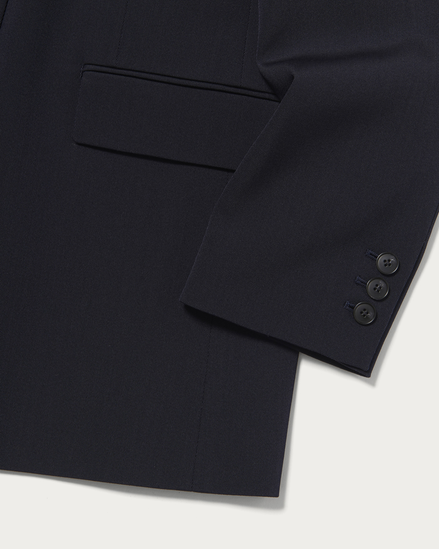 A jacket made from a wool blend material with a densely woven twill structure that exudes a sense of luxury. The single-breasted design with a higher button position gives it a contemporary look this year. The focus on a vertically elongated silhouette enhances femininity, resulting in a refined finish.