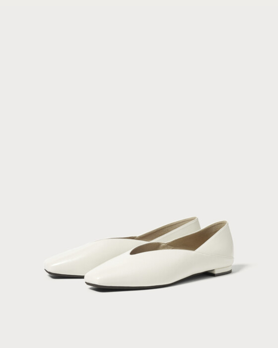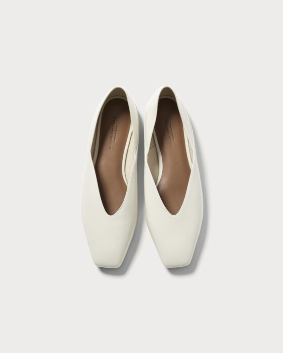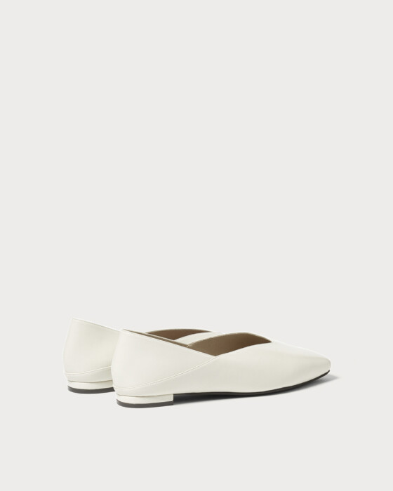 Introducing flat shoes with a simple and beautiful silhouette, perfect for styling this season. These shoes feature a versatile 2-way design that allows you to step on the heel, crafted from glossy and soft materials. The standout cutline around the opening offers an exquisite balance that is truly captivating.