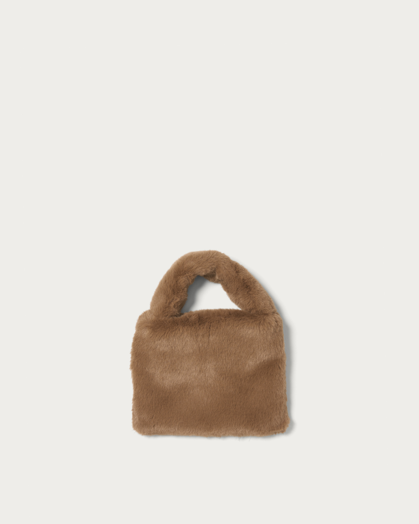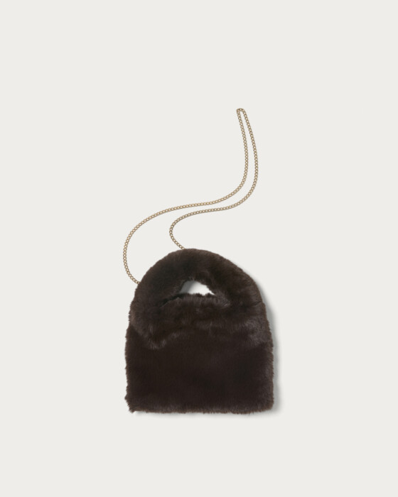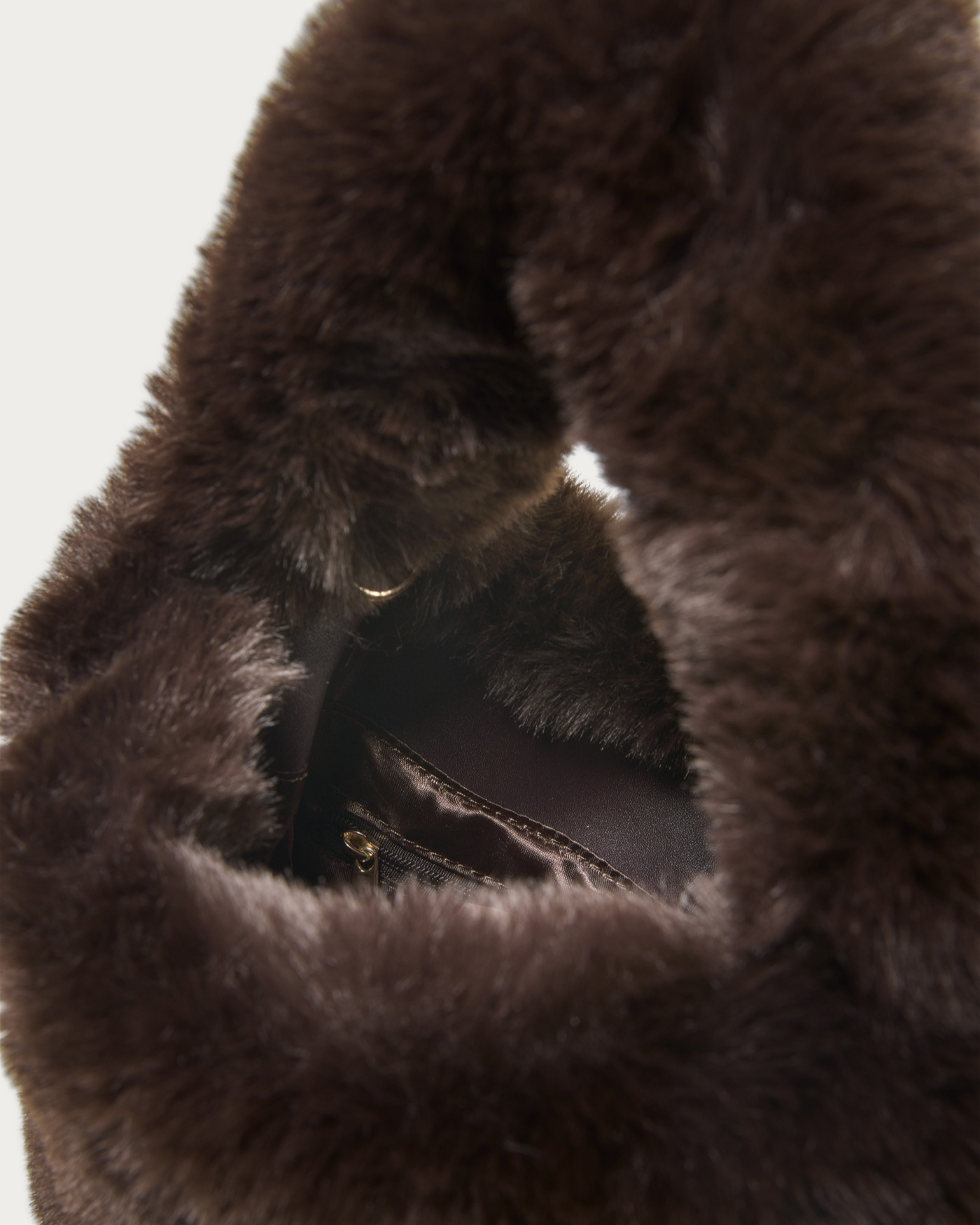A cute, fluffy bag made with a voluminous faux fur-like material. Its warm appearance and seasonal design make it perfect for the colder months. It comes with a chain shoulder strap that adds a touch of elegance, making it easy to pair with both casual and more polished outfits.