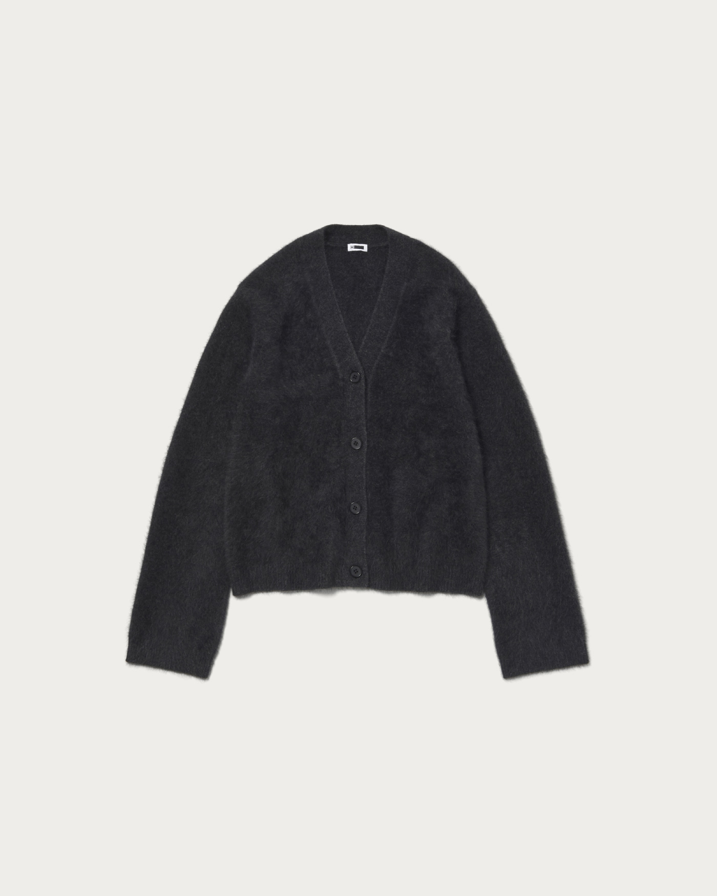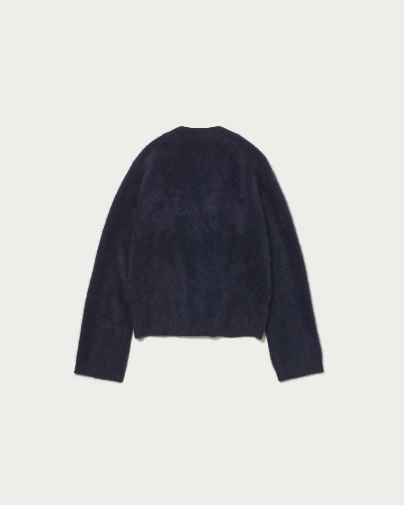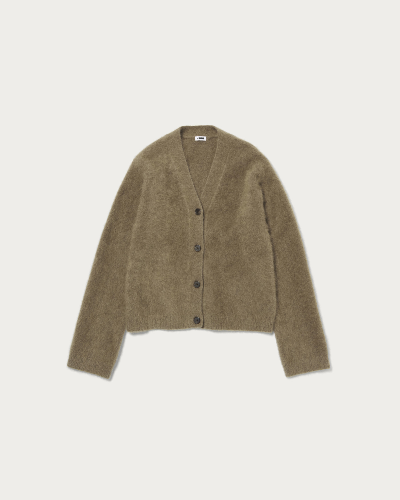 A cardigan featuring the elegant fur unique to the Chinese raccoon. It offers a warm and lightweight feel, with a box silhouette body and slightly longer sleeves for a well-balanced look. The length is versatile enough to pair with any bottoms, and it is also recommended for layered styles with shirts or blouses.