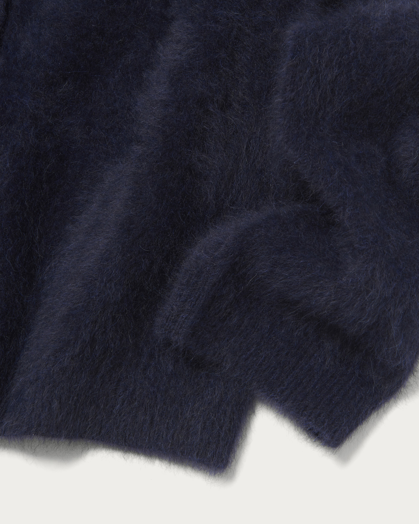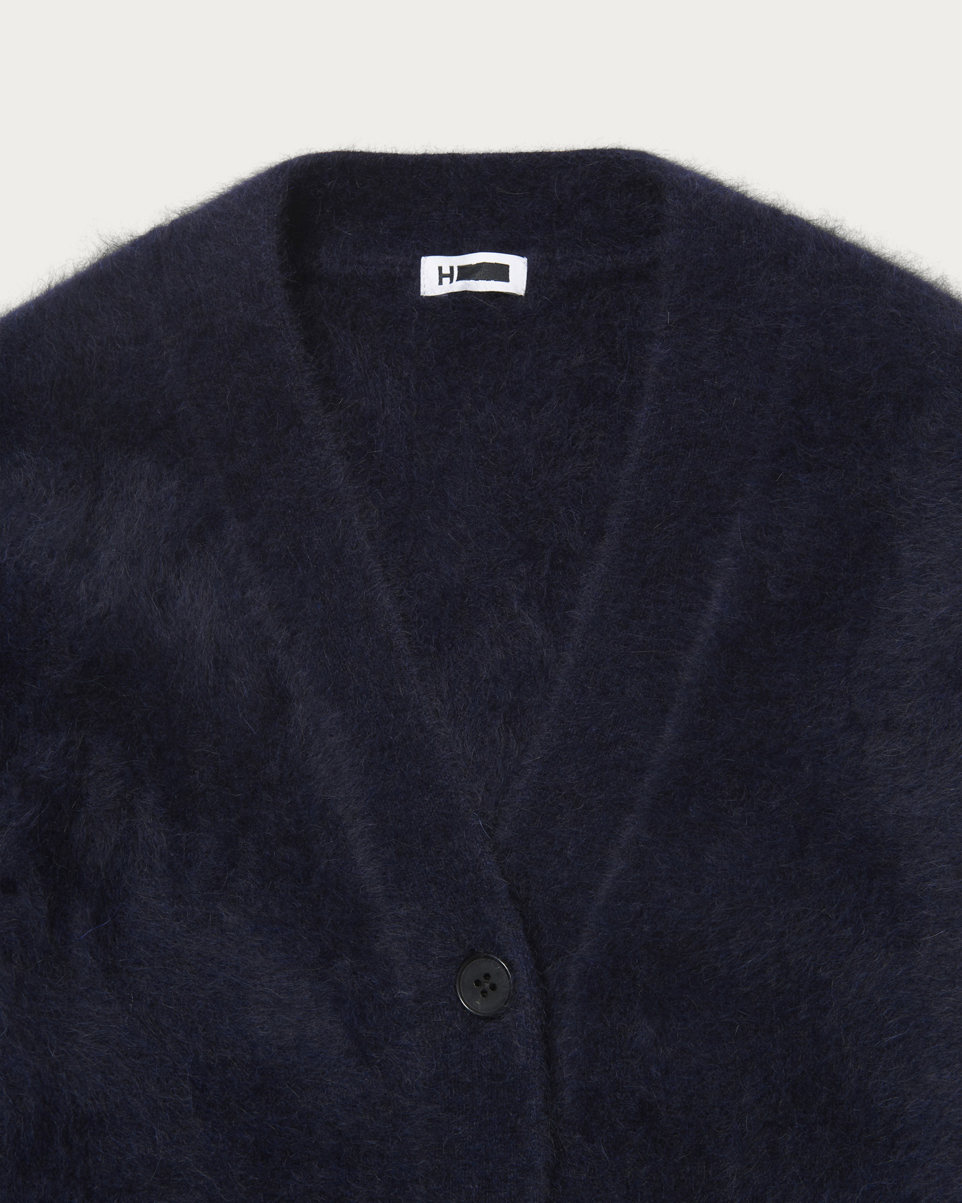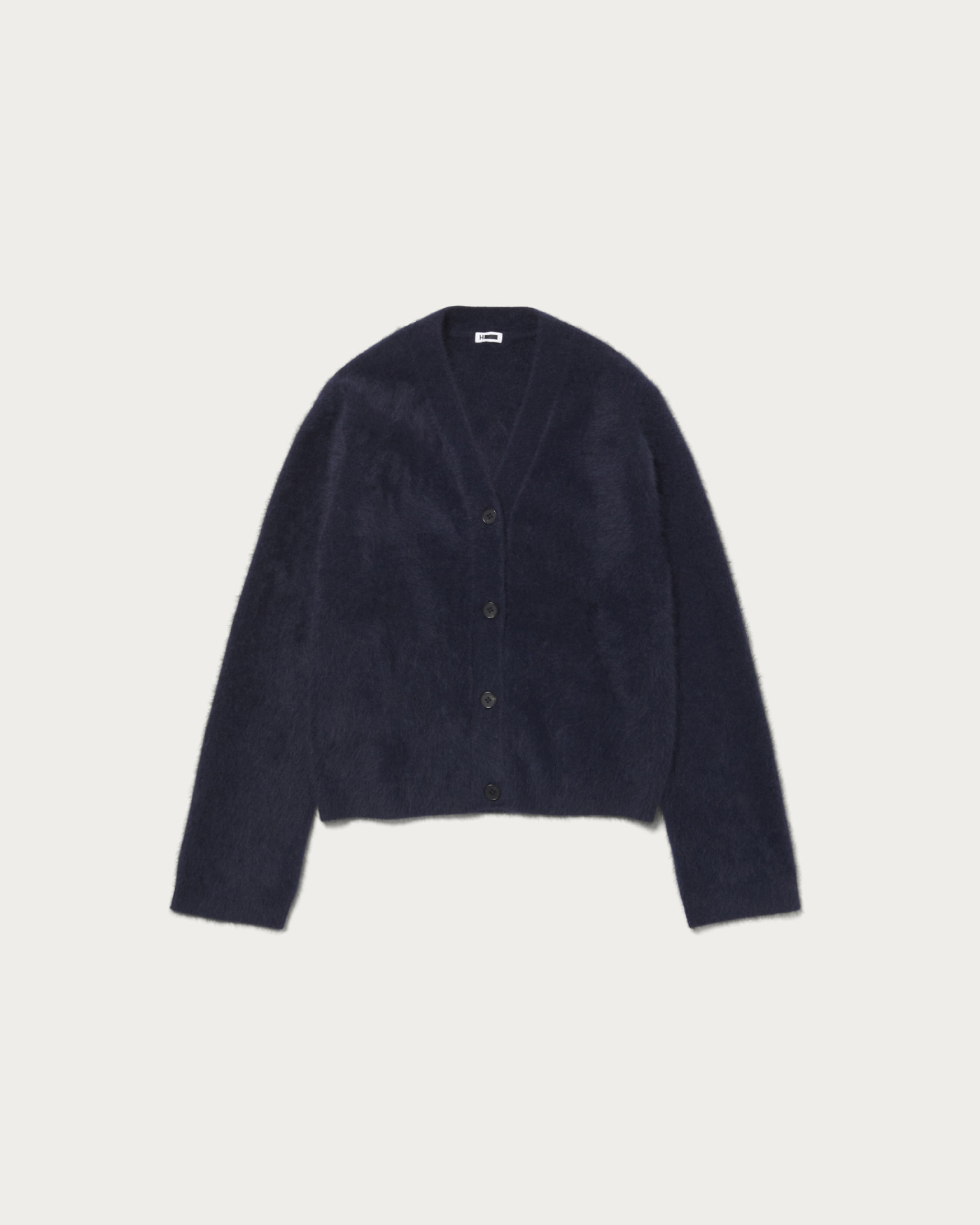 A cardigan featuring the elegant fur unique to the Chinese raccoon. It offers a warm and lightweight feel, with a box silhouette body and slightly longer sleeves for a well-balanced look. The length is versatile enough to pair with any bottoms, and it is also recommended for layered styles with shirts or blouses.