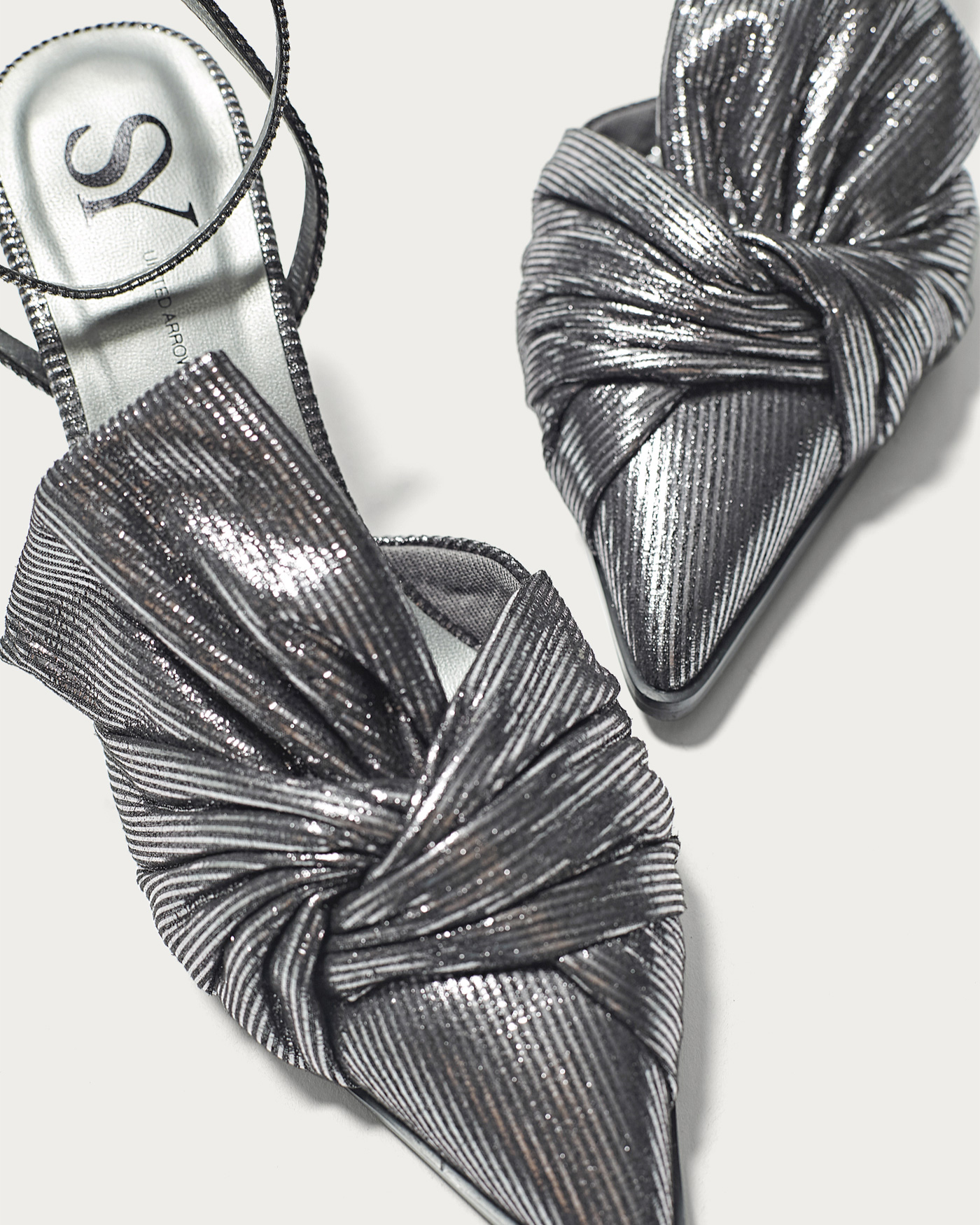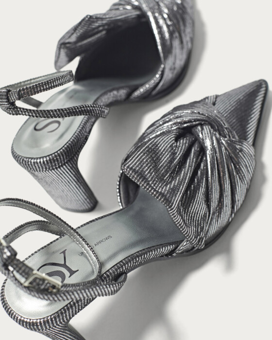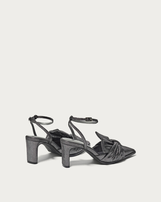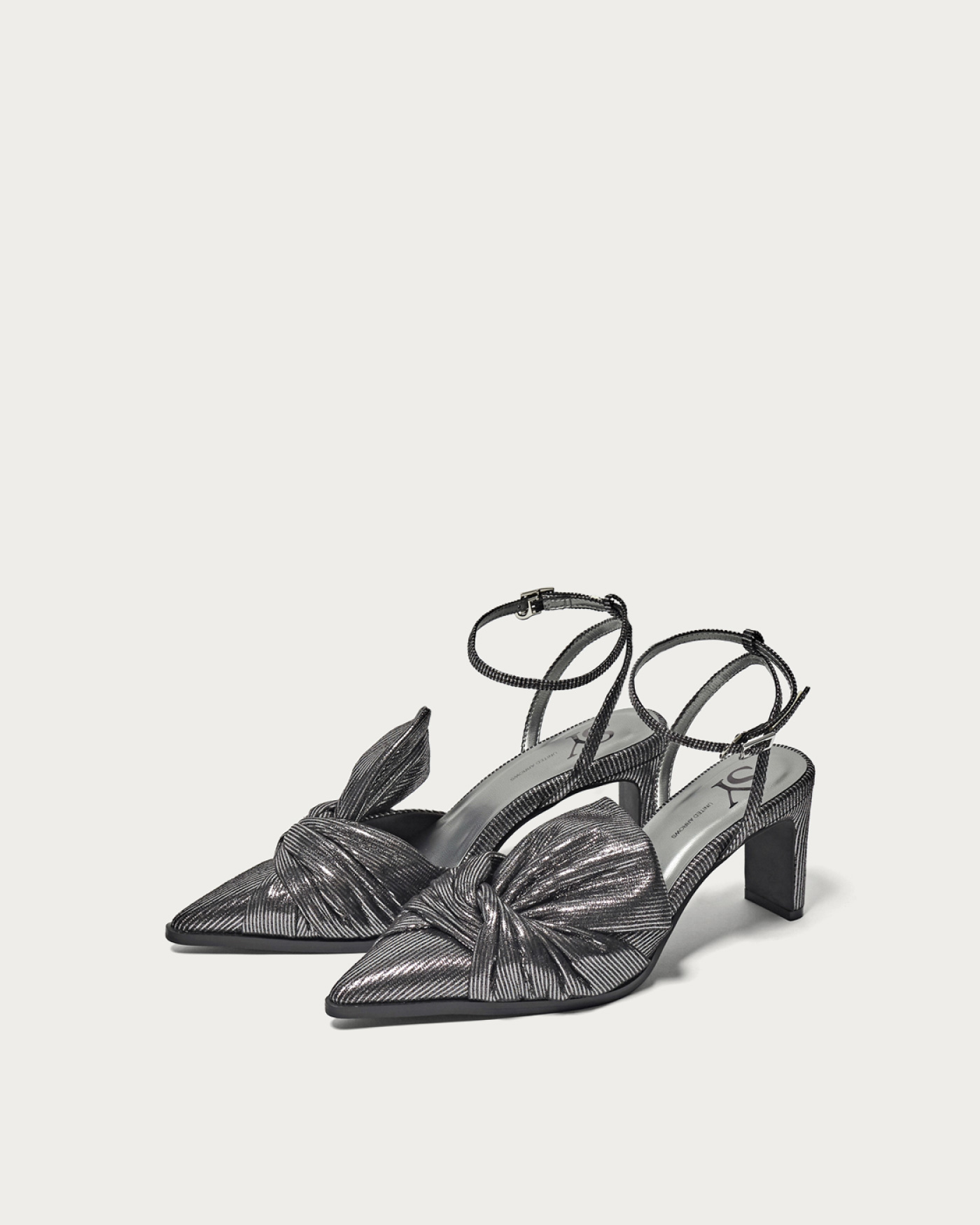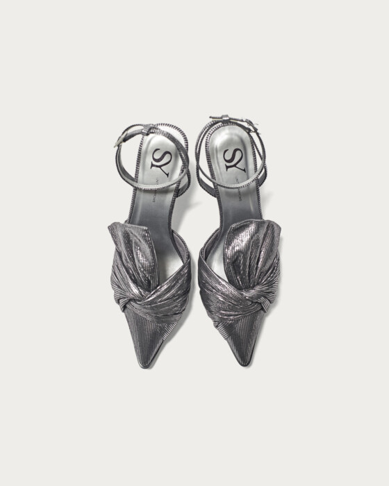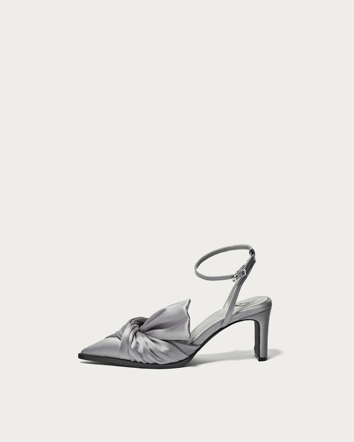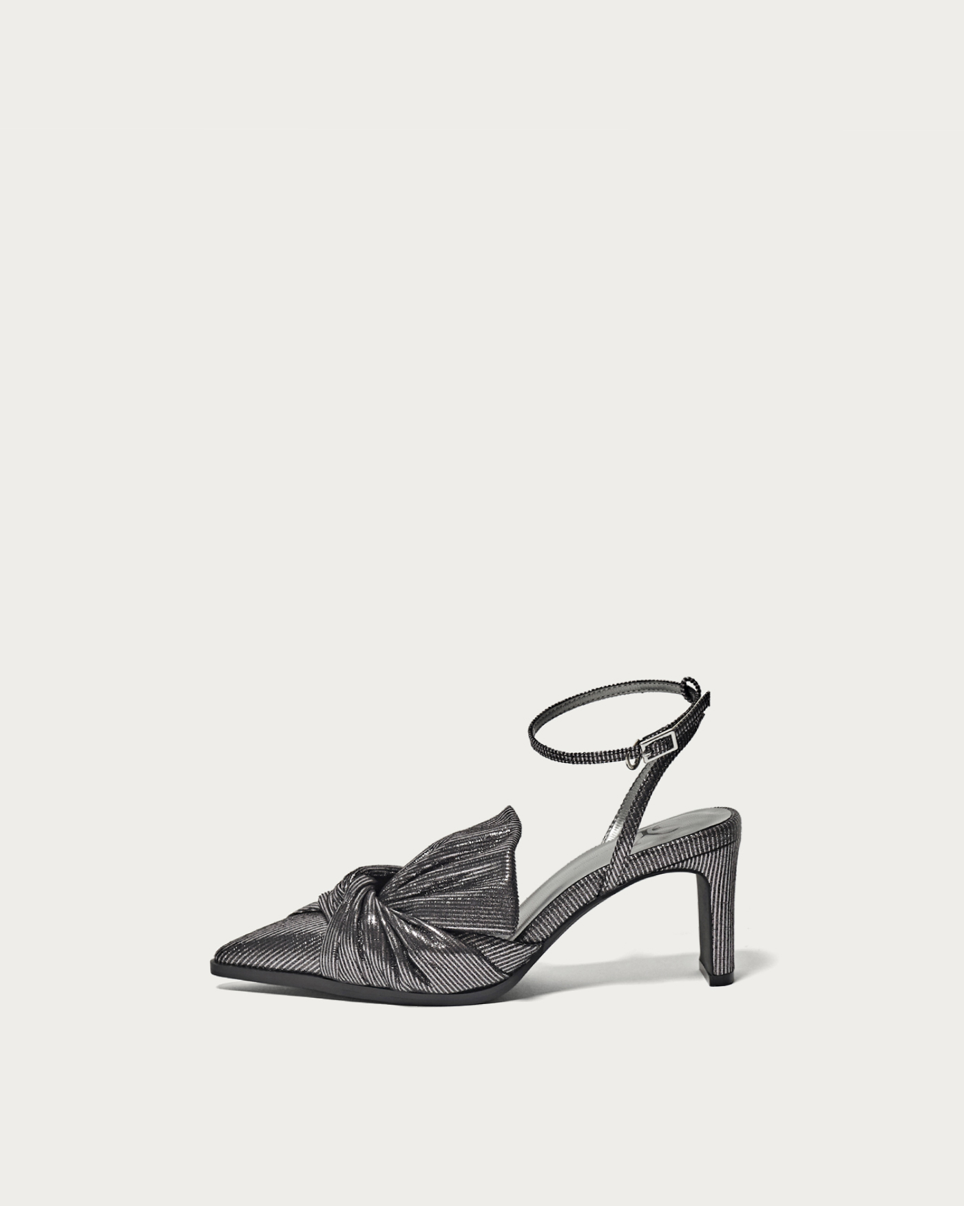 Pumps featuring a distinctive ribbon design that looks like twisted fabric. Delicate straps add an elegant touch. The refined silhouette not only complements formal occasions but also elevates your style when paired with sporty socks or casual outfits.