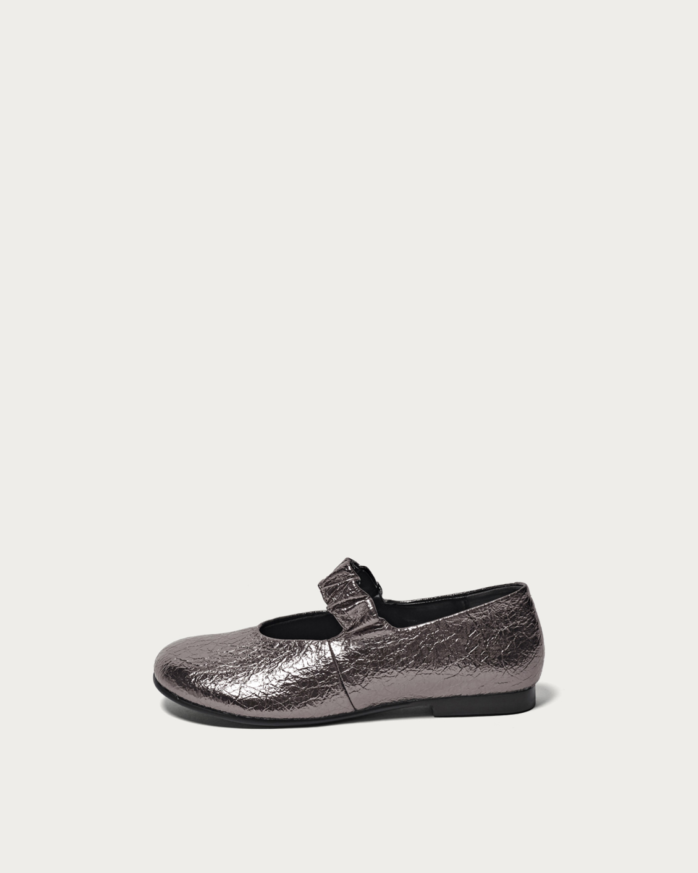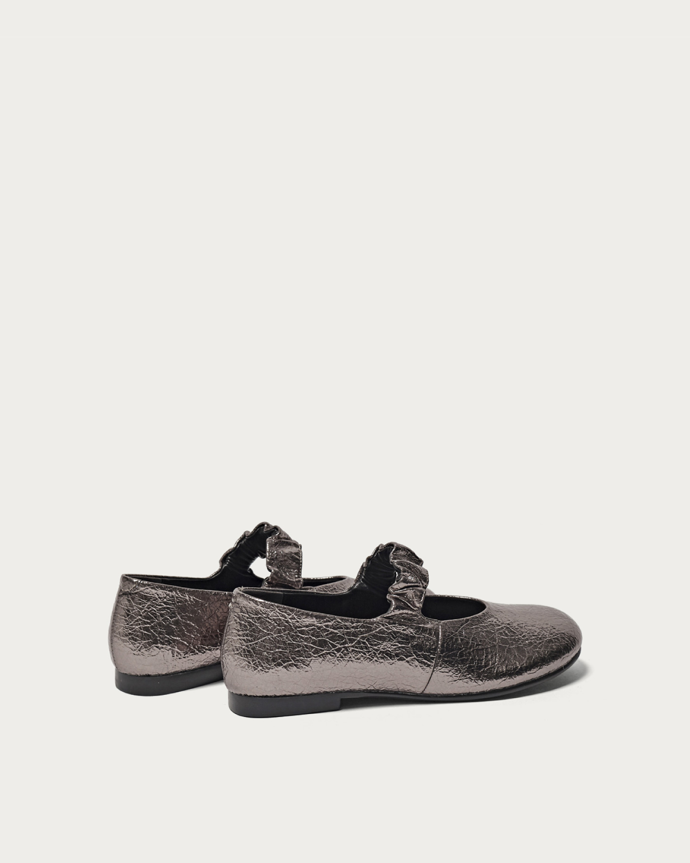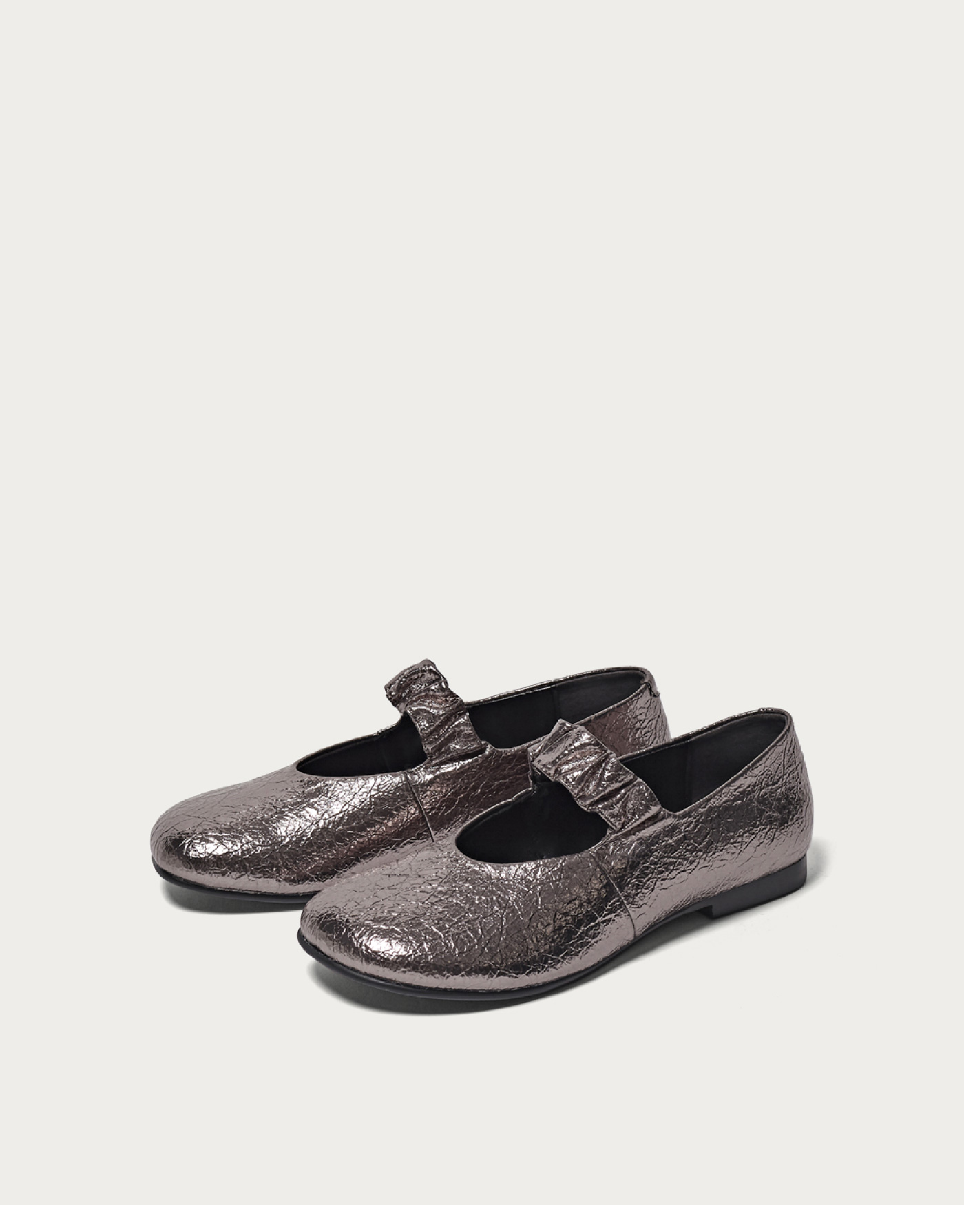 Flat shoes featuring an oblique toe and a band with a generously set shirring design. With a soft core only in the lower part of the heel, they offer a comfortable and relaxed fit. Simply incorporating them into your outfit can expand your styling options from modern to feminine.