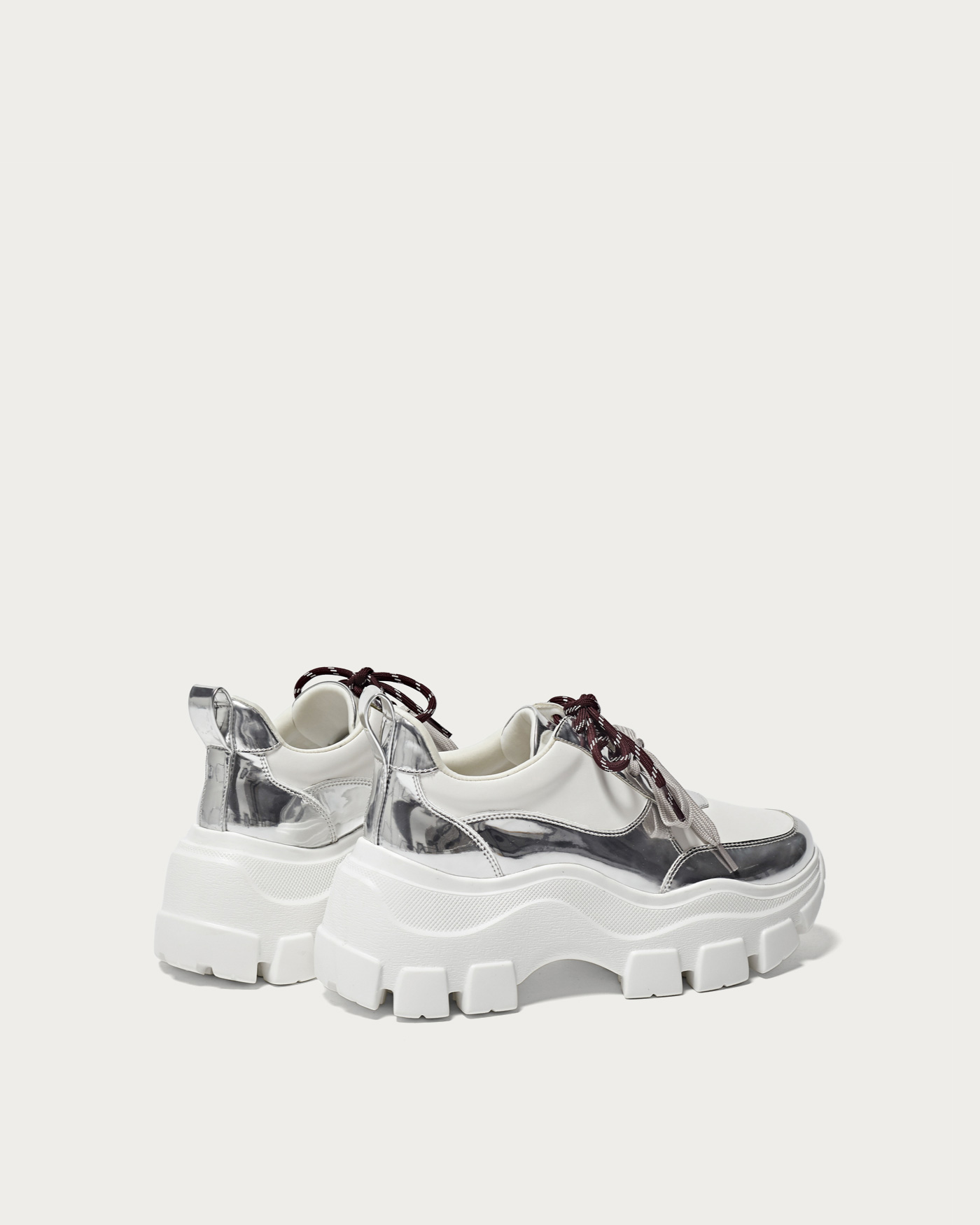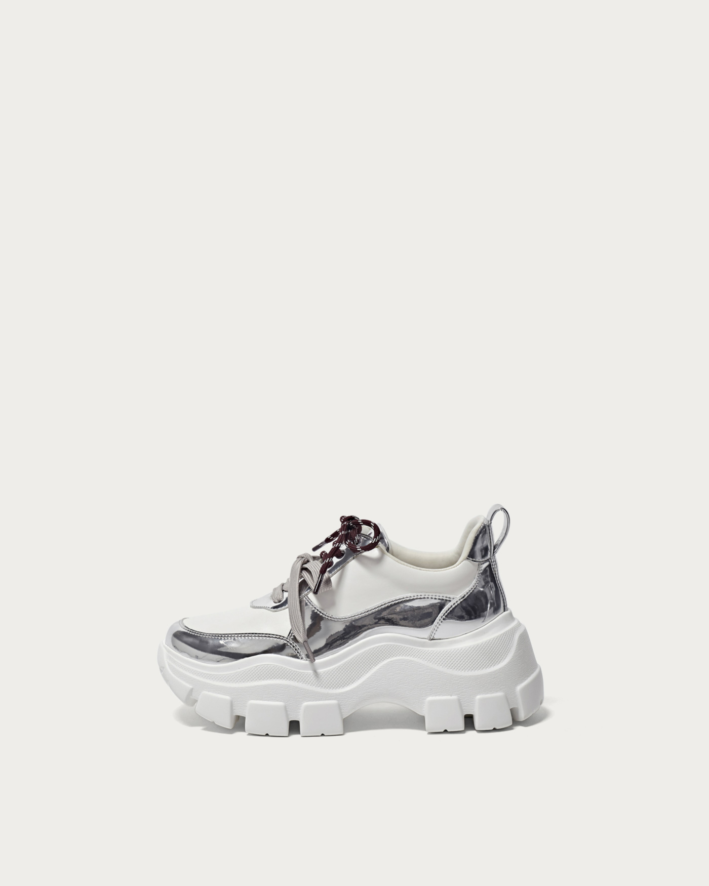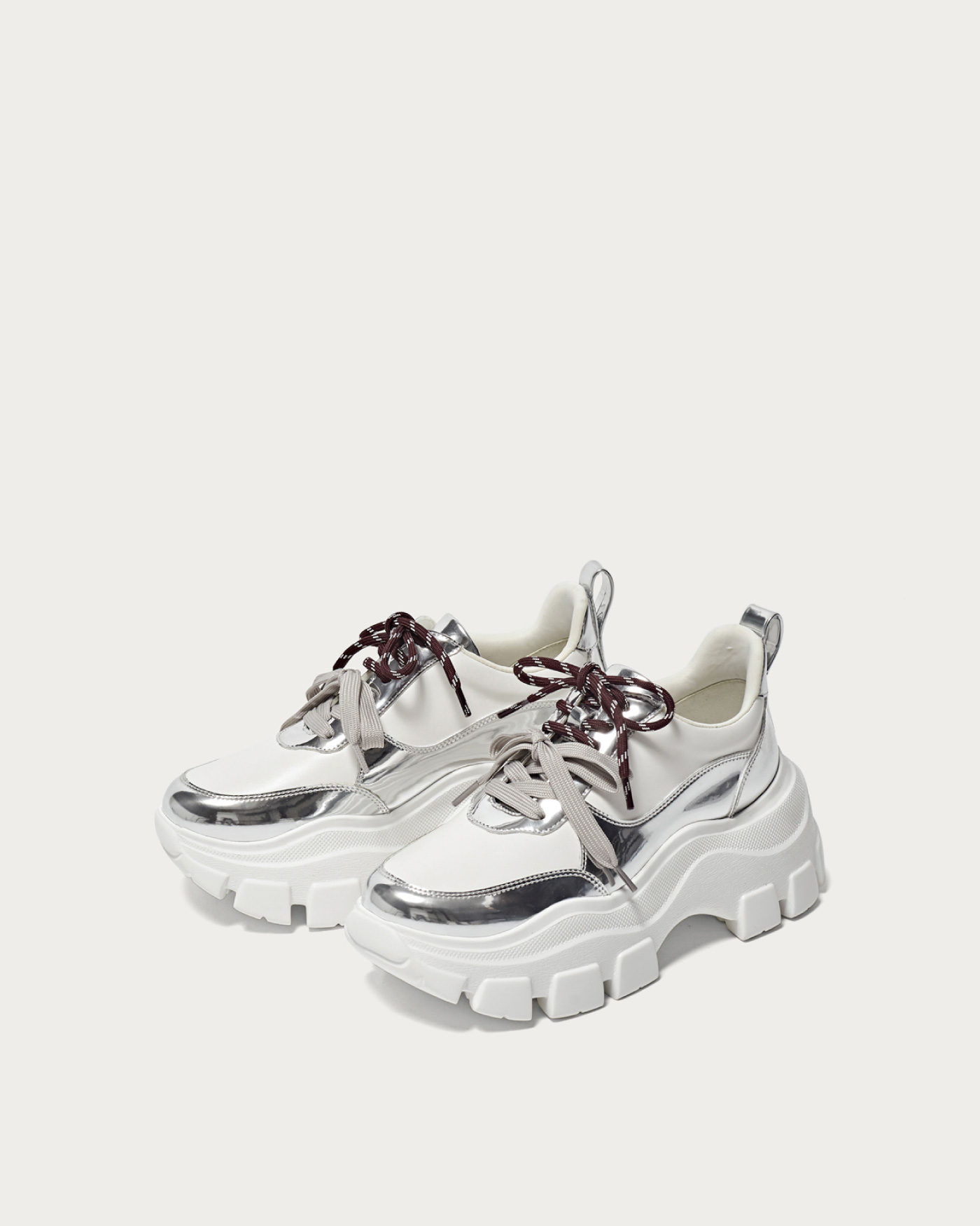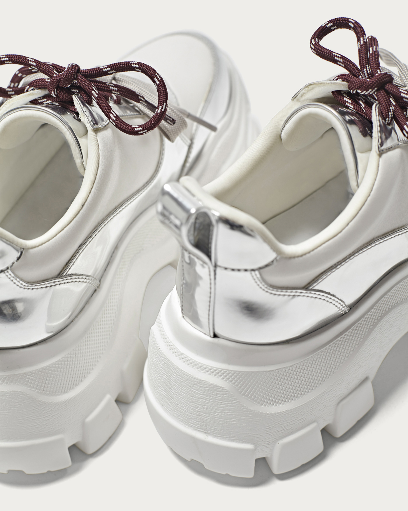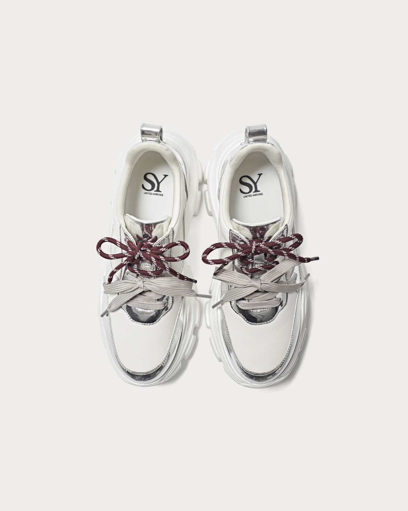 These sneakers catch the eye with their voluminous soles and unique shoelace designs. They pair well with socks, and you can choose your favorite combination from four types of shoelaces, including two extra pairs for swapping, to match your outfit or mood of the day.