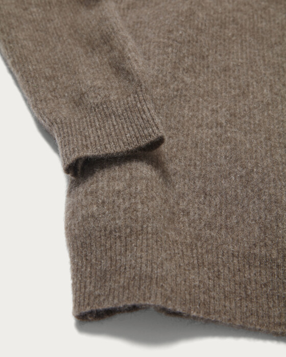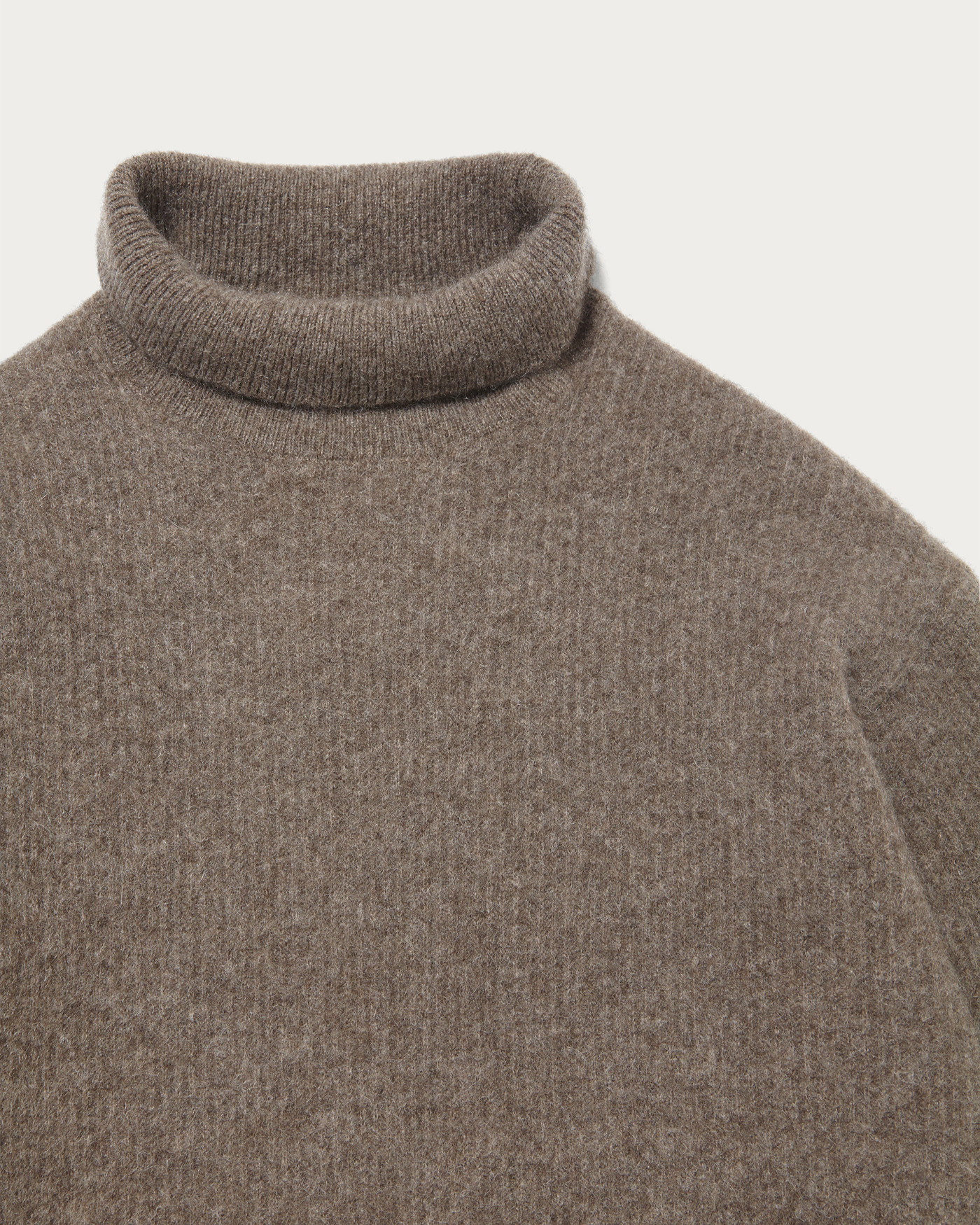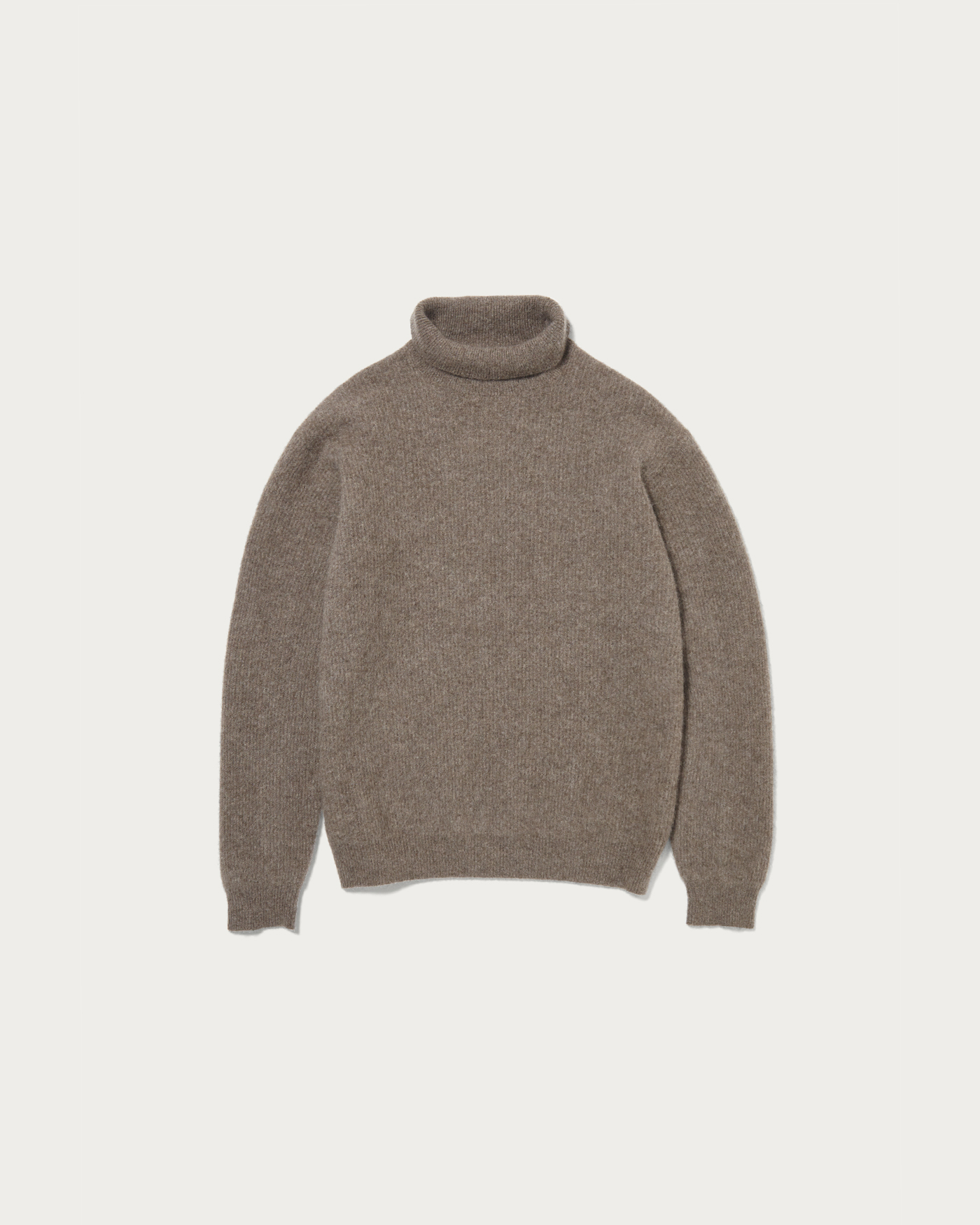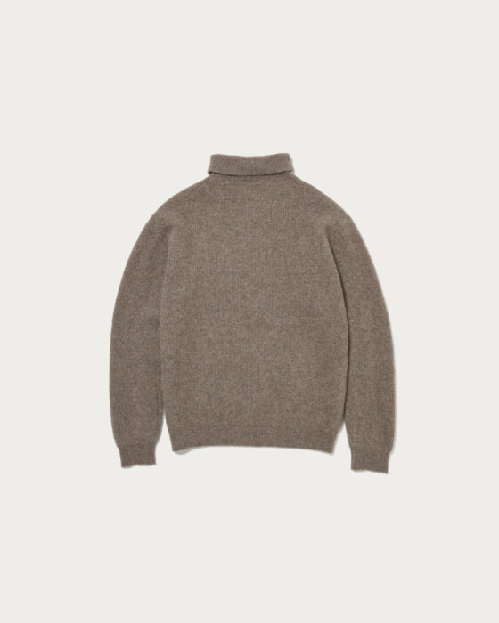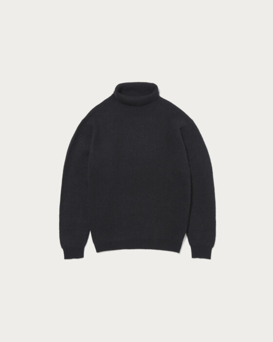 A sweater crafted from high-quality yak wool, finished with a hairy texture. It features a just-loose silhouette that provides a comfortable fit, highlighting the material's appeal with a simple and versatile design. The slightly lower turtleneck design gives the collar area a sleek and modern look.