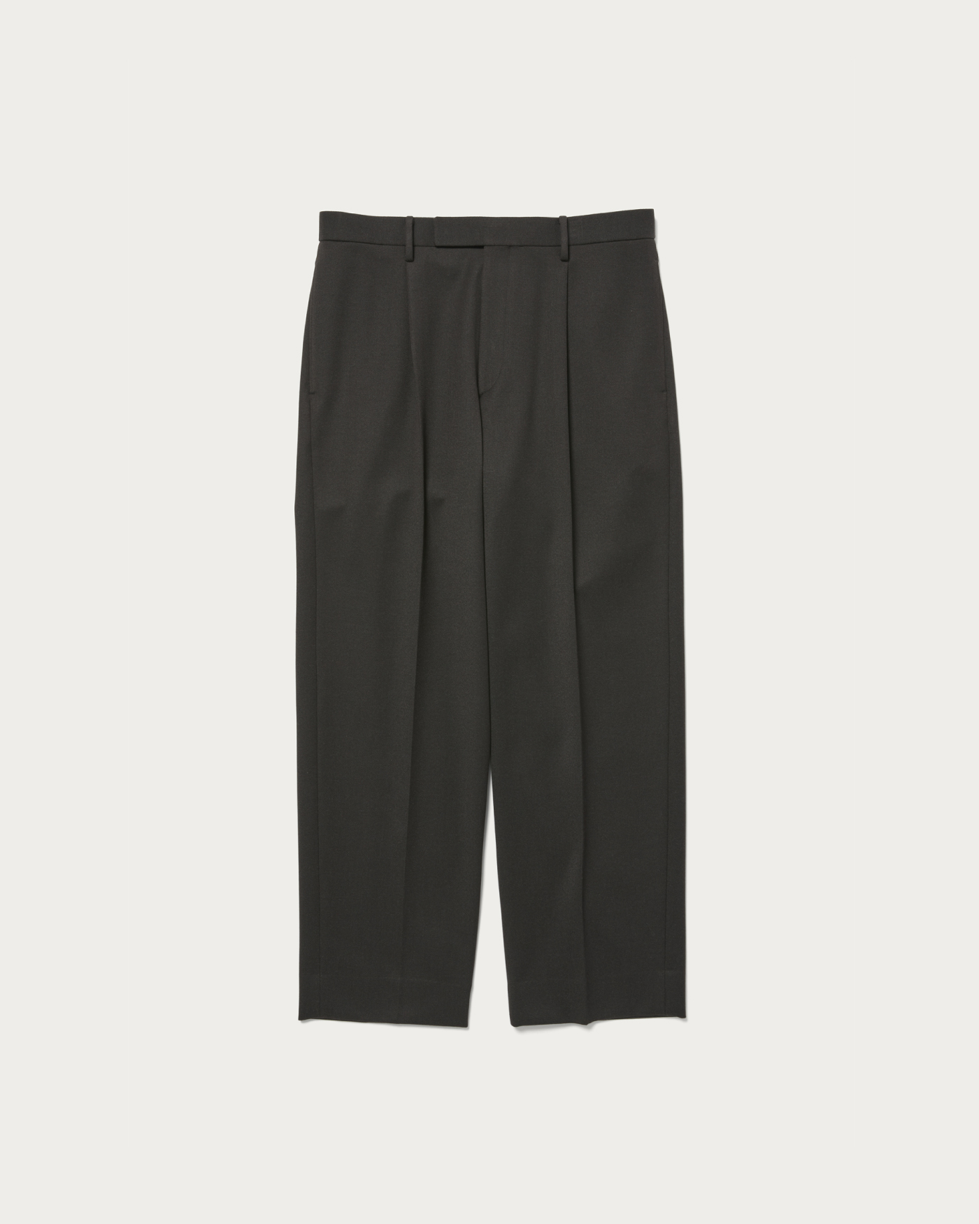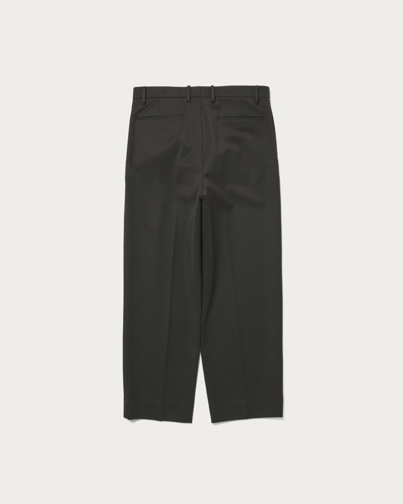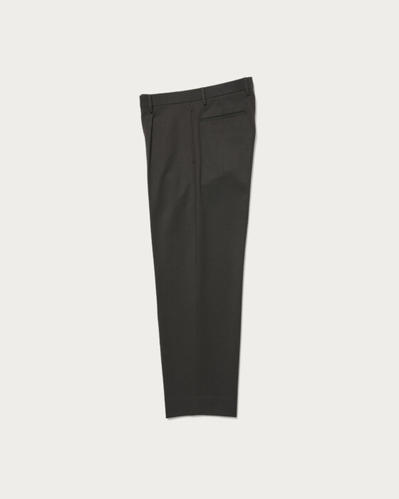Here is the English translation of the provided Japanese text:"Elegant slacks with a 9 silhouette, designed with the possibility of launching around VP1 in mind. The tapering is slightly less pronounced than the usual number 9, creating a silhouette that falls smoothly even with thicker fabric. A coin pocket is equipped inside the right hip pocket."