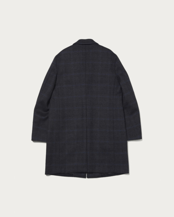 24FW same design (with slight adjustments to the sizing). Maintaining a smart appearance, the armholes and other areas have been given a bit more room, resulting in a compact silhouette that accommodates inner layers well. Uses a custom Super 120s Melton. All 75% wool is made from Super 120s with long fibers, providing the fabric with smoothness and an elegant sheen. Additionally, the double weave adds thickness and suppleness to the fabric, assisting in achieving a more three-dimensional finish for the product.