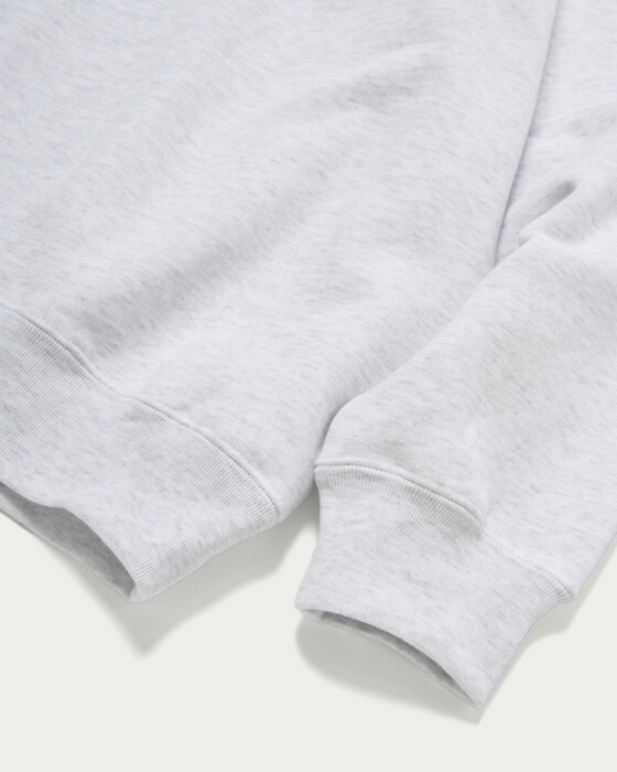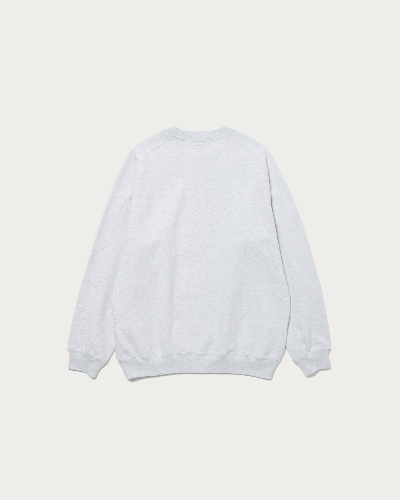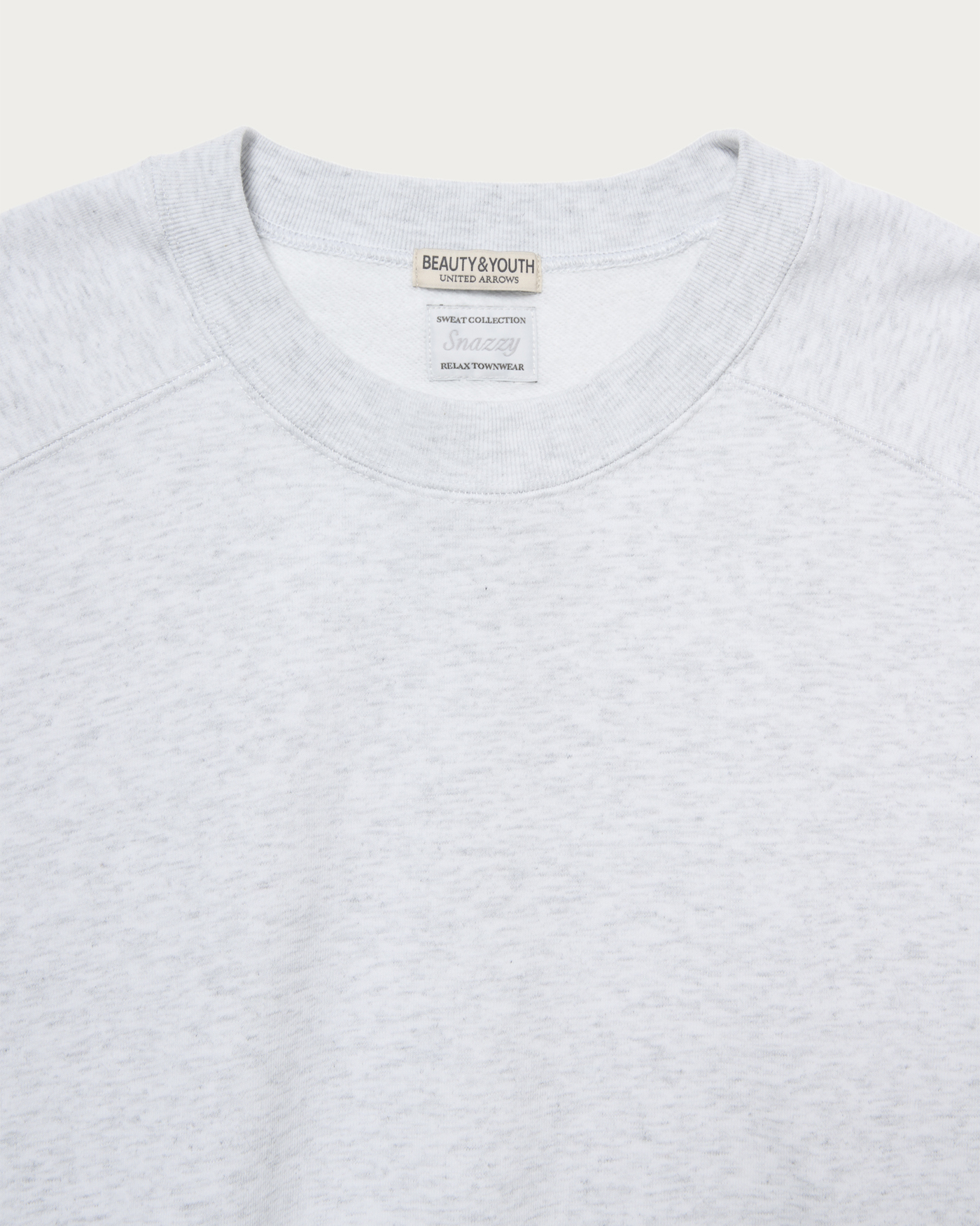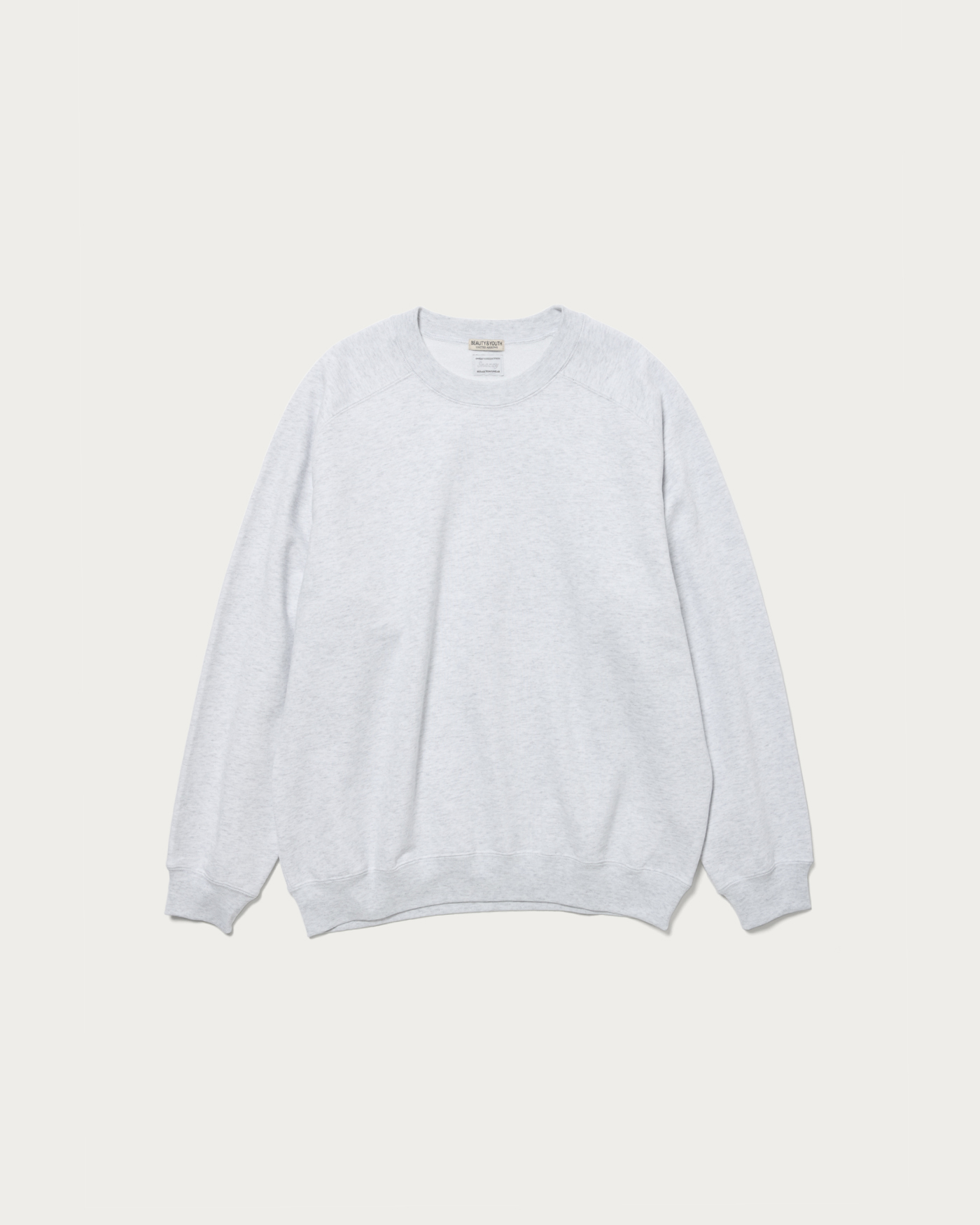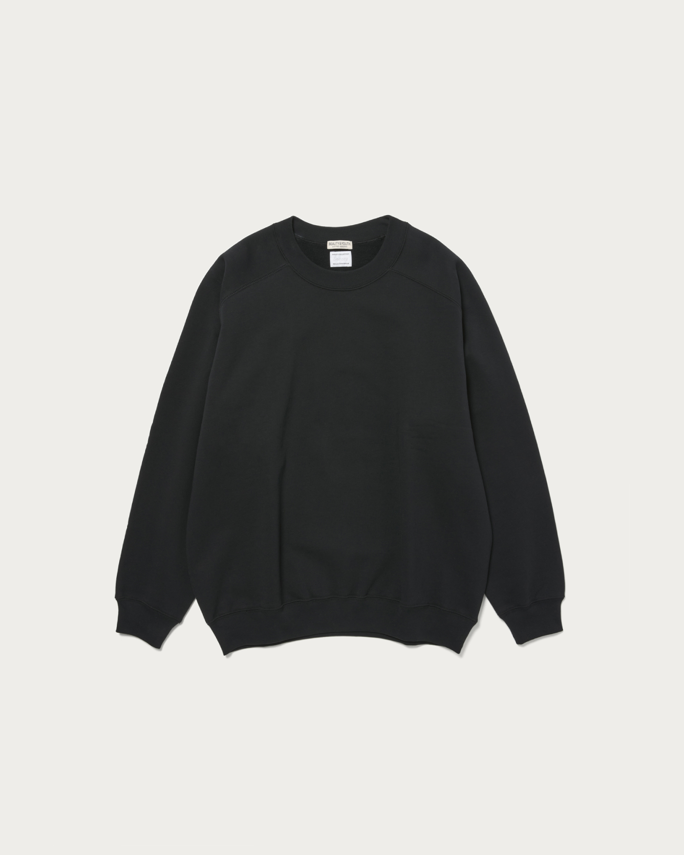 The 25FW Edition "SNAZZY" Sweatshirt Series. SNAZZY... Stylish, chic. A sweatshirt series proposed as an outfit for going out. Instead of the typical crew neck, we offer a lineup of sweatshirts with a focus on design. This particular piece features a freedom sleeve design with a moderate sense of style, characterized by a wider body and a slightly shorter length silhouette. It has undergone bio-silket processing to remove surface fuzz, giving it a clean and polished appearance. The fabric is tightly knitted, providing a firm texture that makes it a substantial choice for men's sweatshirts. The inside is lightly brushed, ensuring it is not overly warm, allowing for extended wear throughout the season.