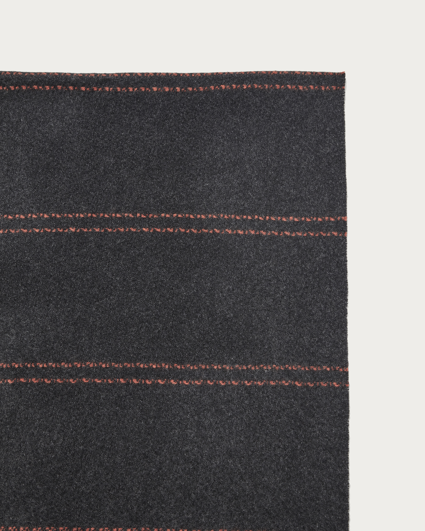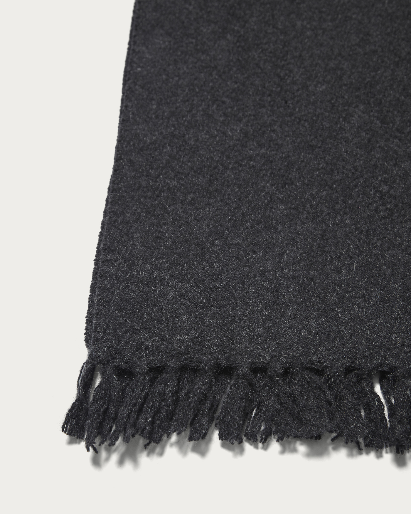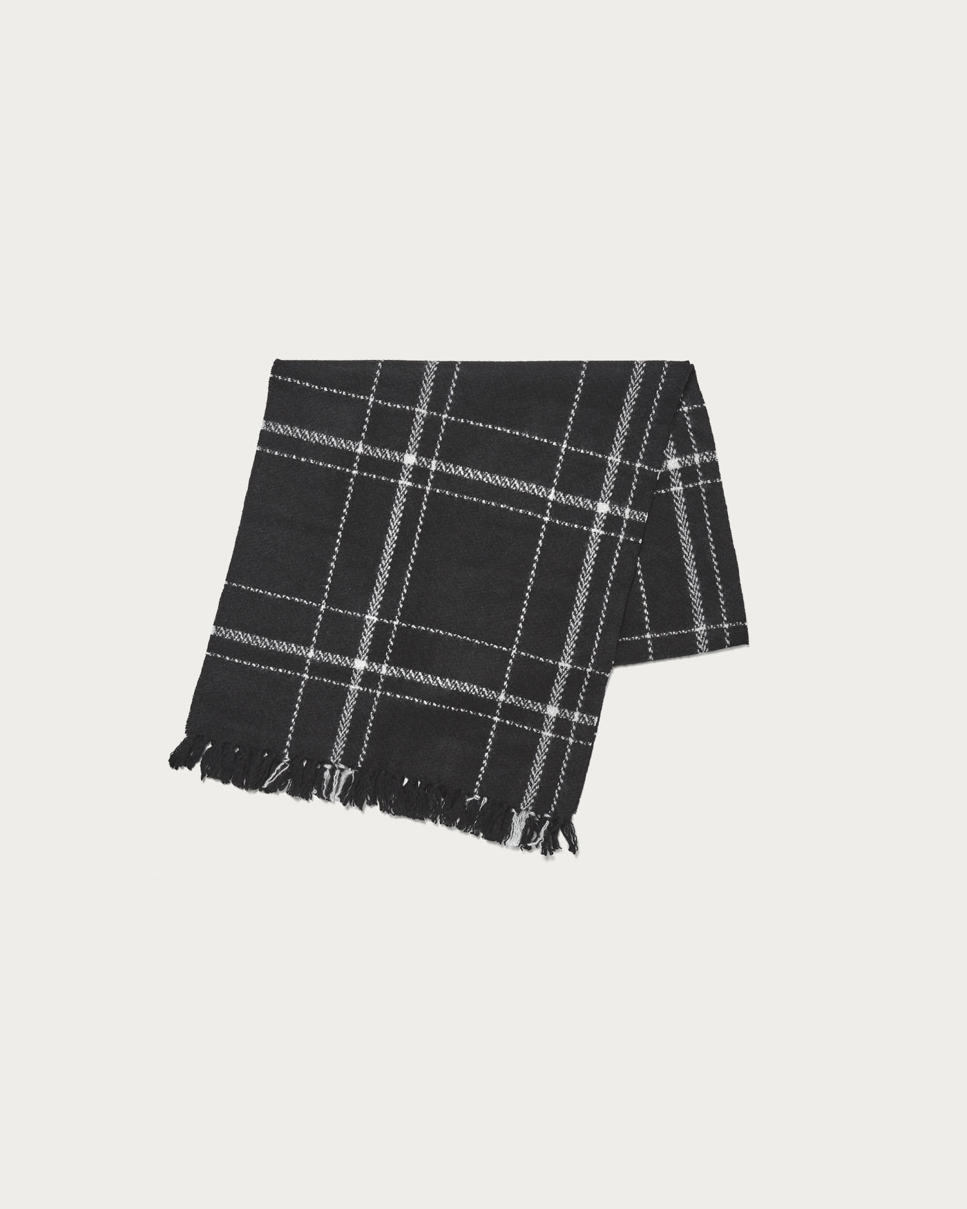A scarf woven with cashmere yarn into loops, then given a unique finish to create a textured surface. This new scarf features a casual surface feel and short fringes for a relaxed look. Available in two colors, it subtly showcases stripe and check patterns. Enjoy the soft and gentle touch of cashmere.