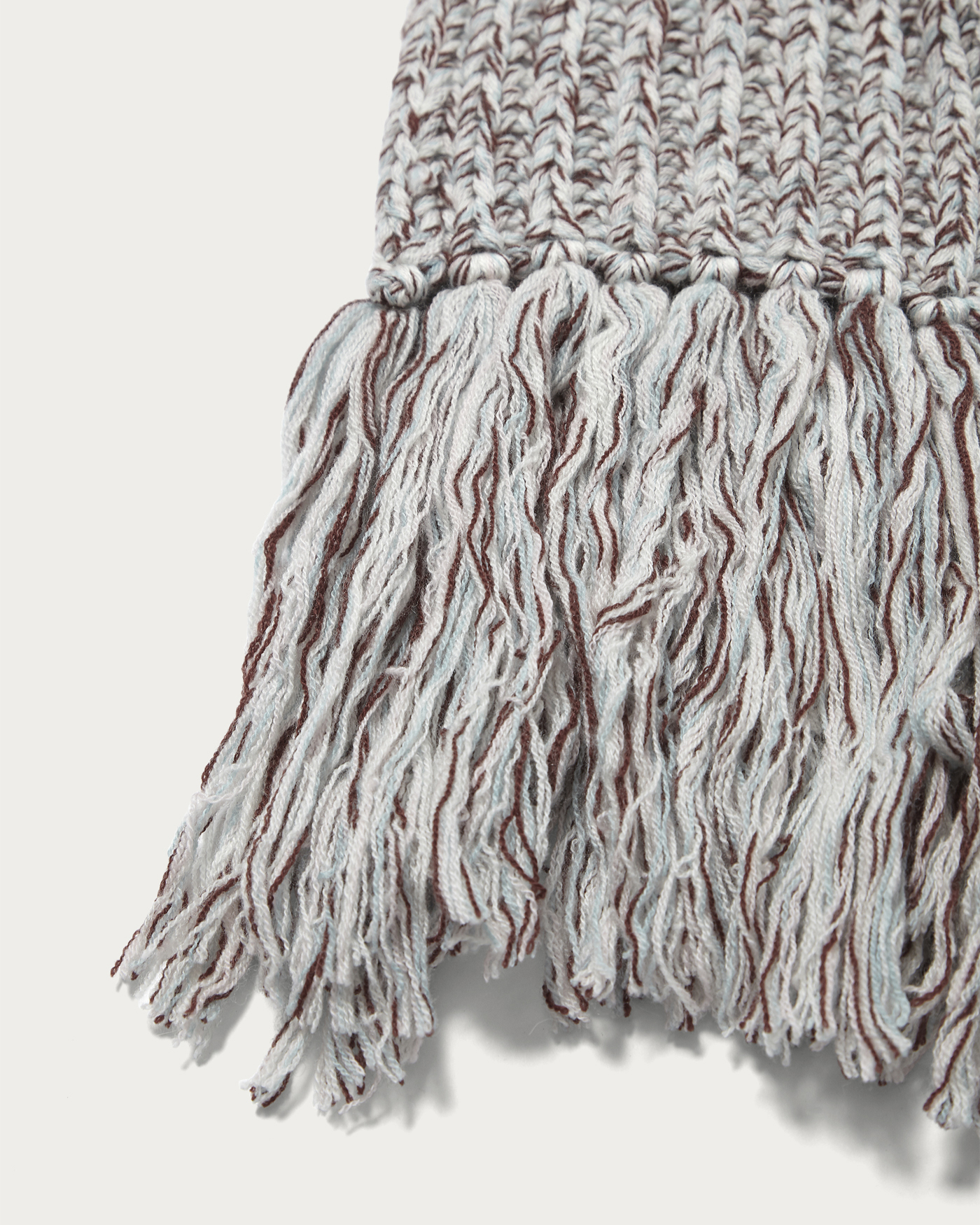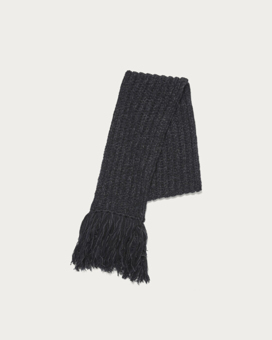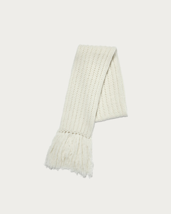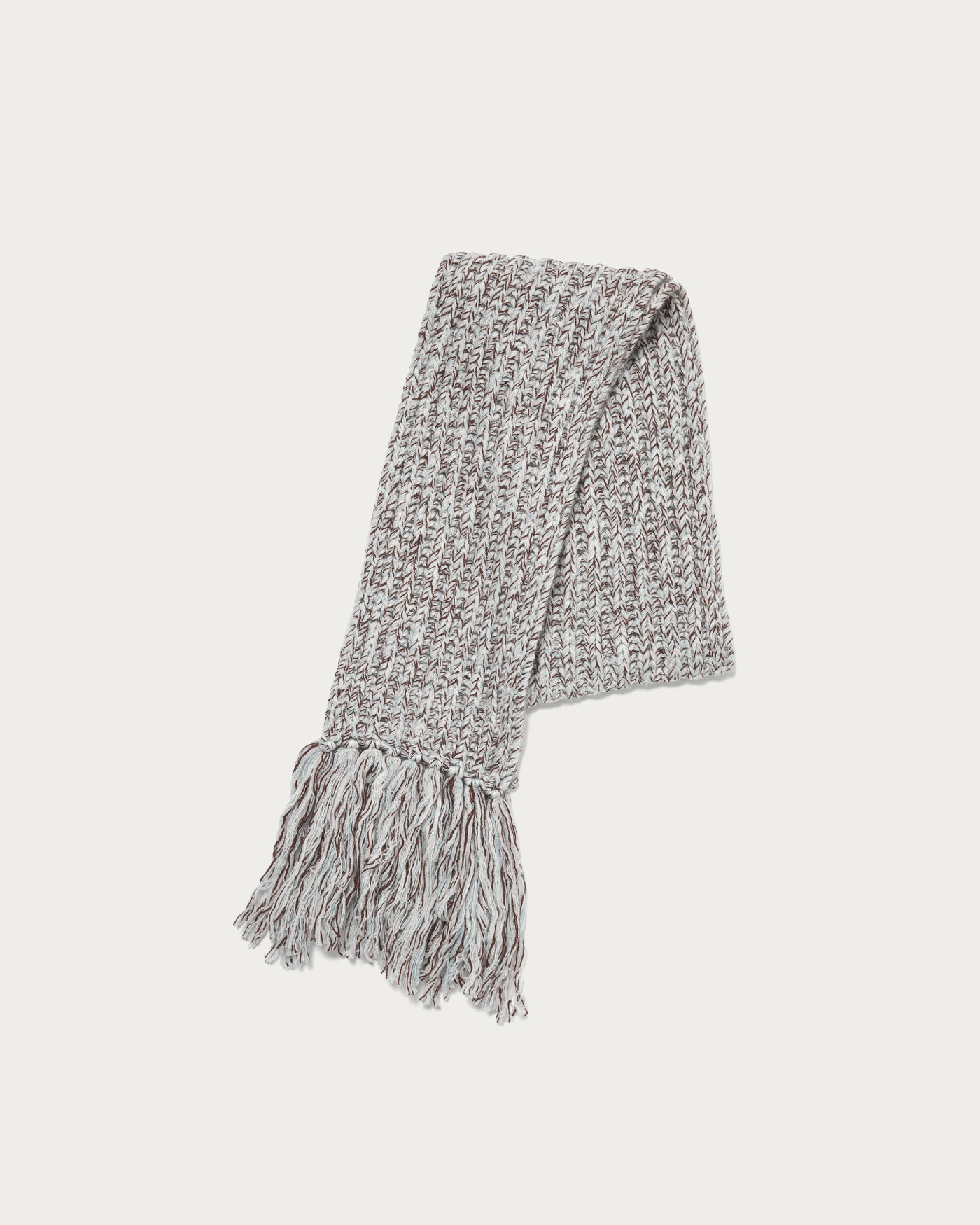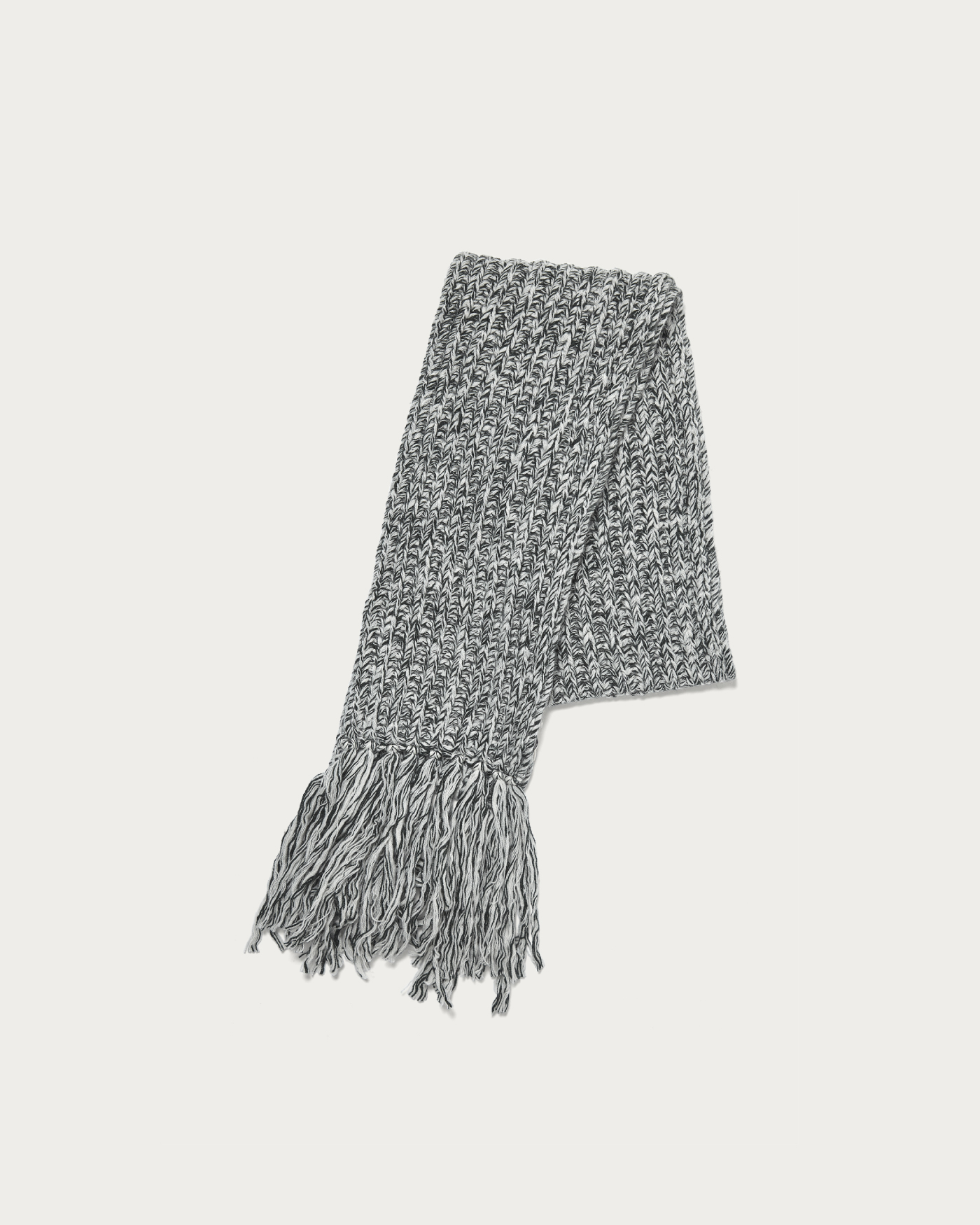A chunky ribbed scarf knitted with thick yarn made of wool and cashmere. This new scarf, with its narrow width and long tassels, has an accessory-like feel. Available in three colors: pure white and two mixed patterns. How about adding it as a focal point to brighten up your often dark winter outfits?