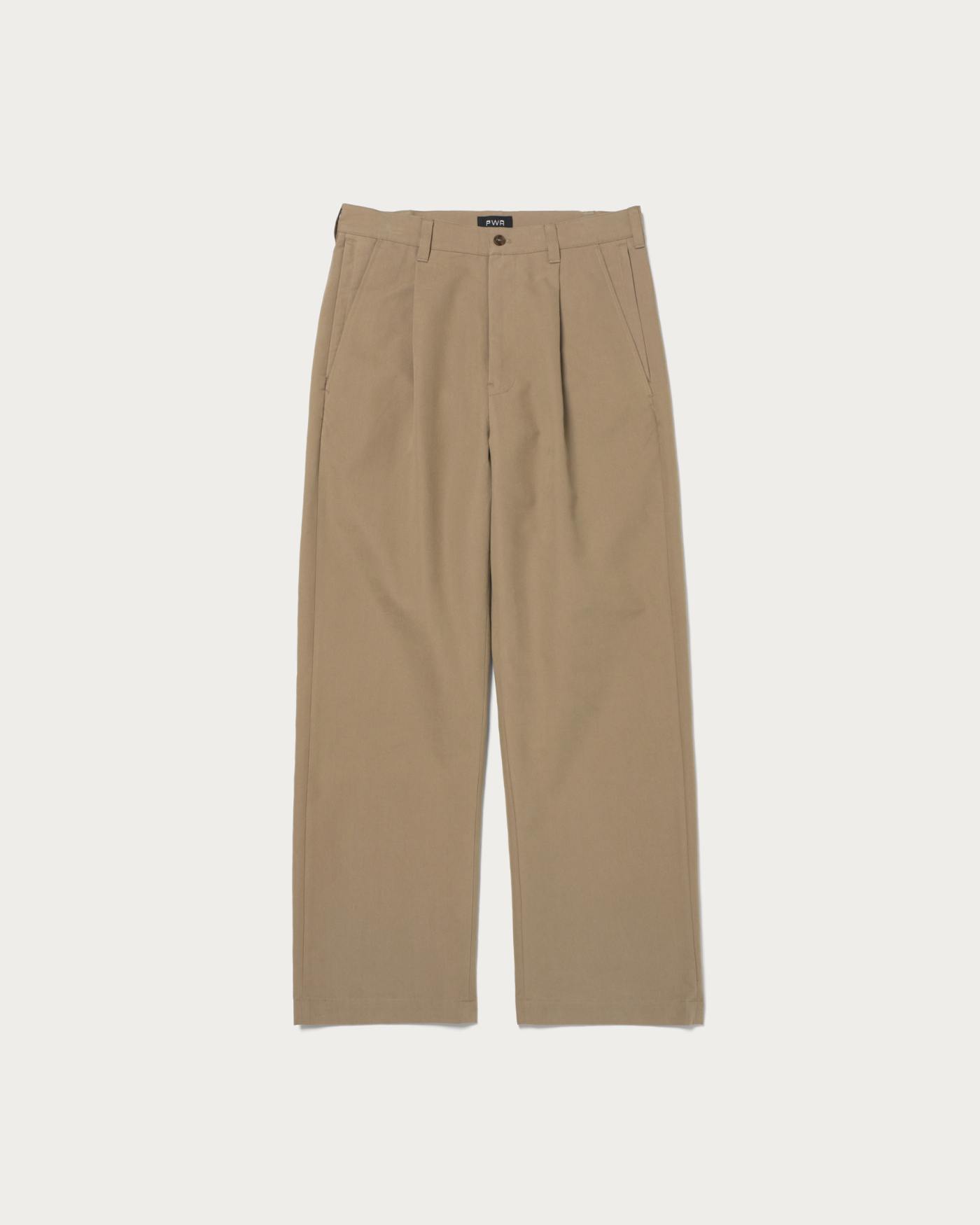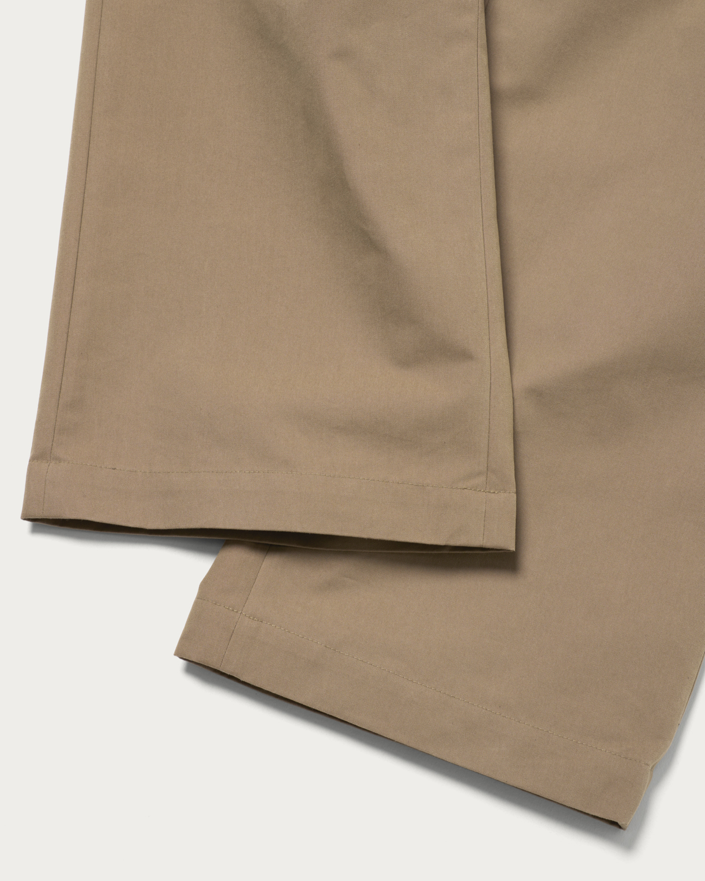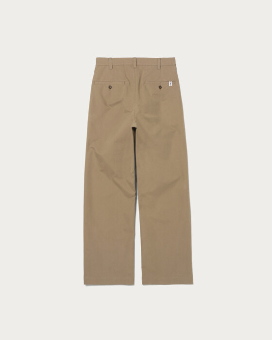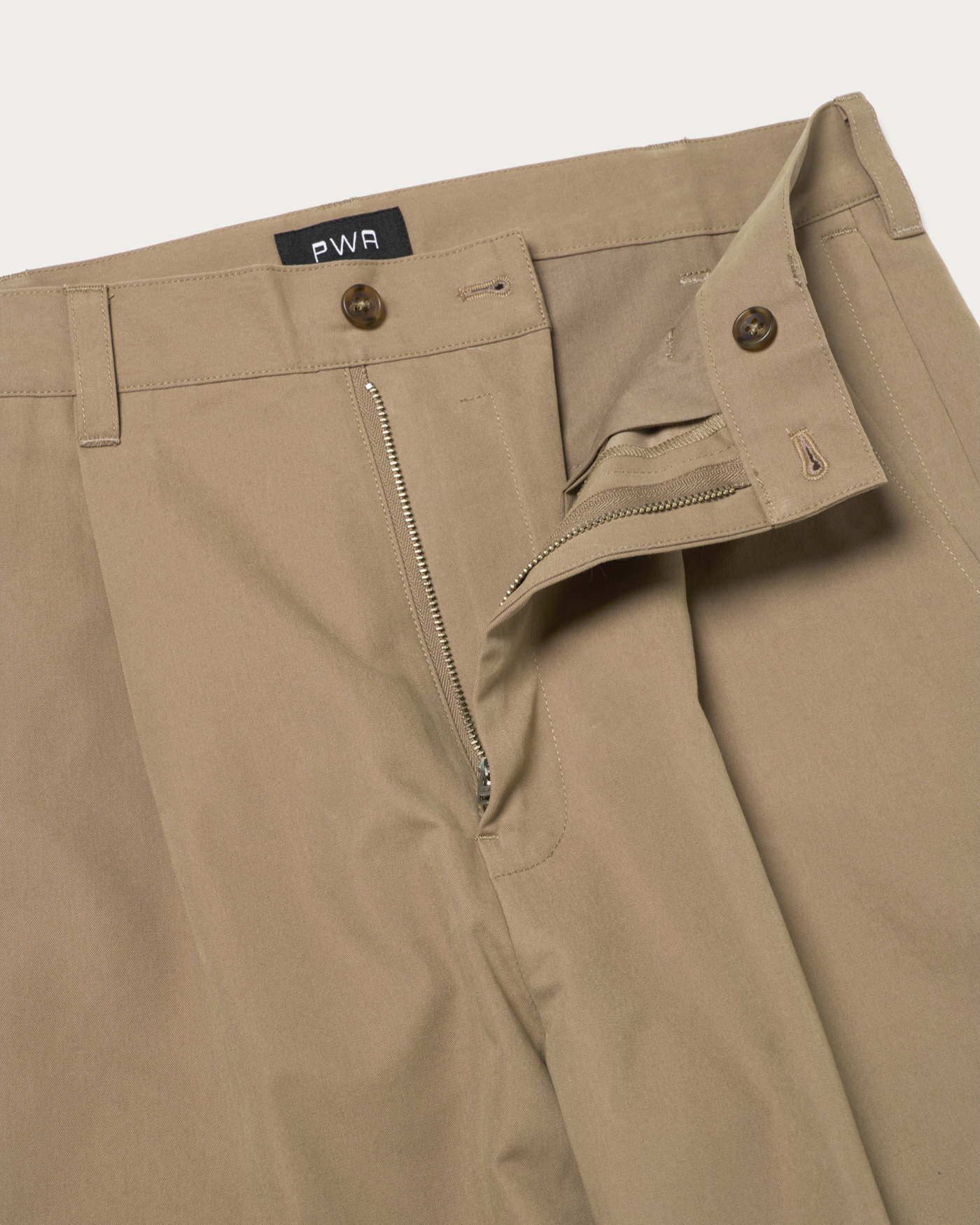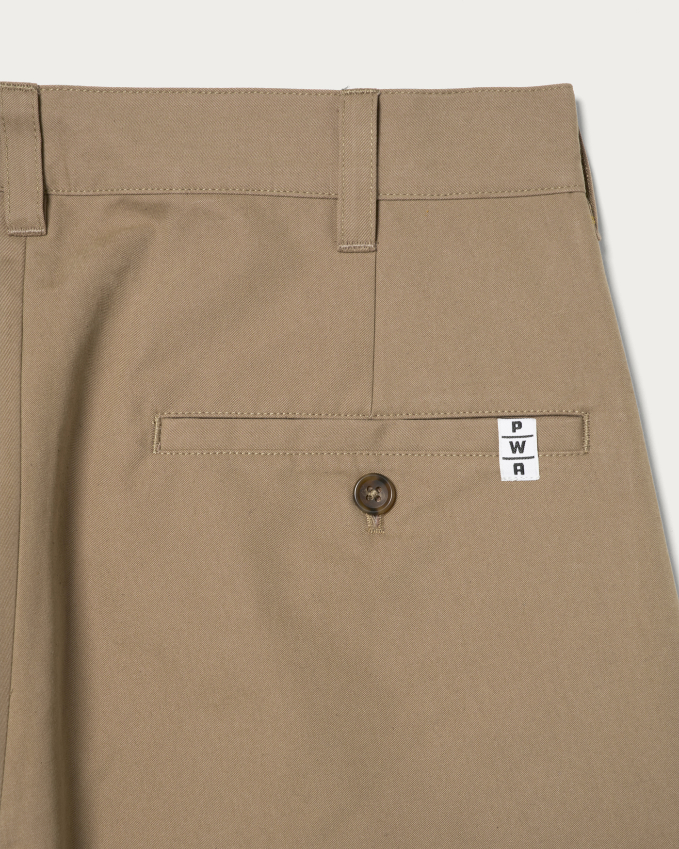 The silhouette was constructed with a slightly relaxed fit. It includes a zippered security pocket and features a brand label. The fabric has a moderate peach skin-like texture.