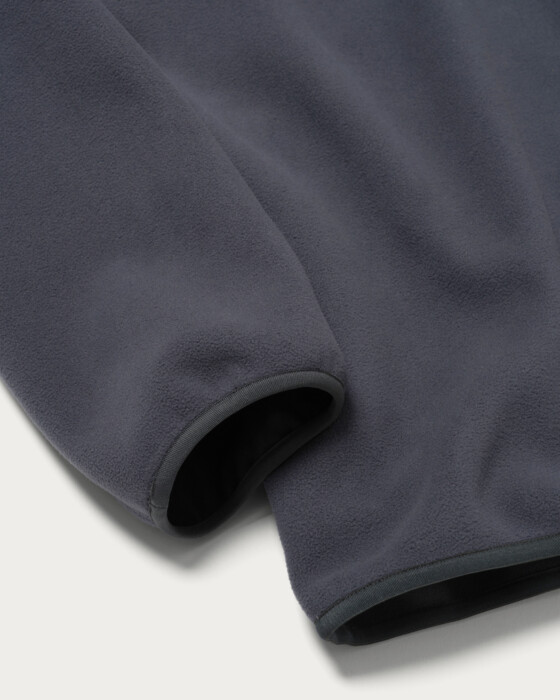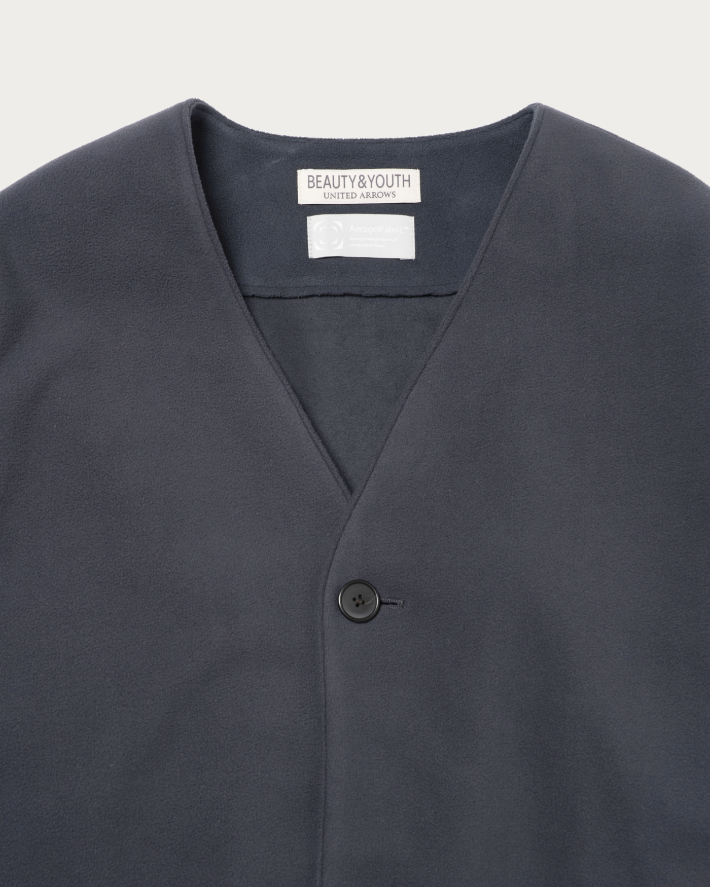 A new type of shirt-style blouson that can be worn more securely as outerwear compared to a cardigan style. The front features a zipper design for a minimalistic impression. The sleeves are lined with mesh fabric to improve the glide of the inner layer.