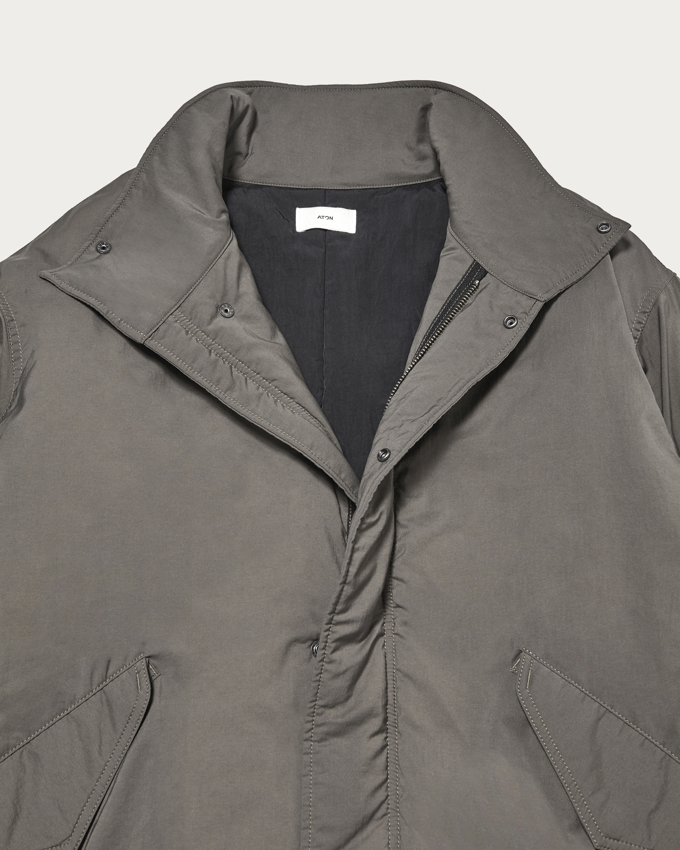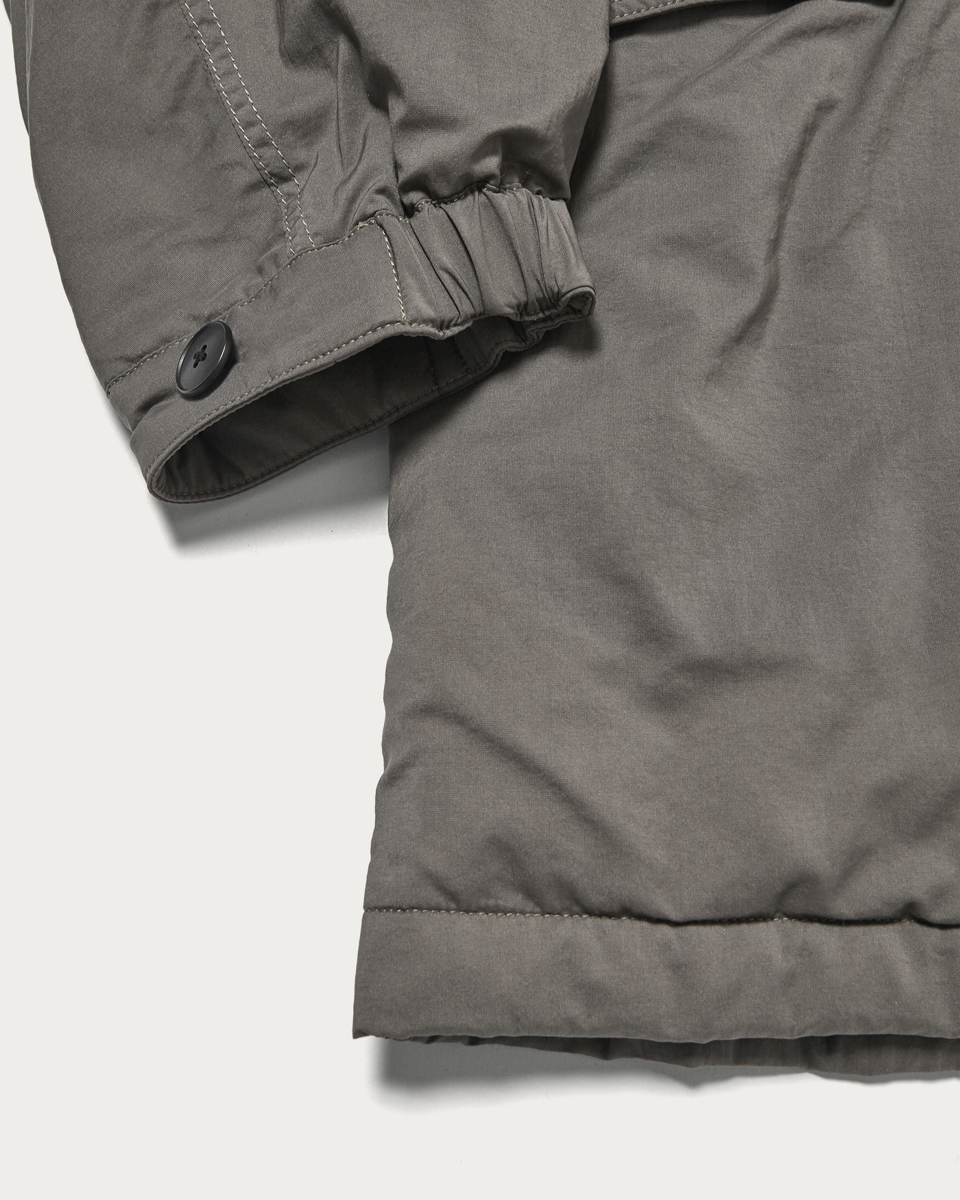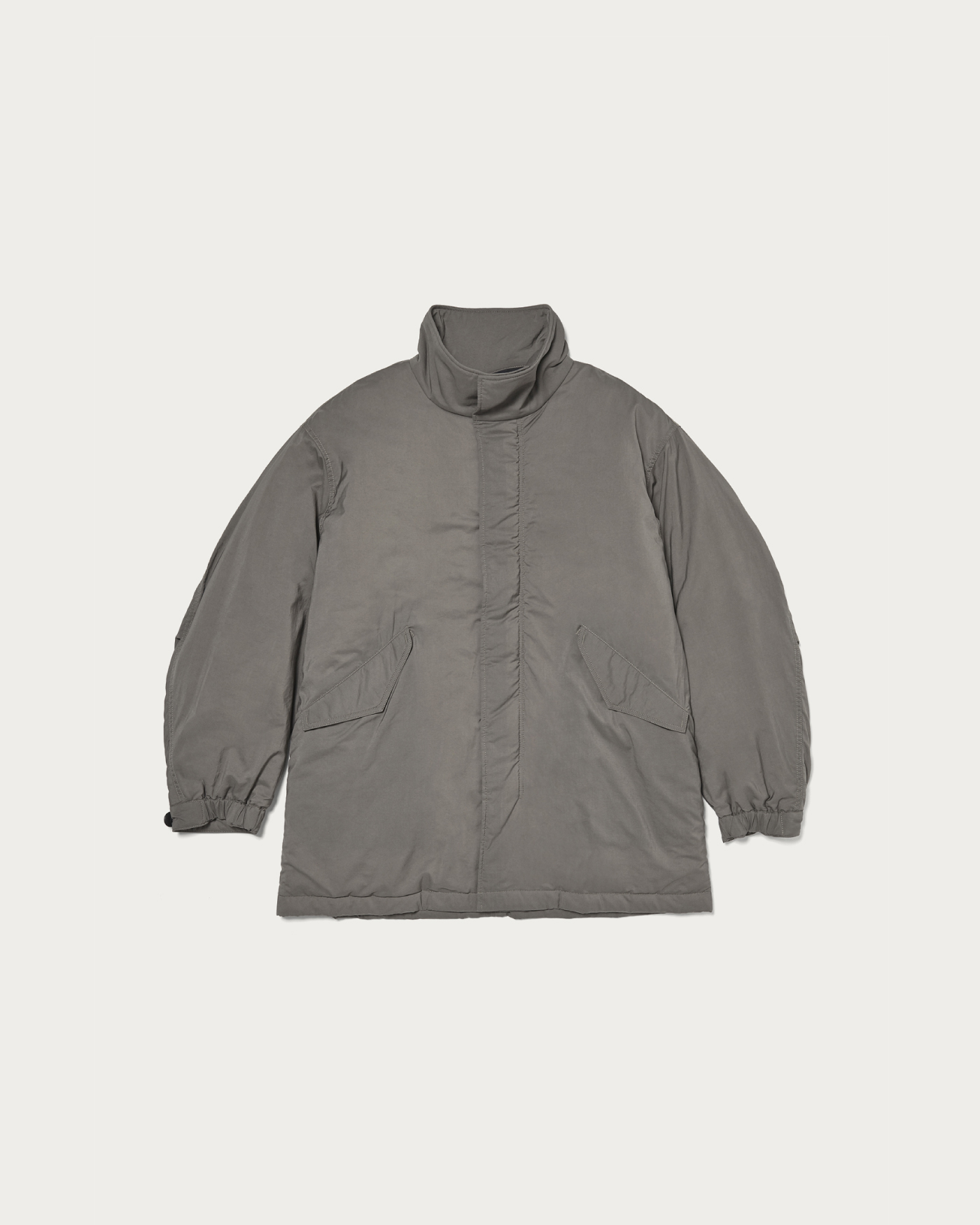 We have customized the popular short mods coat, known as a brand staple with its 3-way design, by creating a special edition that does not feature the 3-way design and instead includes padding. We paid careful attention to the amount of padding, ensuring it wasn't overstuffed, and opted for a moderate amount to maintain the fashionable appearance characteristic of a mods coat. The result is a new short mods coat that emphasizes its fashion-forward expression.