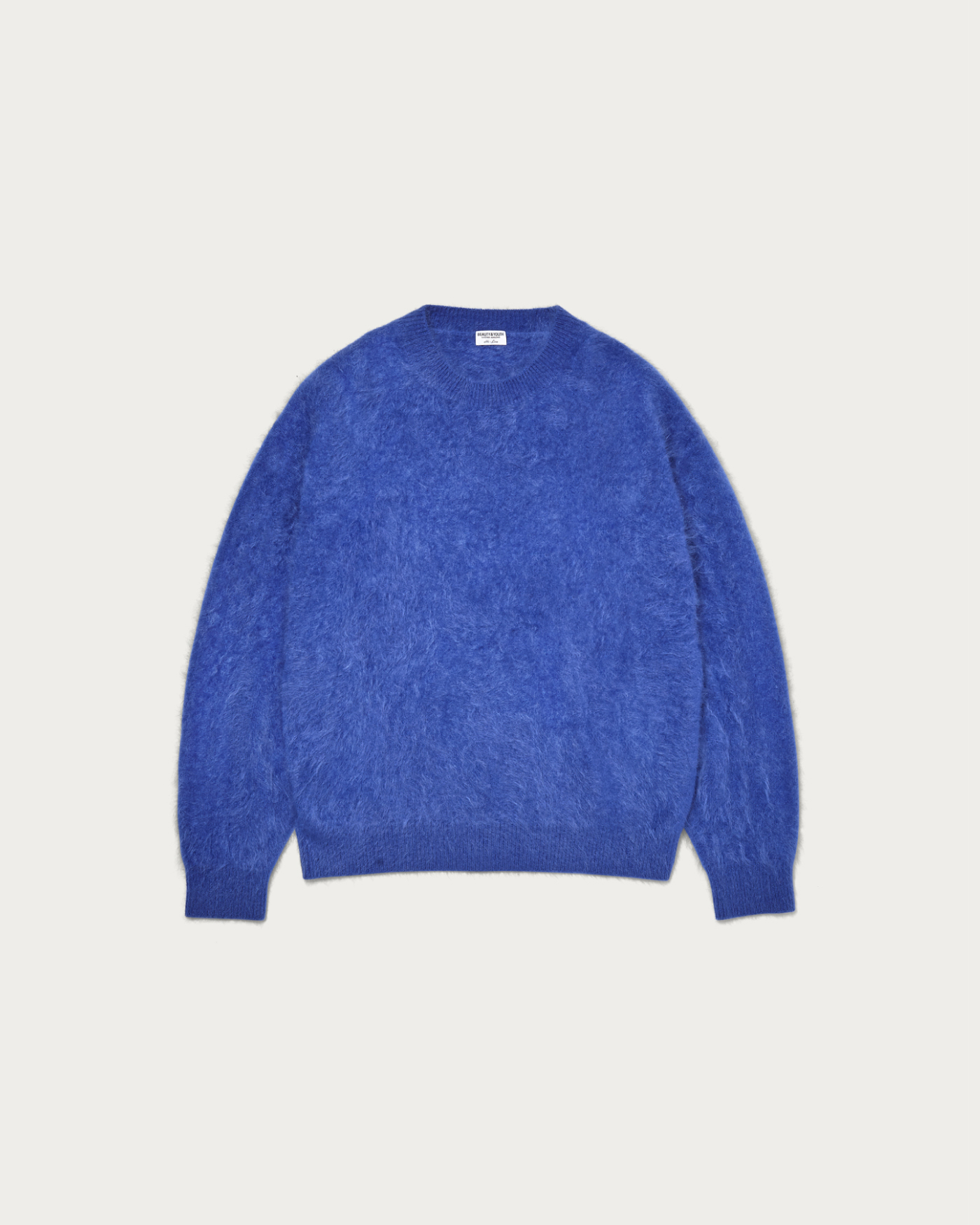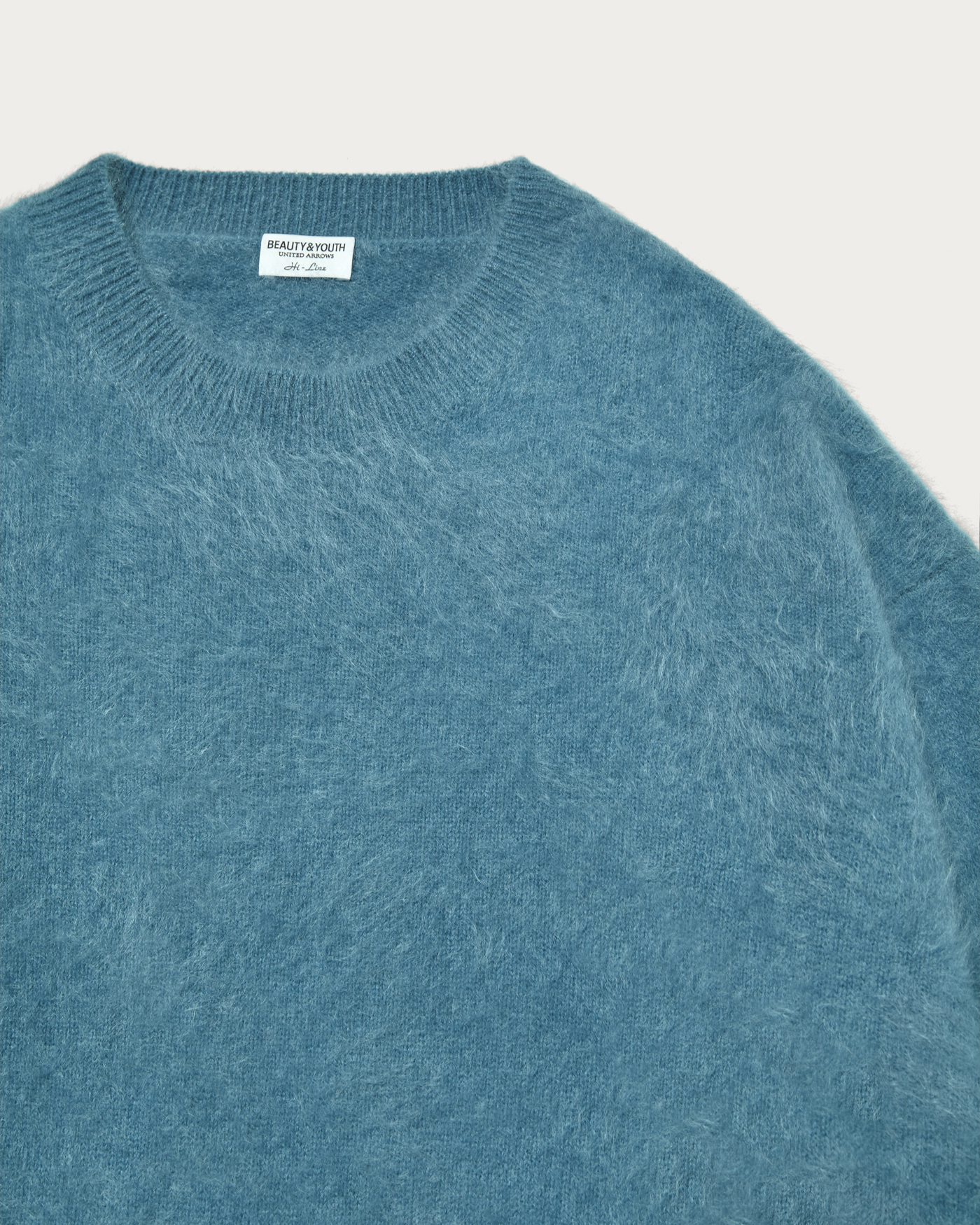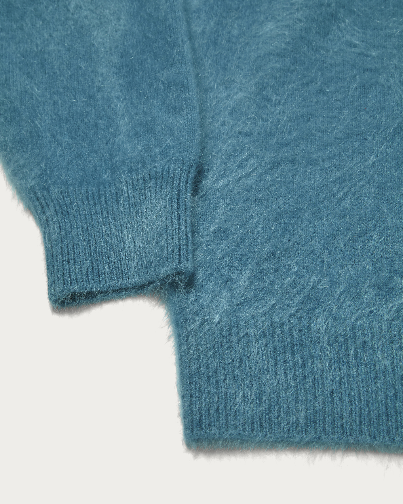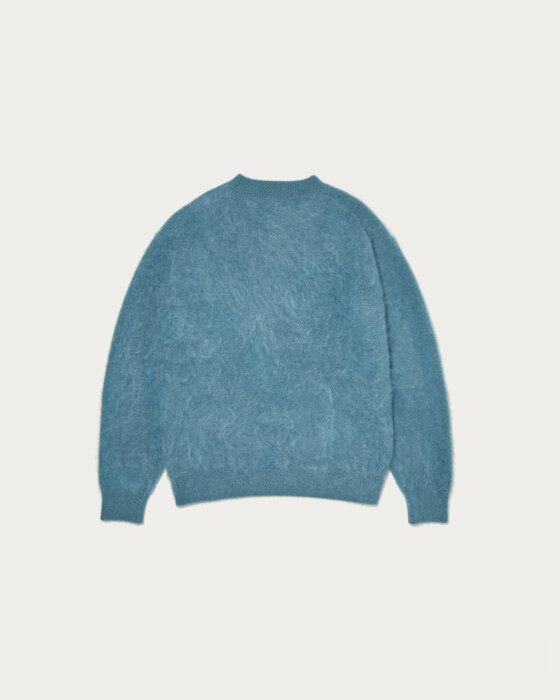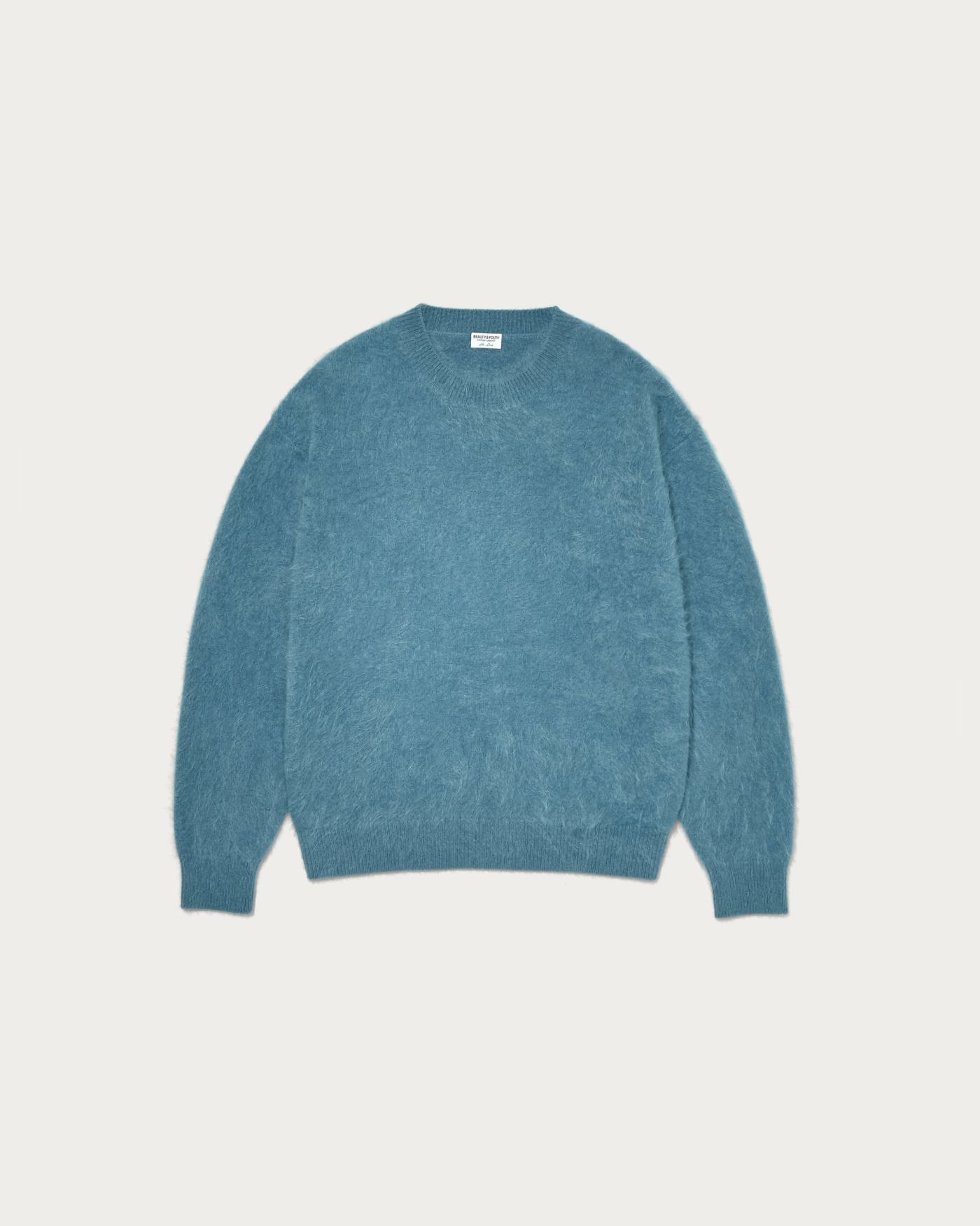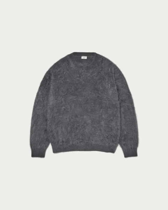 This is an exceptionally luxurious piece crafted from high-quality, voluminous mid-gauge cashmere knit, treated with a special fur processing technique exclusive to cashmere, resulting in a unique, textured appearance. Designed as a simple yet highly wearable crew neck top, it offers versatility and a timeless balance, making it easy to pair with various outfits and suitable for long-term wear.