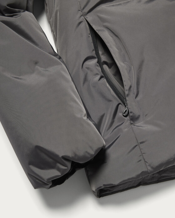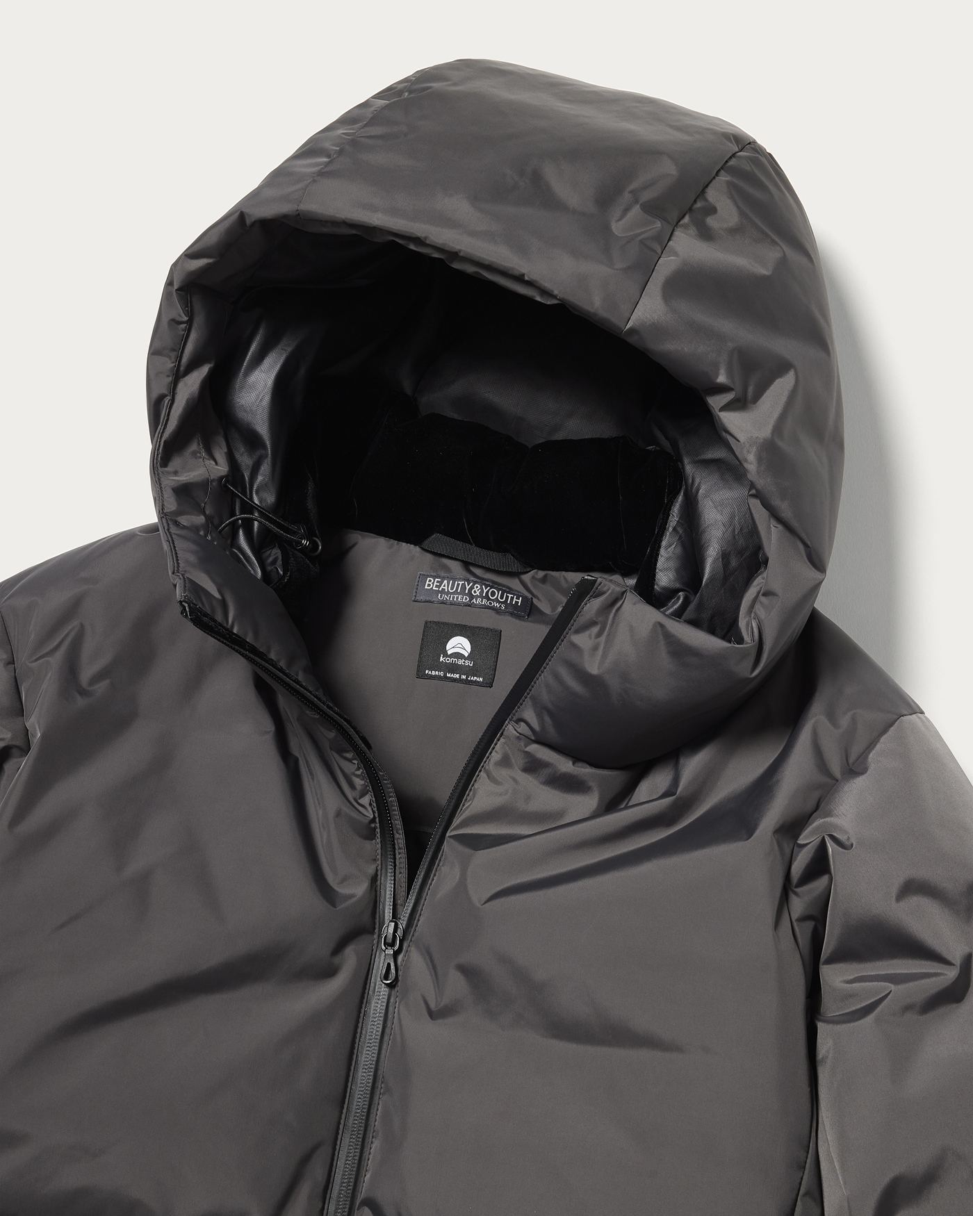 The new down jacket uses nylon taffeta with the "SAITOS-GR" breathable waterproof film developed by Komatsu Matere Co., Ltd. adhered to the back. It features premium down with 900 fill power from Allied Feather & Down, enhancing its performance specifications.