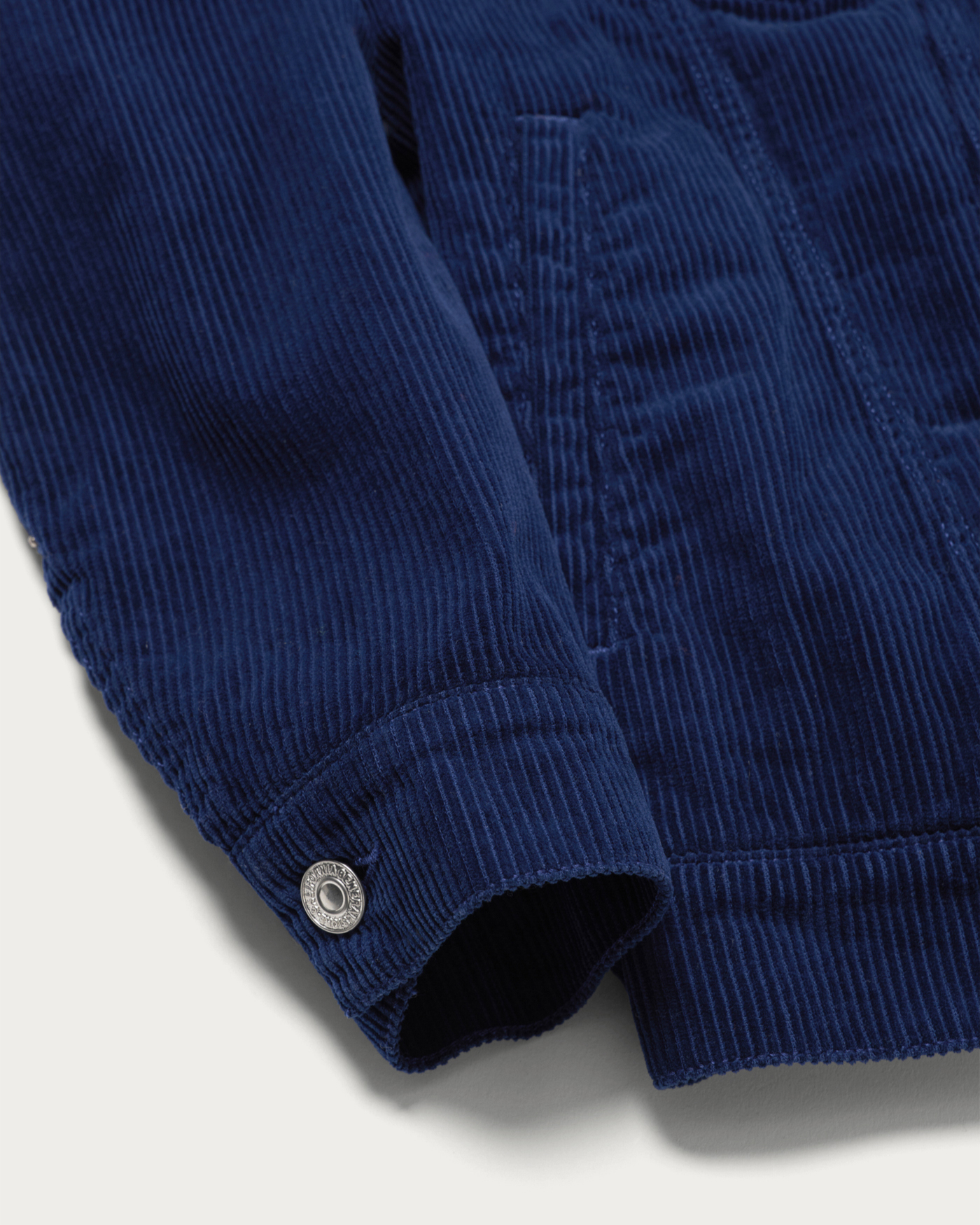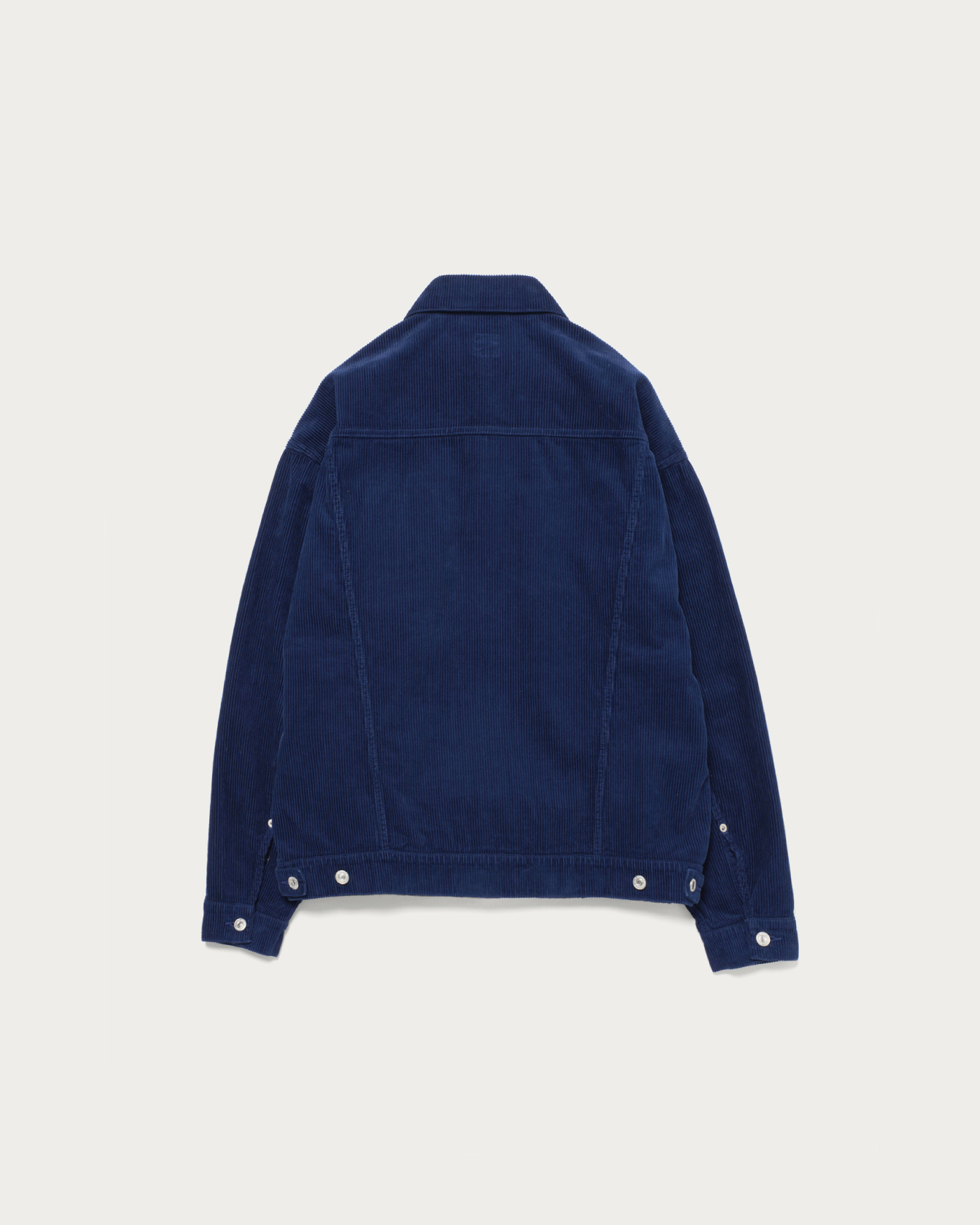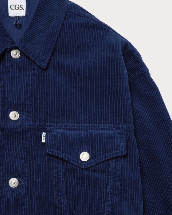 This is a 6-wale wide-ribbed cotton corduroy jacket. The casual texture of the corduroy ribs and the smooth, brushed finish make for a comfortable material. It's a classic CGS jacket inspired by vintage styles from the 1960s. Designed with an oversized silhouette, it can be worn loosely. There are matching pants available in the same color and material, allowing for coordinated set-up styling.