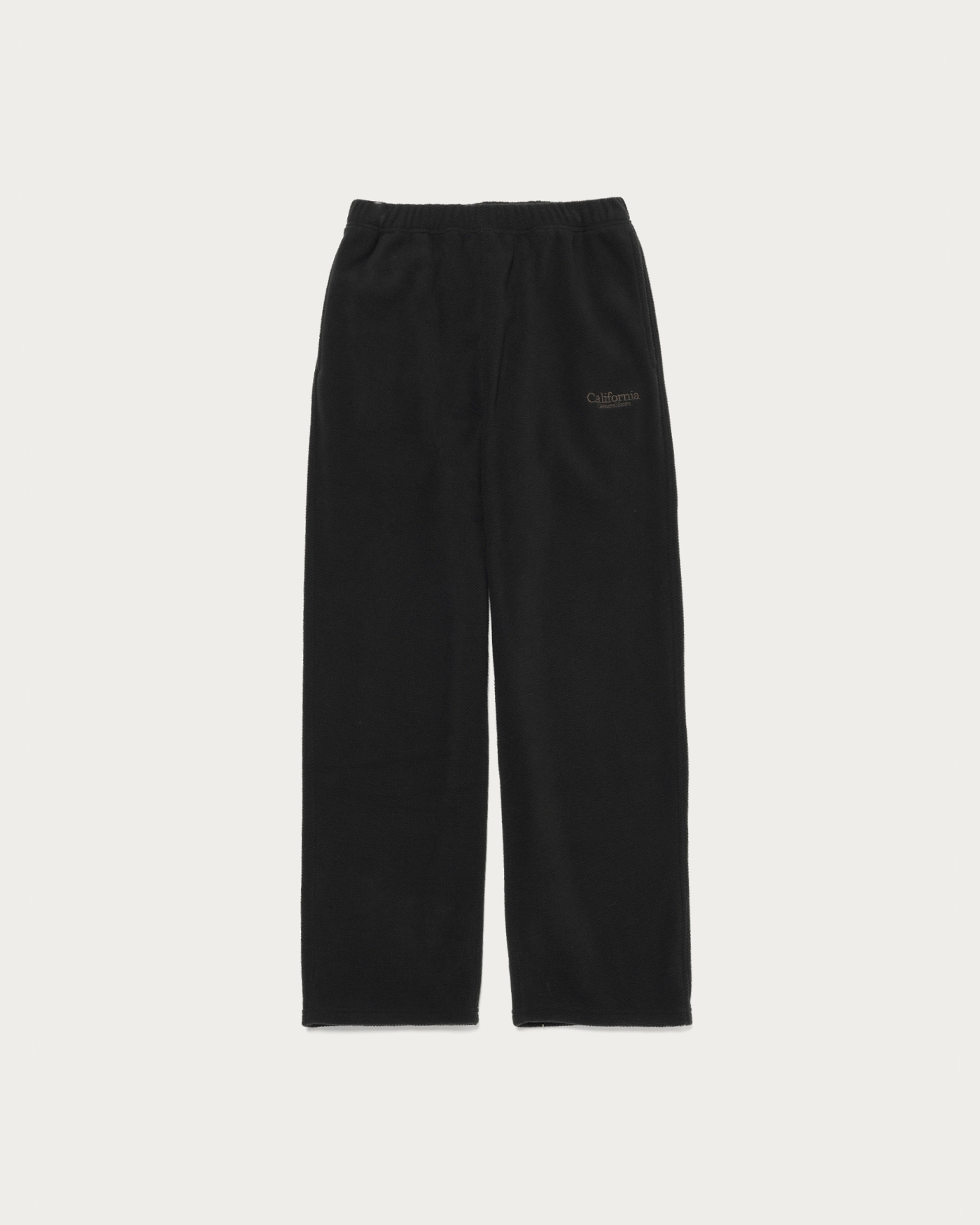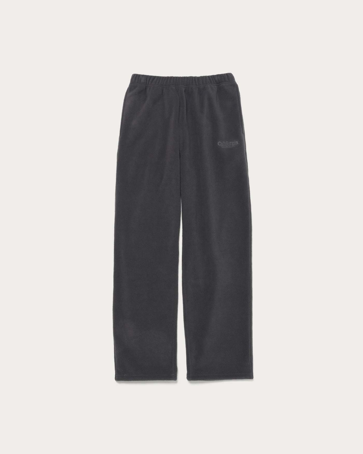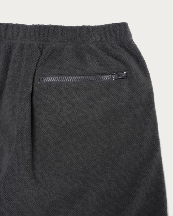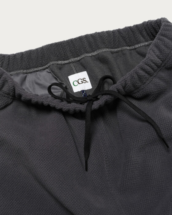 These easy pants are made from fleece material with a textured appearance using recycled polyester. They are designed with a wide silhouette that is subtly tapered, based on track pants. The hem features a drawstring, allowing you to adjust the silhouette. The embroidered shop logo on the left pocket adds a unique touch, making this a unisex item suitable for anyone.