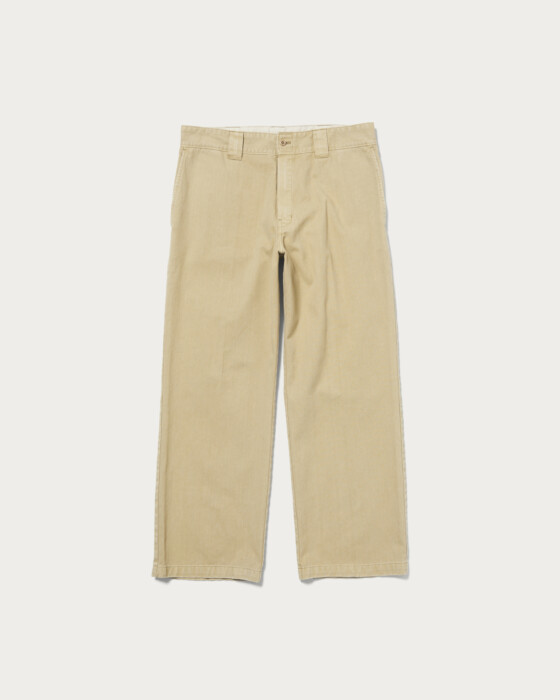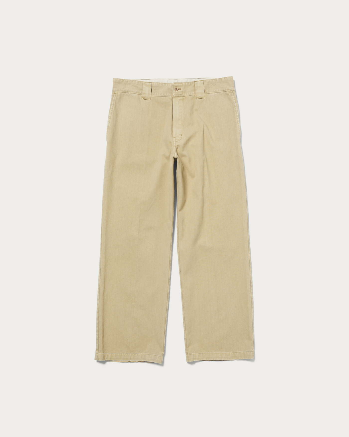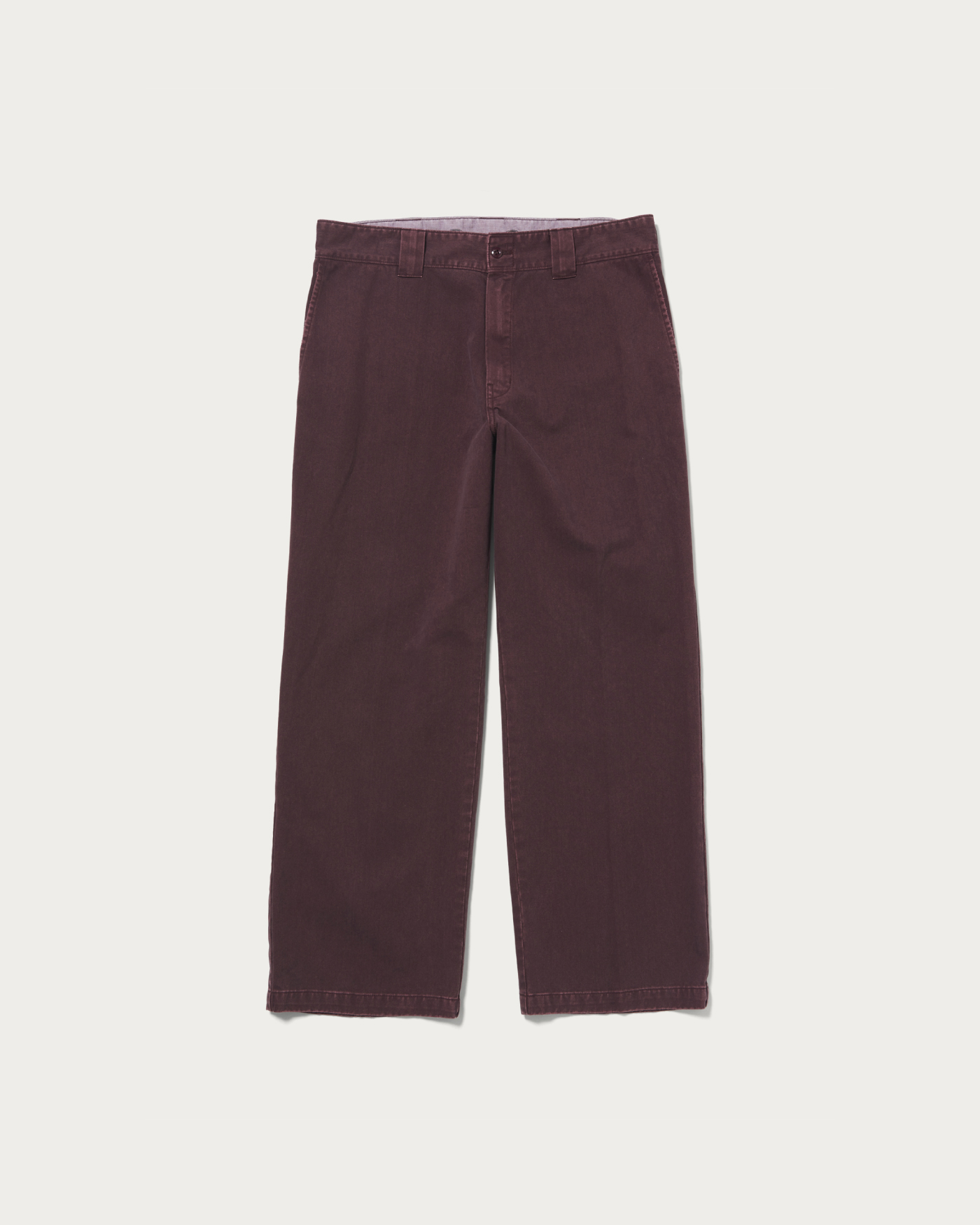 These chinos are based on the "875" model by Dickies and feature a relaxed straight silhouette. They have been given a moderate distressed and faded finish to evoke the image of classic chinos from a bygone era. The back pocket is embroidered with the CGS. logo.