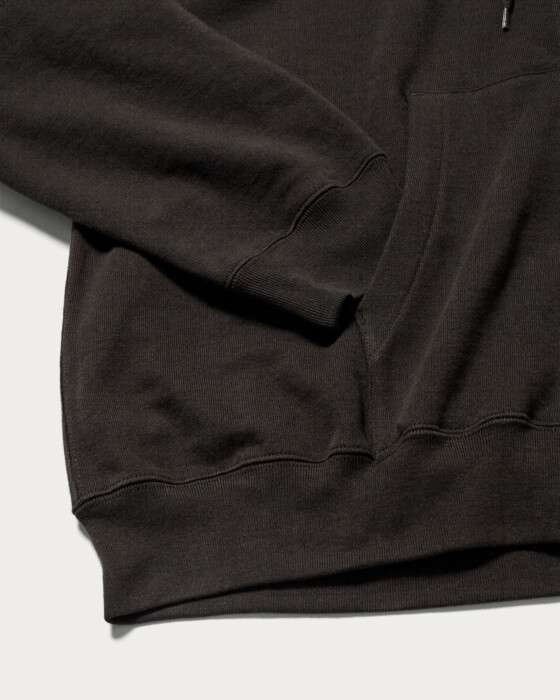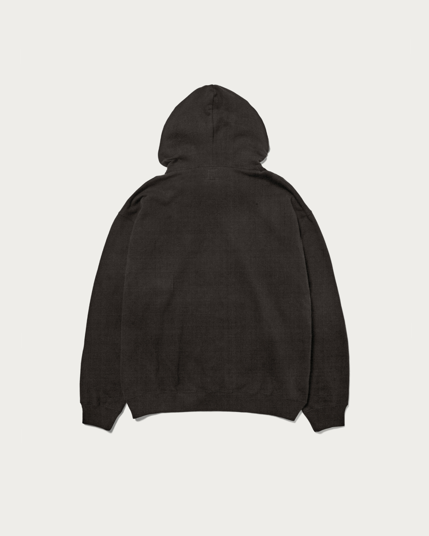A new zip-up sweat parka made from 100% organic cotton. Designed for year-round use, it features a perfectly balanced body that is neither too thin nor too thick. The balloon silhouette combines a sense of fashion with relaxation, and the inside pile is lightly brushed, finished with a wash process for a comfortable feel against the skin. This season, the parka has undergone a degreasing process, giving it a slightly dry texture as a key feature. The embroidered shop logo on the left chest adds a subtle accent.