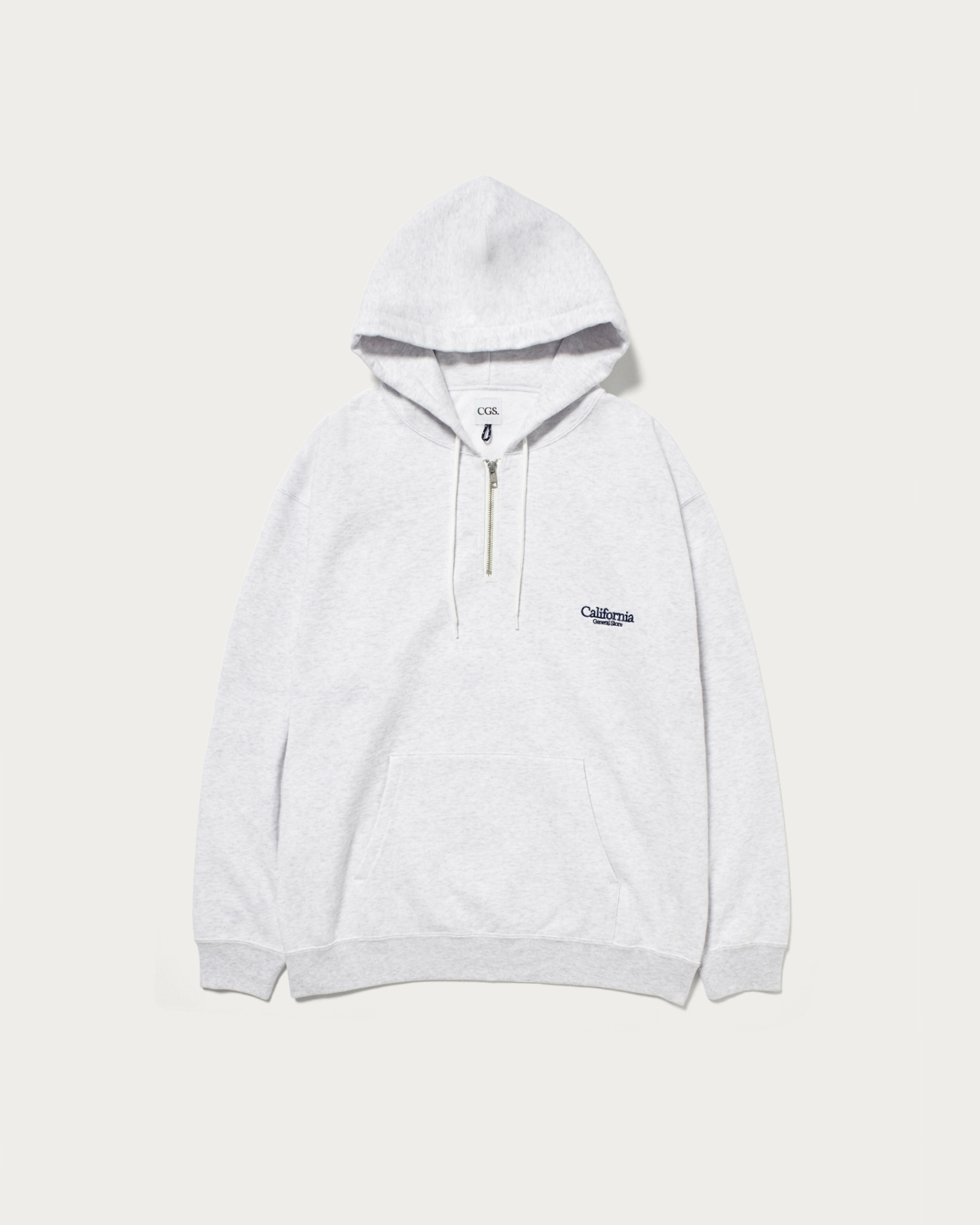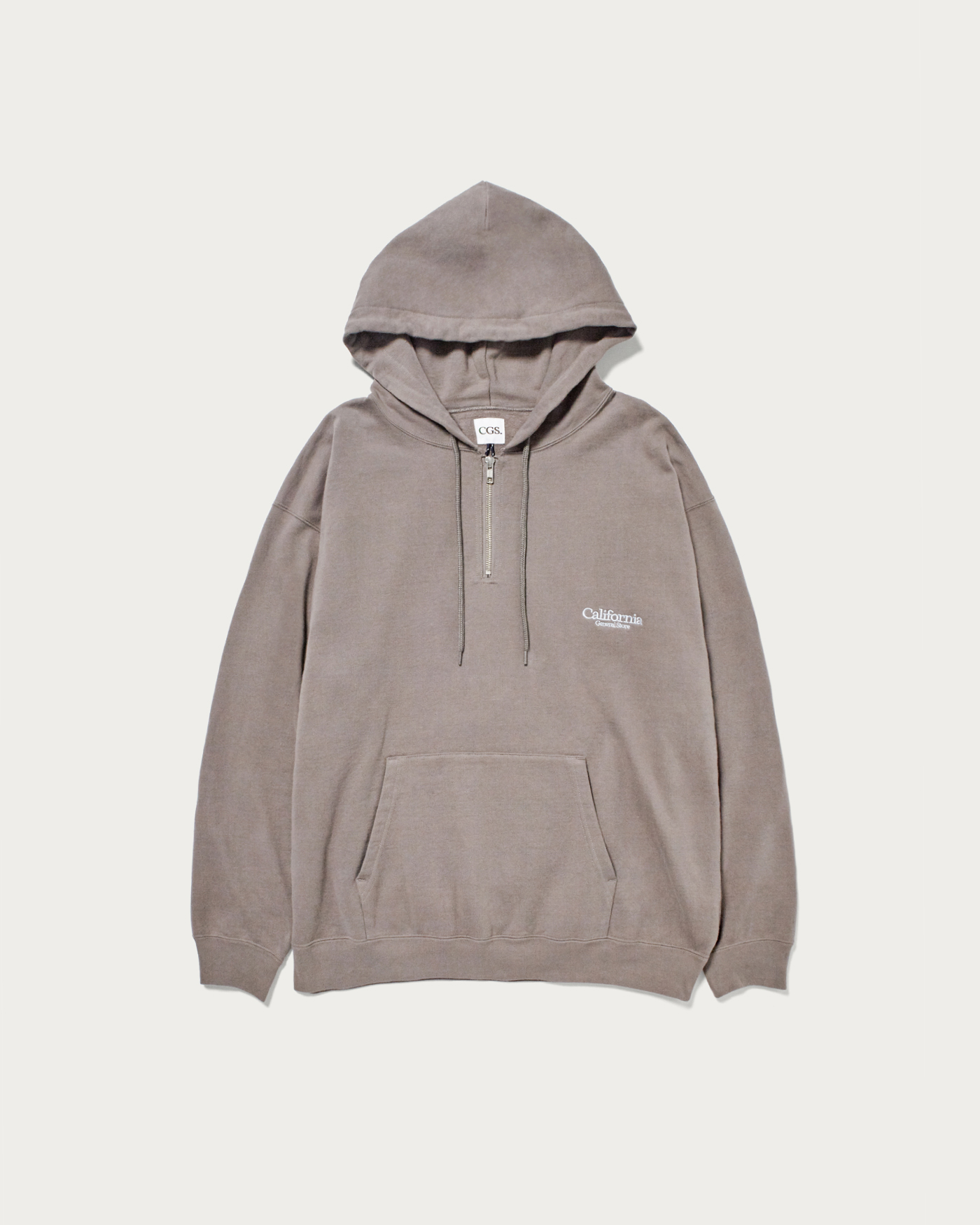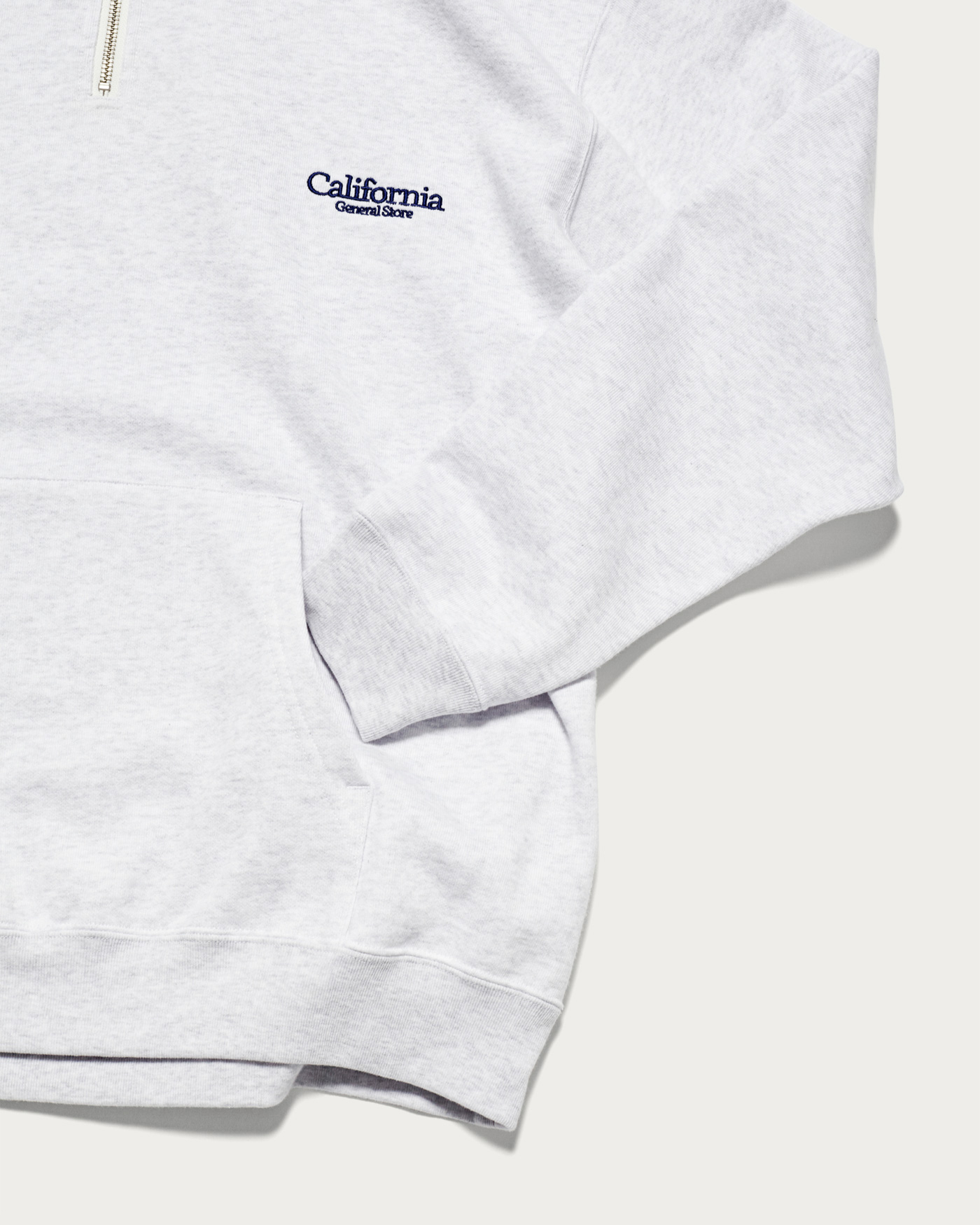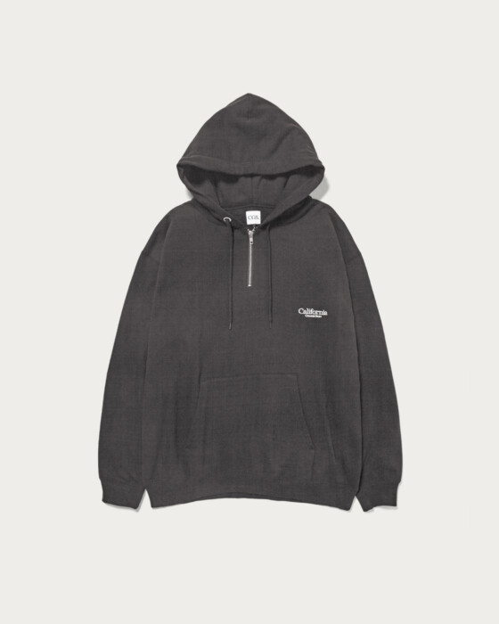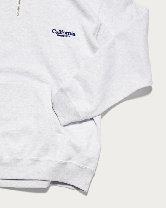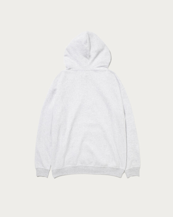 A half-zip hoodie made from 100% organic cotton, knitted to a soft and fluffy finish. Designed for year-round use, it features a perfectly balanced body that is neither too thin nor too thick, achieving both a fashionable and relaxed balloon silhouette. The inside pile is slightly brushed, and a wash process gives it a comfortable feel against the skin. This season, a degreasing process adds a slightly dry texture as a key feature. The embroidered shop logo on the left chest adds a subtle accent.