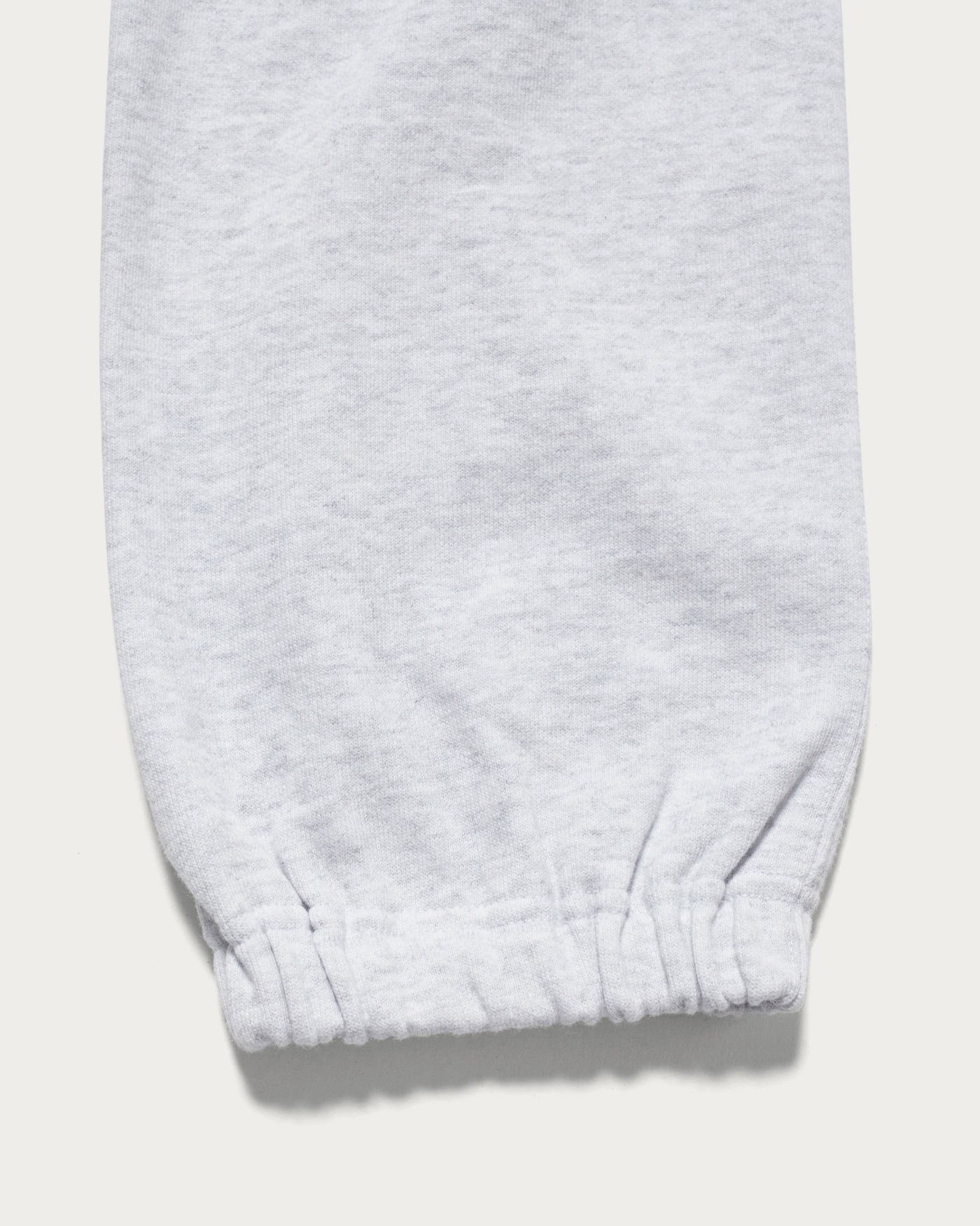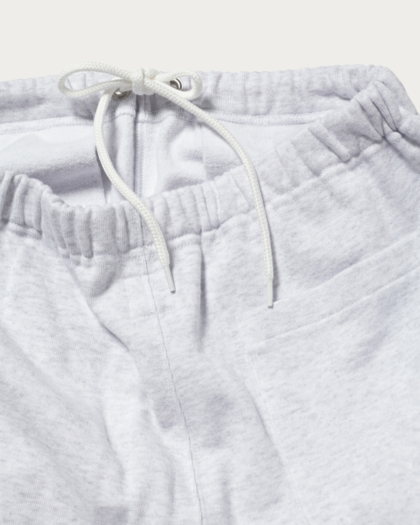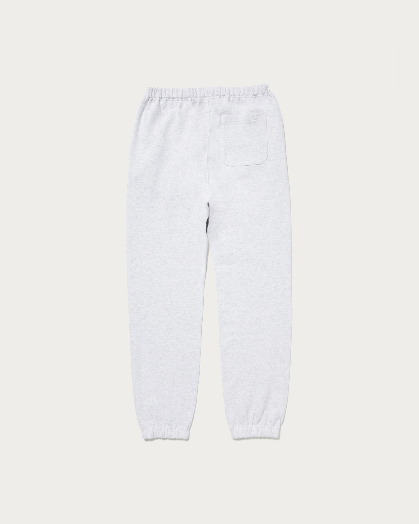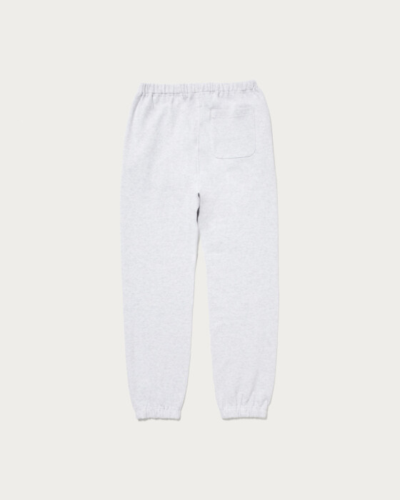 Sweatpants made from 100% organic cotton, knitted to a soft and plush finish. Featuring a slightly compact fit around the hips, they offer a sleek yet relaxed silhouette. The fabric is perfectly balanced—not too thin or too thick—and the inside is lightly brushed and washed for a comfortable feel against the skin. This season, a degreasing process has been applied to give it a slightly dry texture, adding to its unique appeal. The embroidered shop logo on the left pocket serves as a subtle accent.