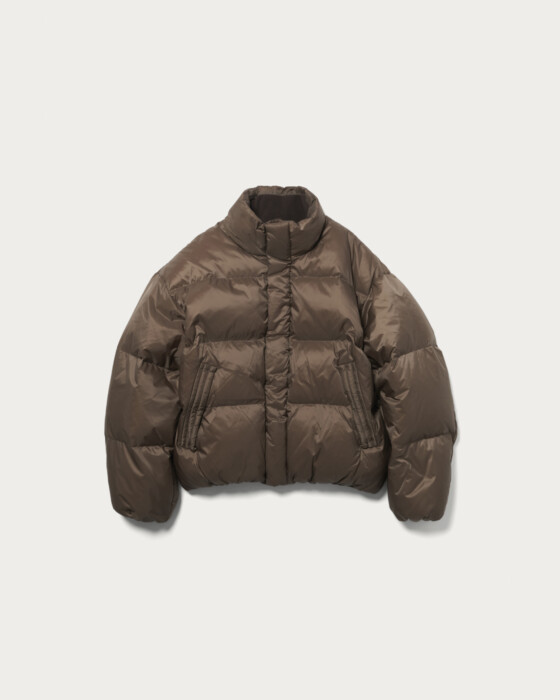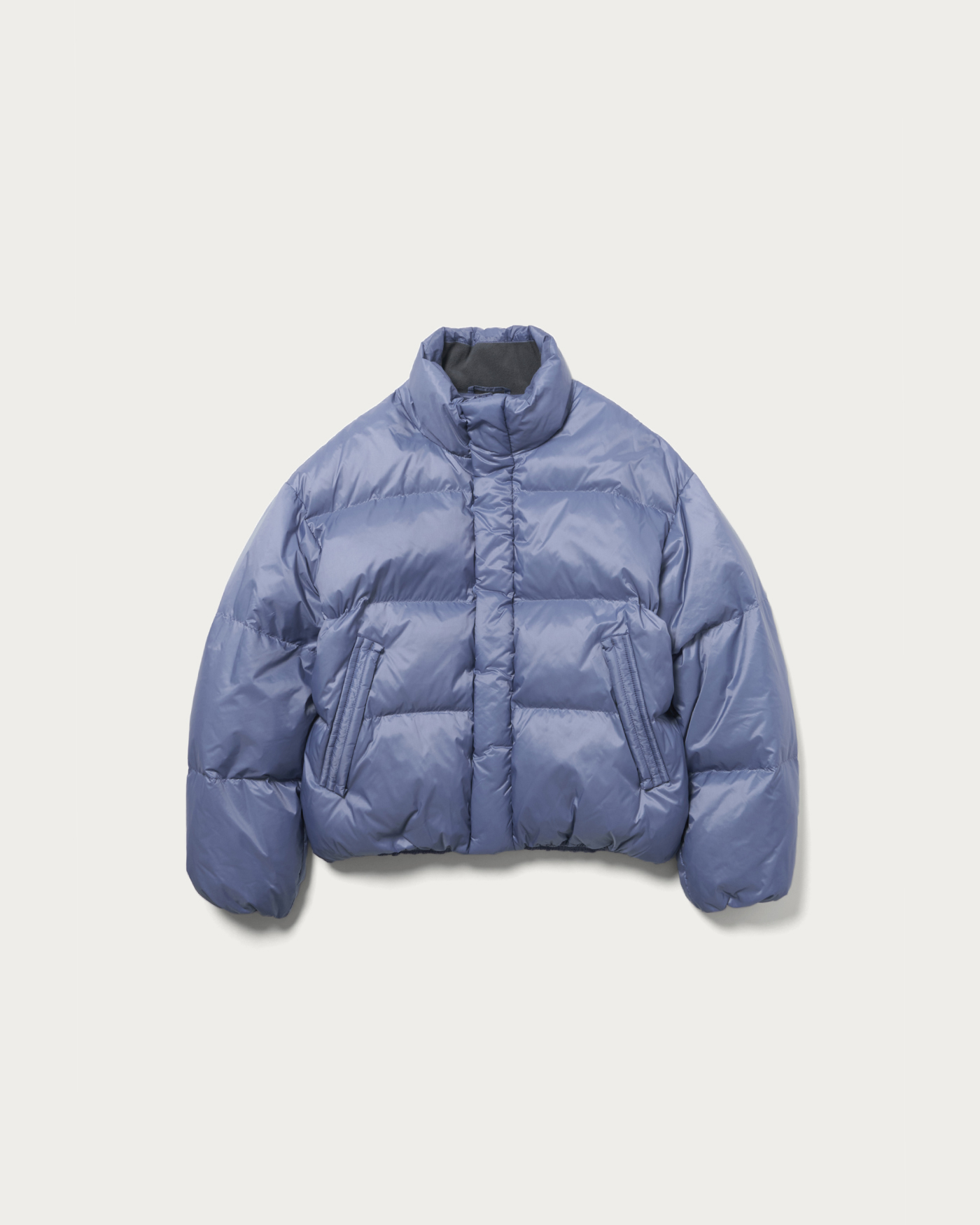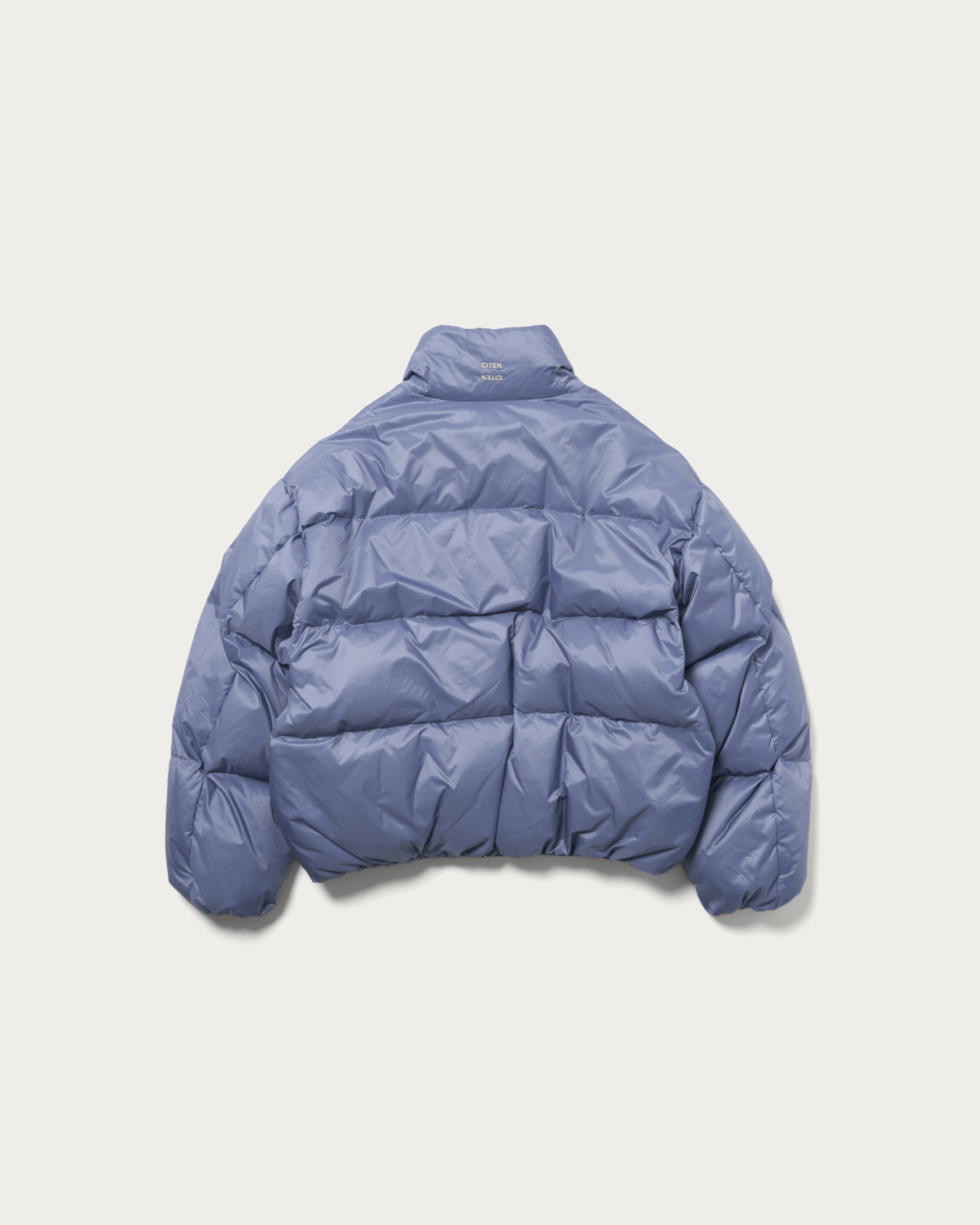 〈TAION〉 This cocoon silhouette down jacket is crafted from a classic 20-denier material known for its suppleness and vibrant color, dyed in CITEN's unique original colors. It is generously filled with 800 fill power white duck down. Despite its voluminous appearance, it is characterized by its practical lightness.