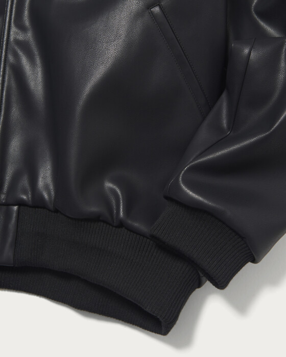A blouson updated with a relaxed balloon silhouette, based on the sports-inspired archives of the 1990s. It uses a leather-like material with a soft texture similar to lamb leather. The lining is padded, making it a valuable piece even during the winter months.