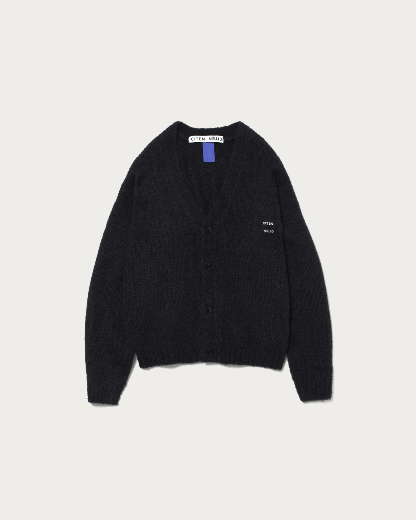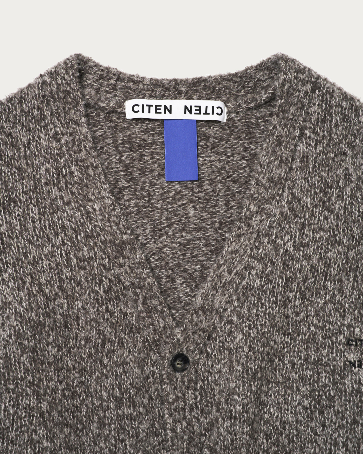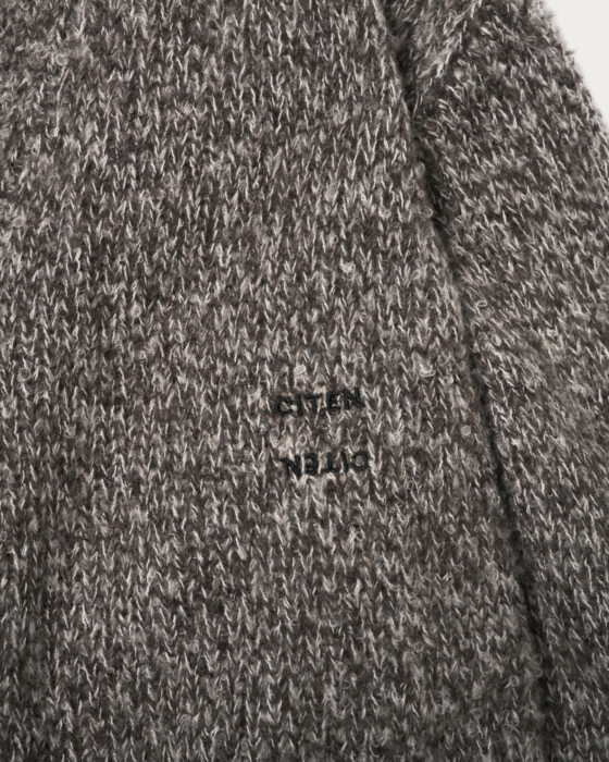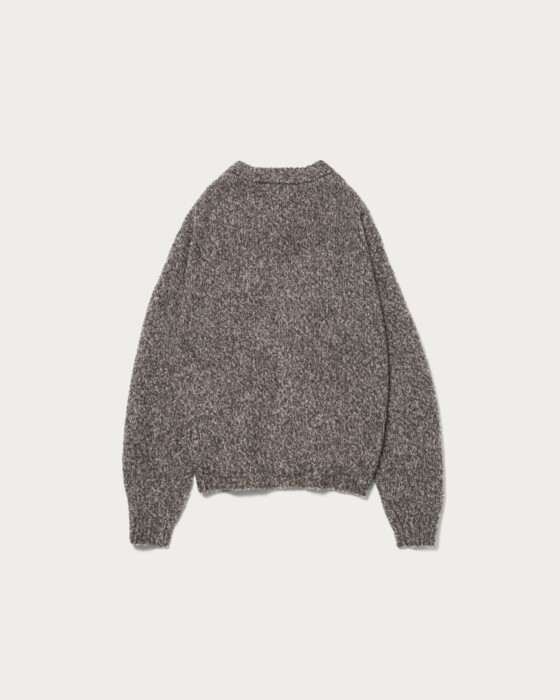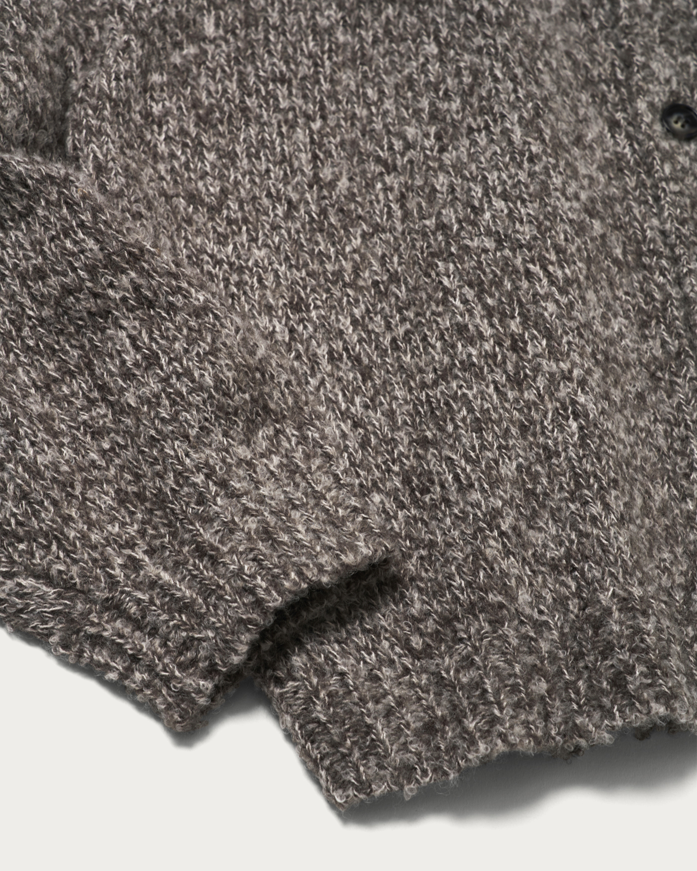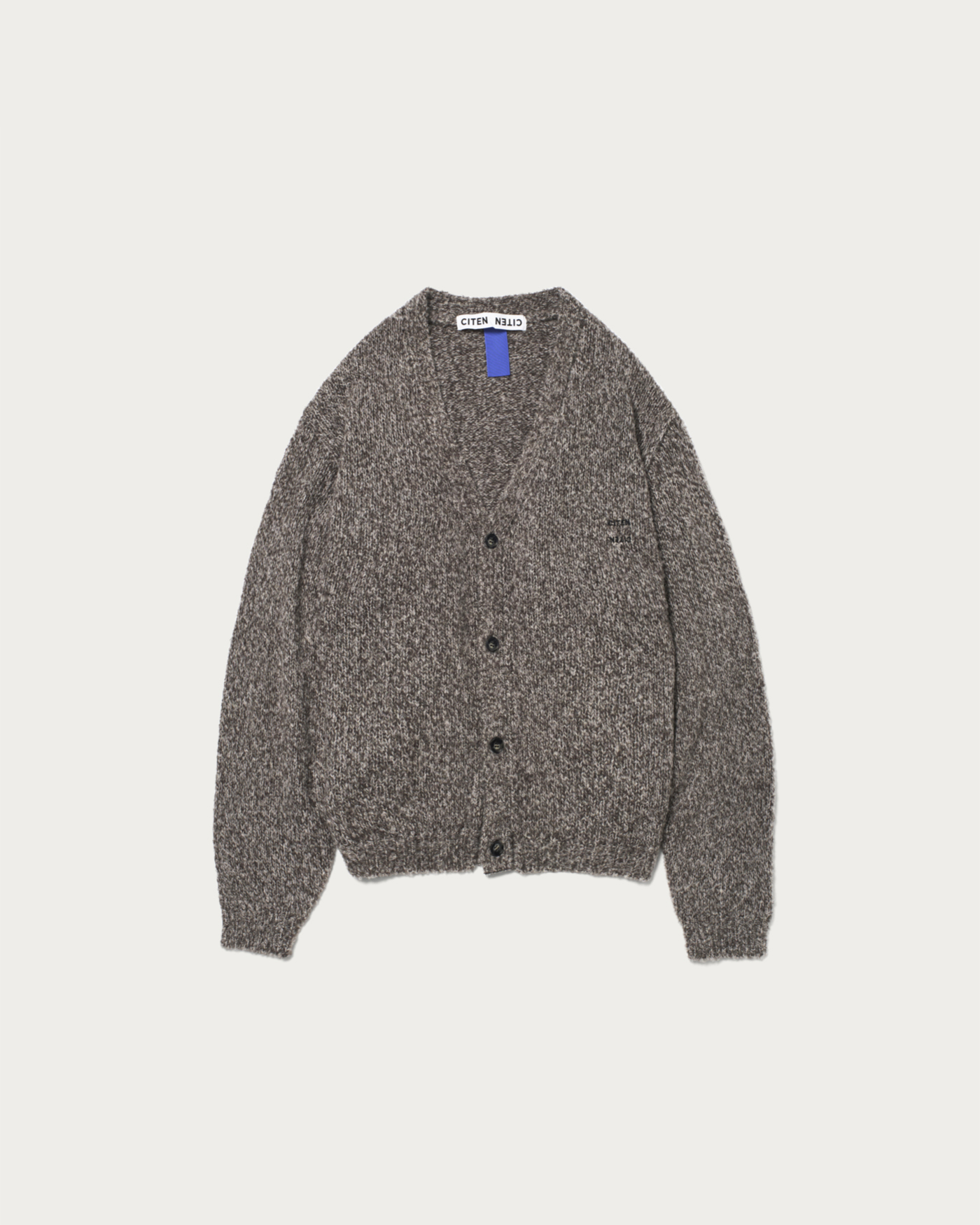 A cardigan made from a blend of acrylic and wool with a voluminous bouclé fabric. Its relaxed silhouette and mélange-style coloring catch the eye.