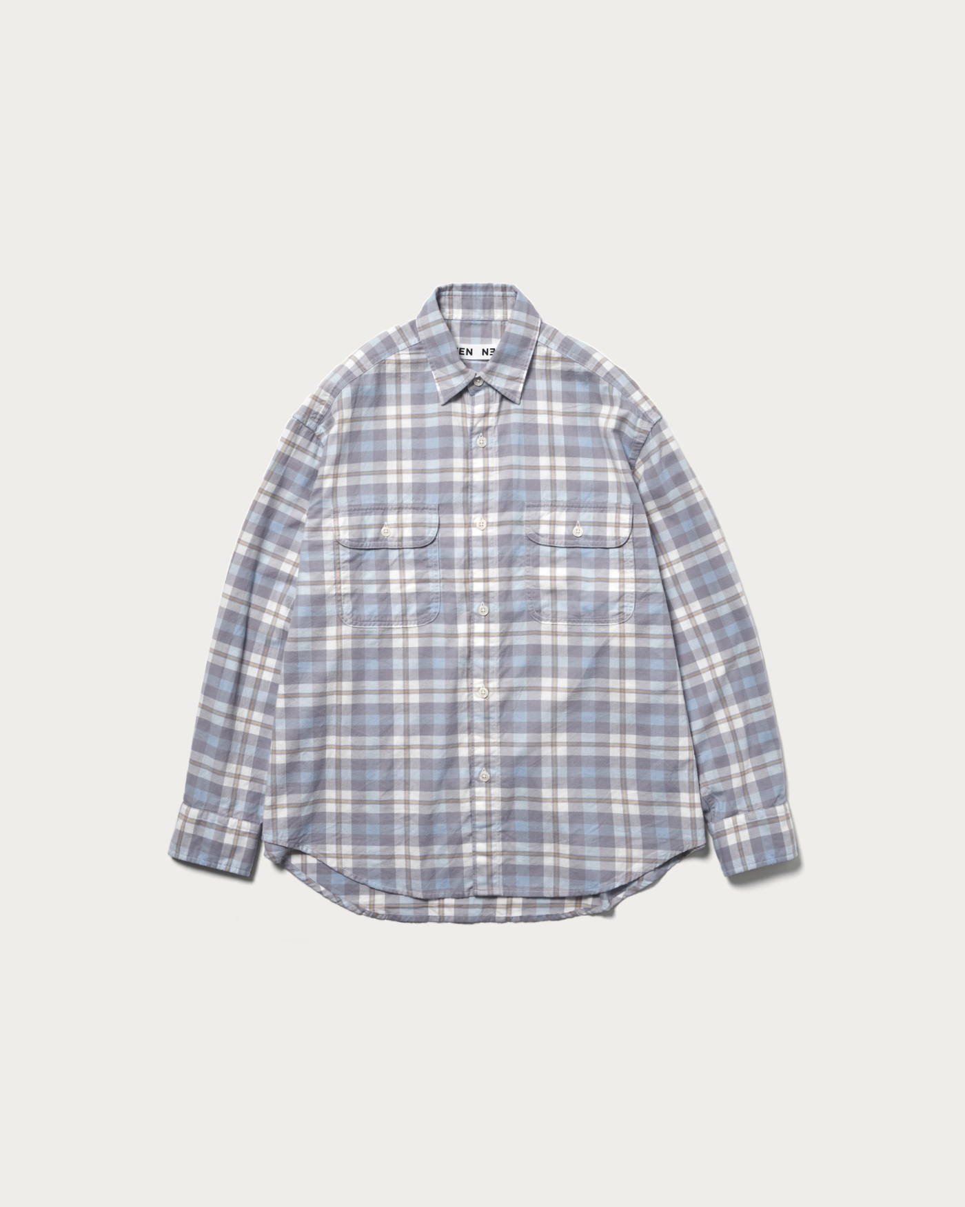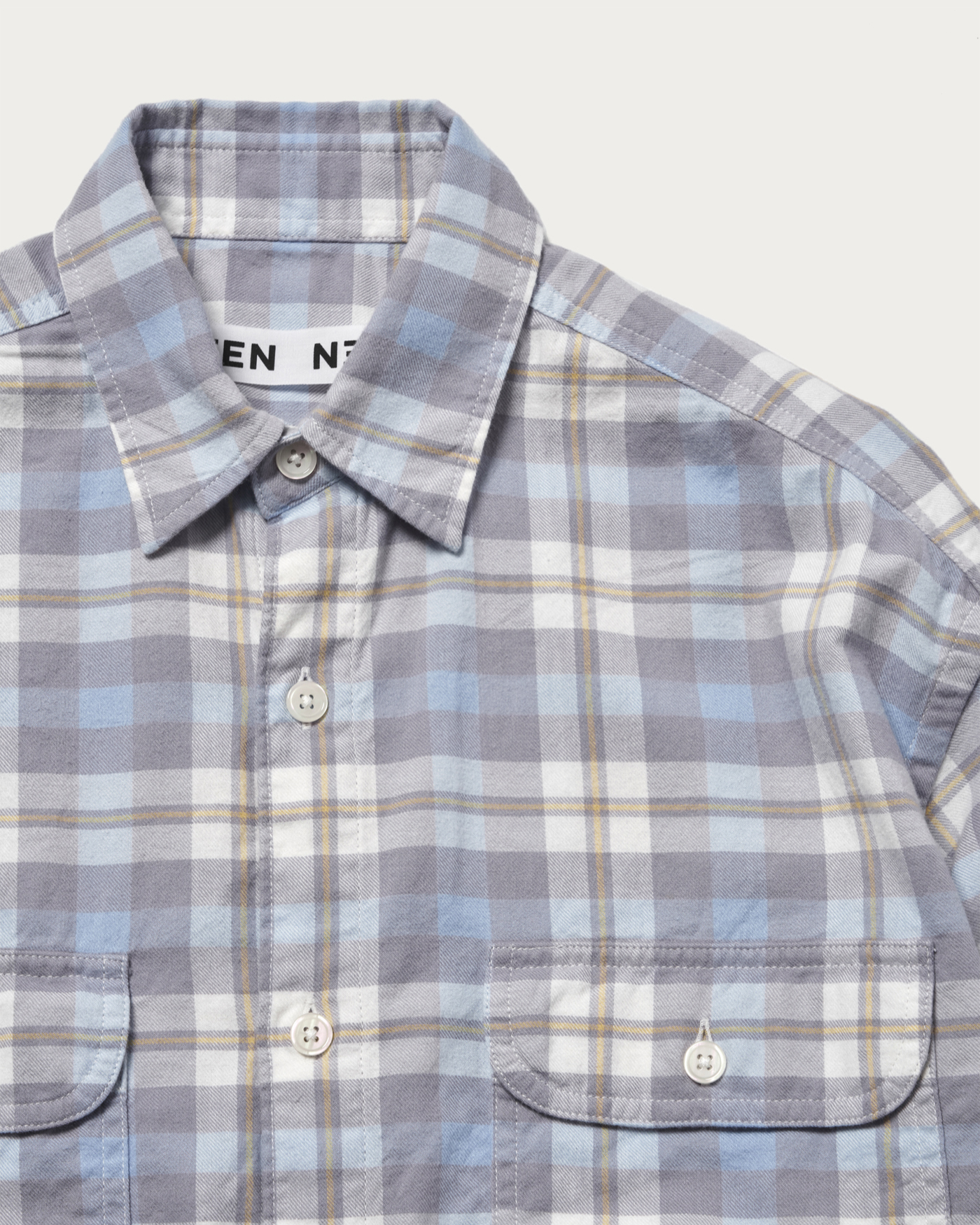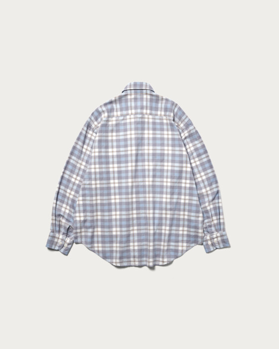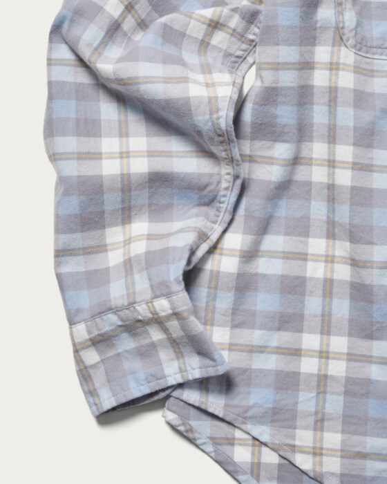 A double-pocket shirt featuring an original check pattern characterized by a blue gradient that is accentuated by pops of yellow. Made from brushed cotton material, it offers a warm and cozy touch.