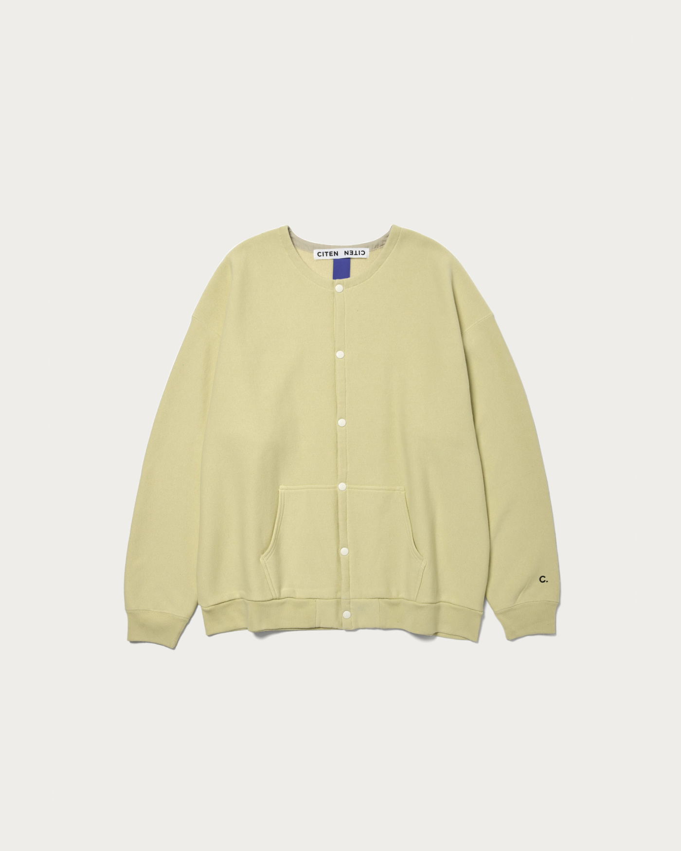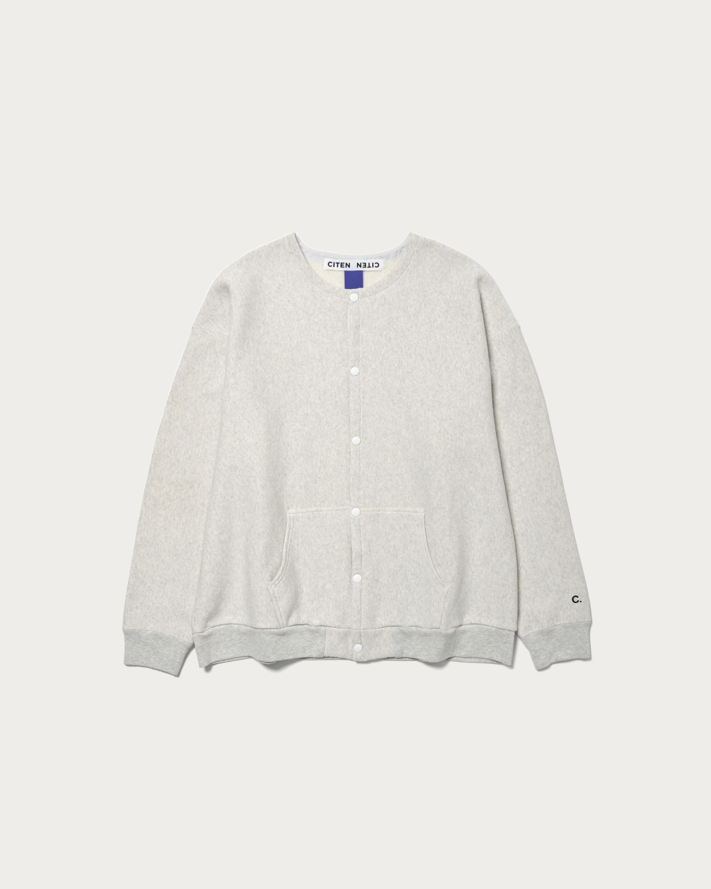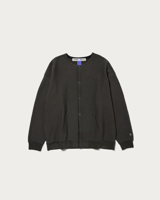 A sweat cardigan designed with a relaxed silhouette in mind, achieving the perfect balance without becoming too loose. It features fine and delicate details such as the orientation of the material, side specifications, and the CITEN embroidered logo.