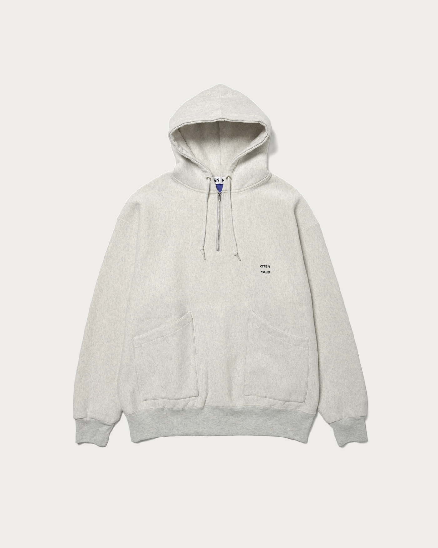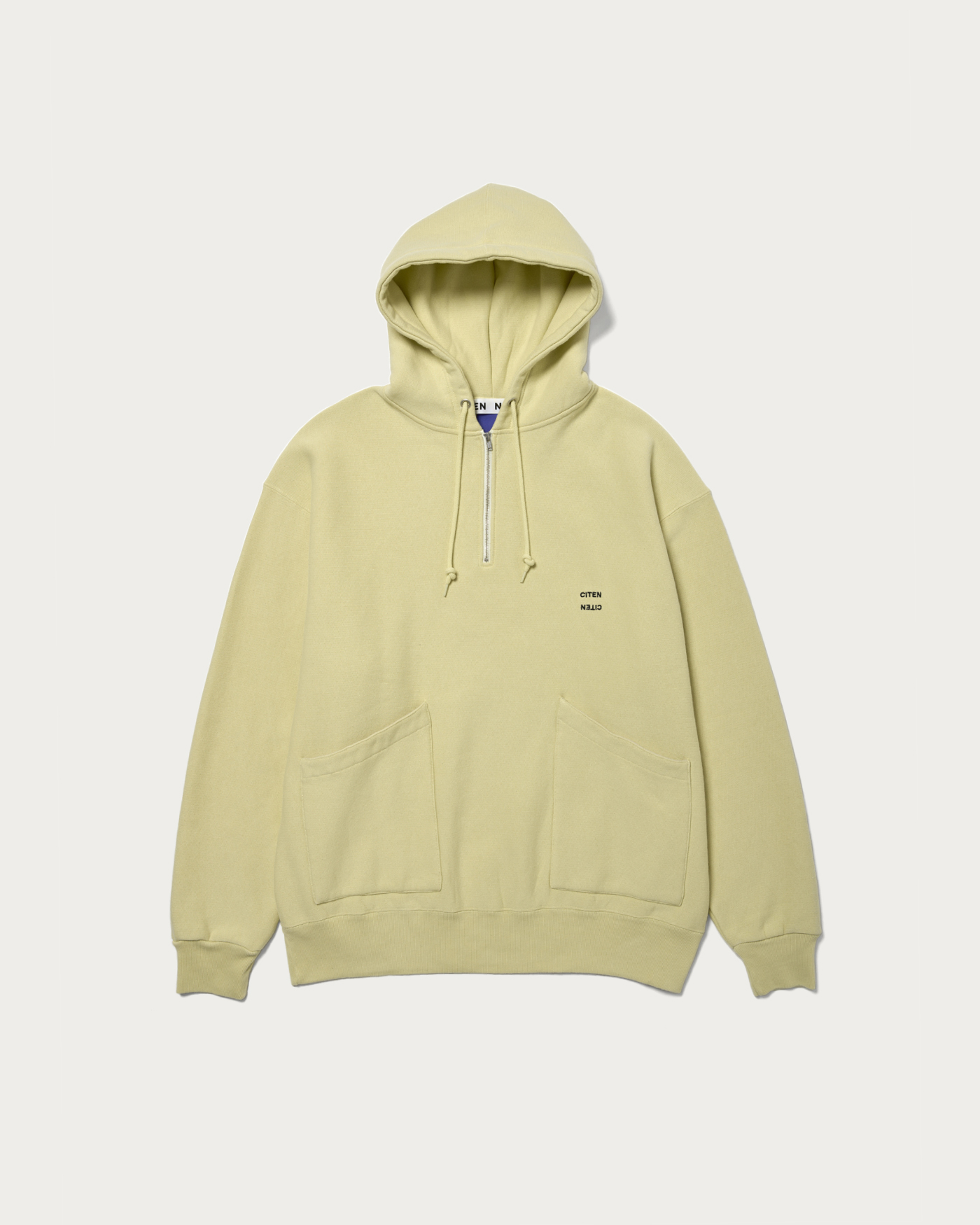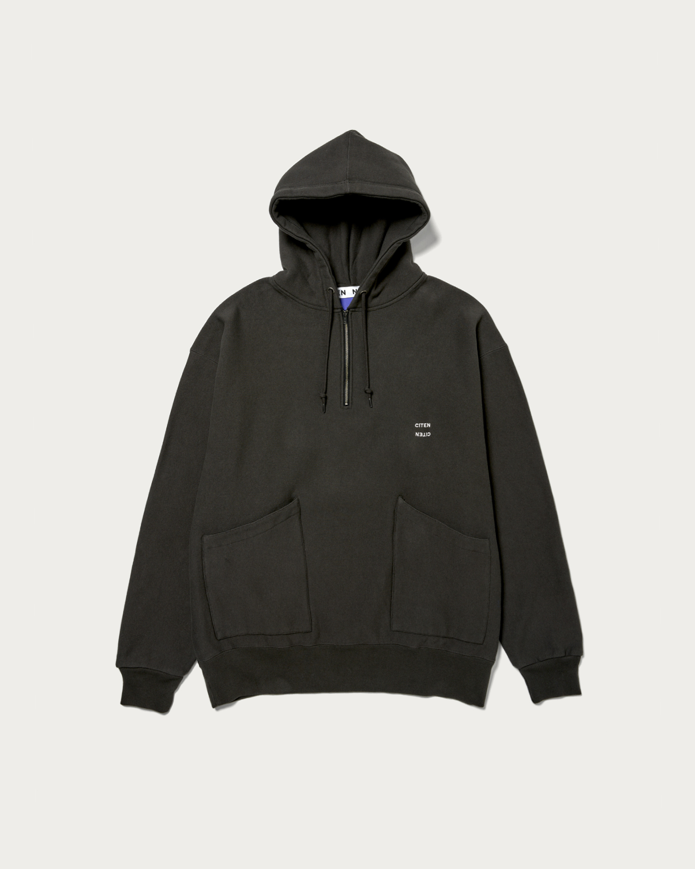 A half-zip hoodie designed with a relaxed volume in mind, yet finished in a compact and elegant manner to reflect this year's overall balance. Within its refined silhouette, we've incorporated subtle and delicate details such as the orientation of the material, side specifications, and the CITEN embroidered logo. Inspired by vintage archives, the design around the pockets and the half-zip is uniquely translated into a modern form.