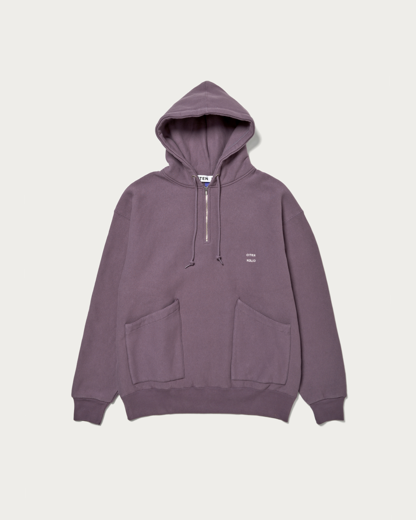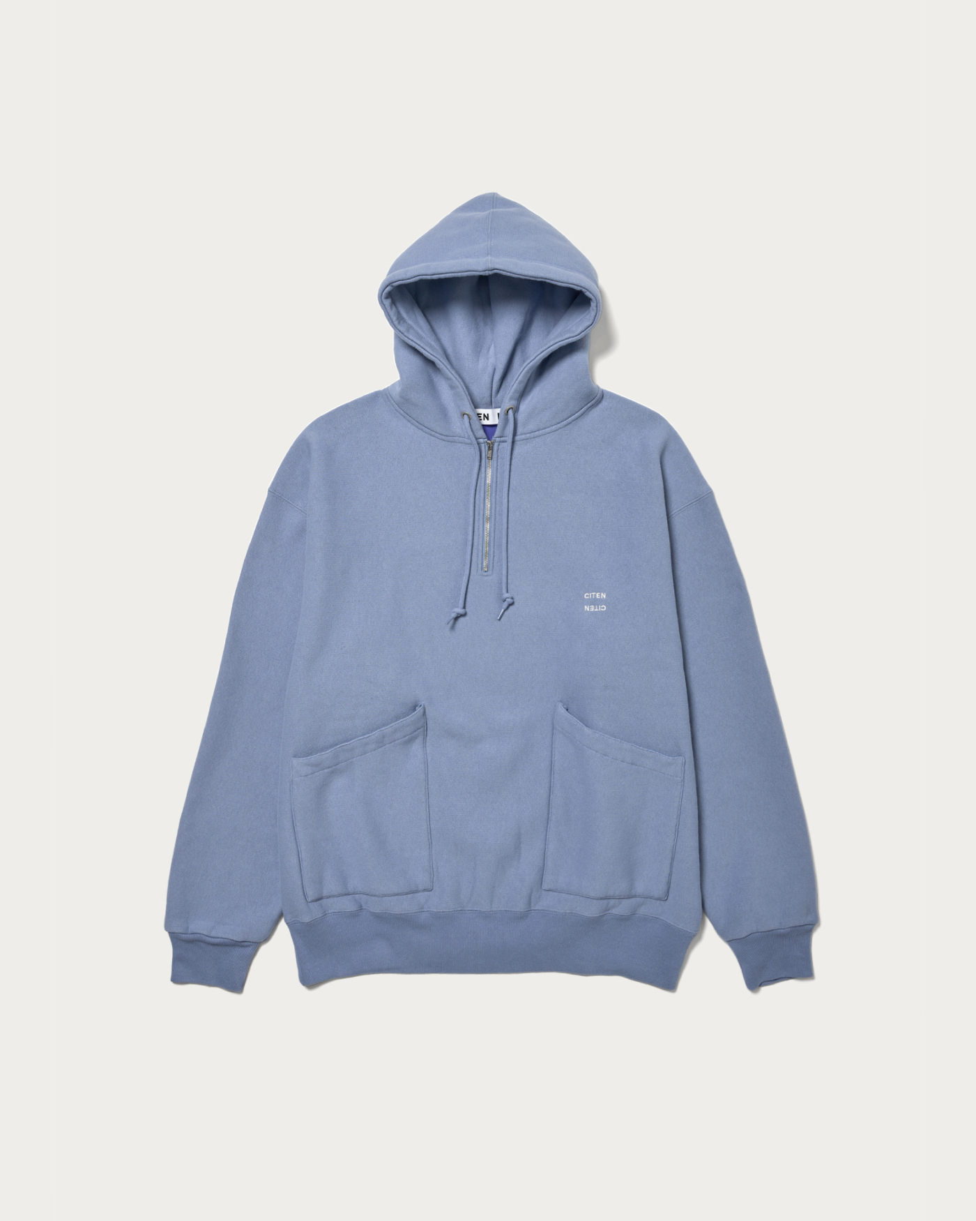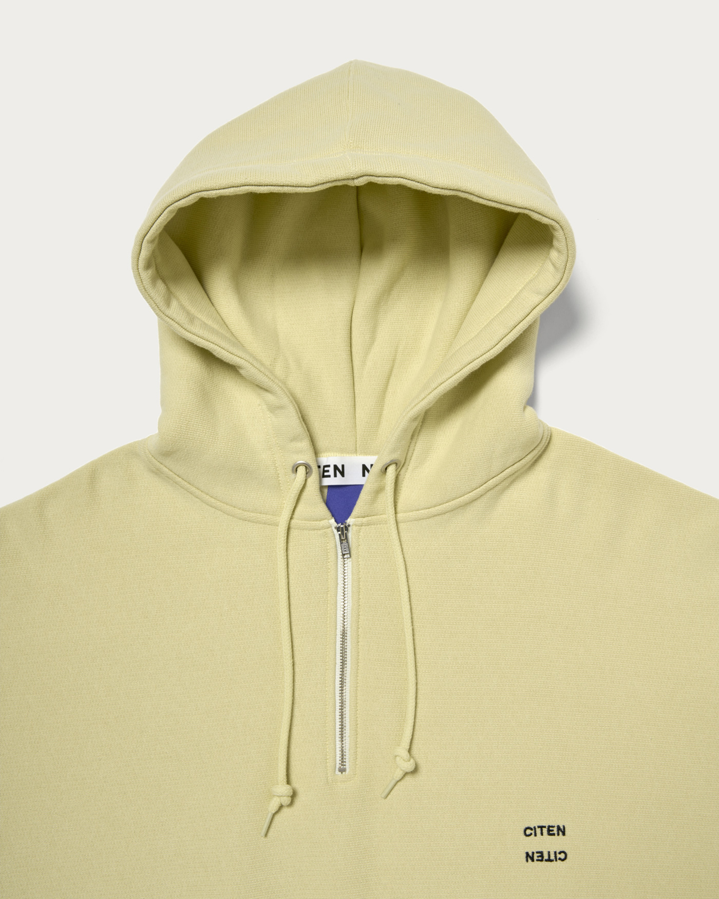A half-zip hoodie designed with a relaxed volume in mind, yet finished in a compact and elegant manner to reflect this year's overall balance. Within its refined silhouette, we've incorporated subtle and delicate details such as the orientation of the material, side specifications, and the CITEN embroidered logo. Inspired by vintage archives, the design around the pockets and the half-zip is uniquely translated into a modern form.