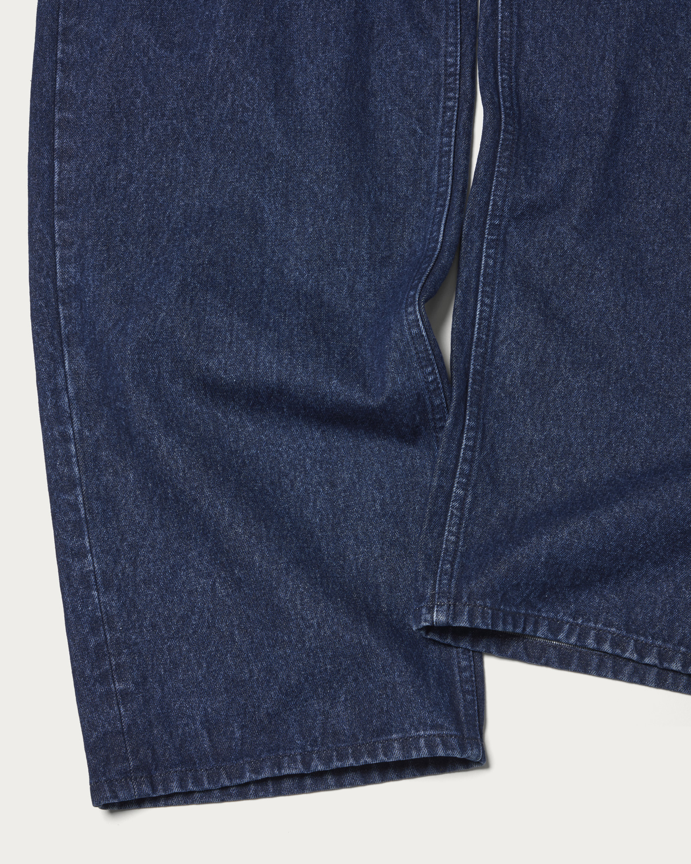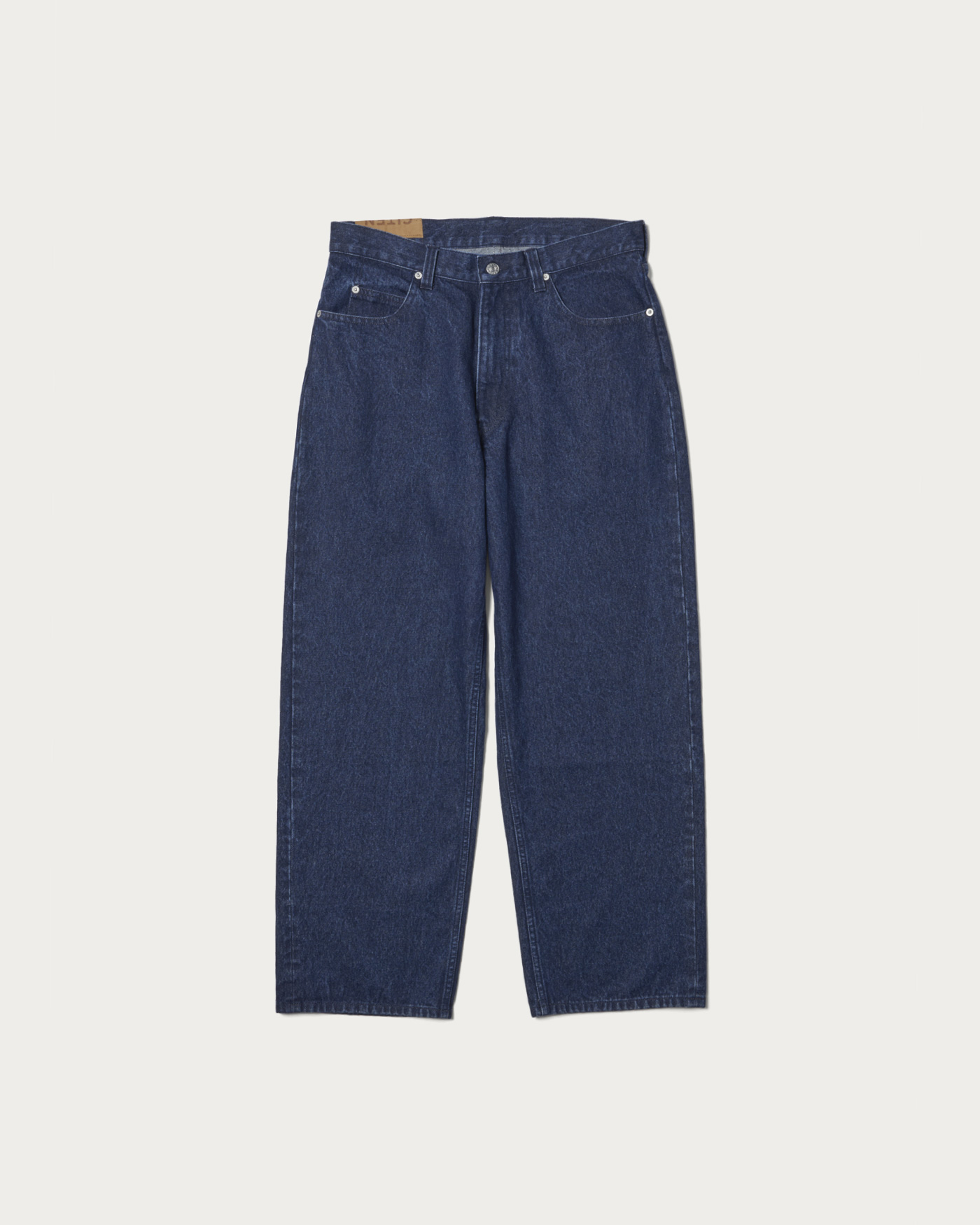 Baggy silhouette denim pants made from distinctive 12-ounce denim fabric with a textured feel. The waist area is designed to be slightly tight, and the inseam is crafted to form a clean cocoon silhouette. The CITEN patch above the back pocket has also been updated. You can wear it as a set with a matching jacket made from the same material.