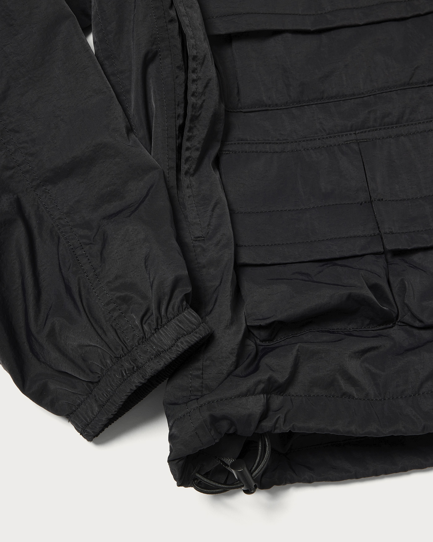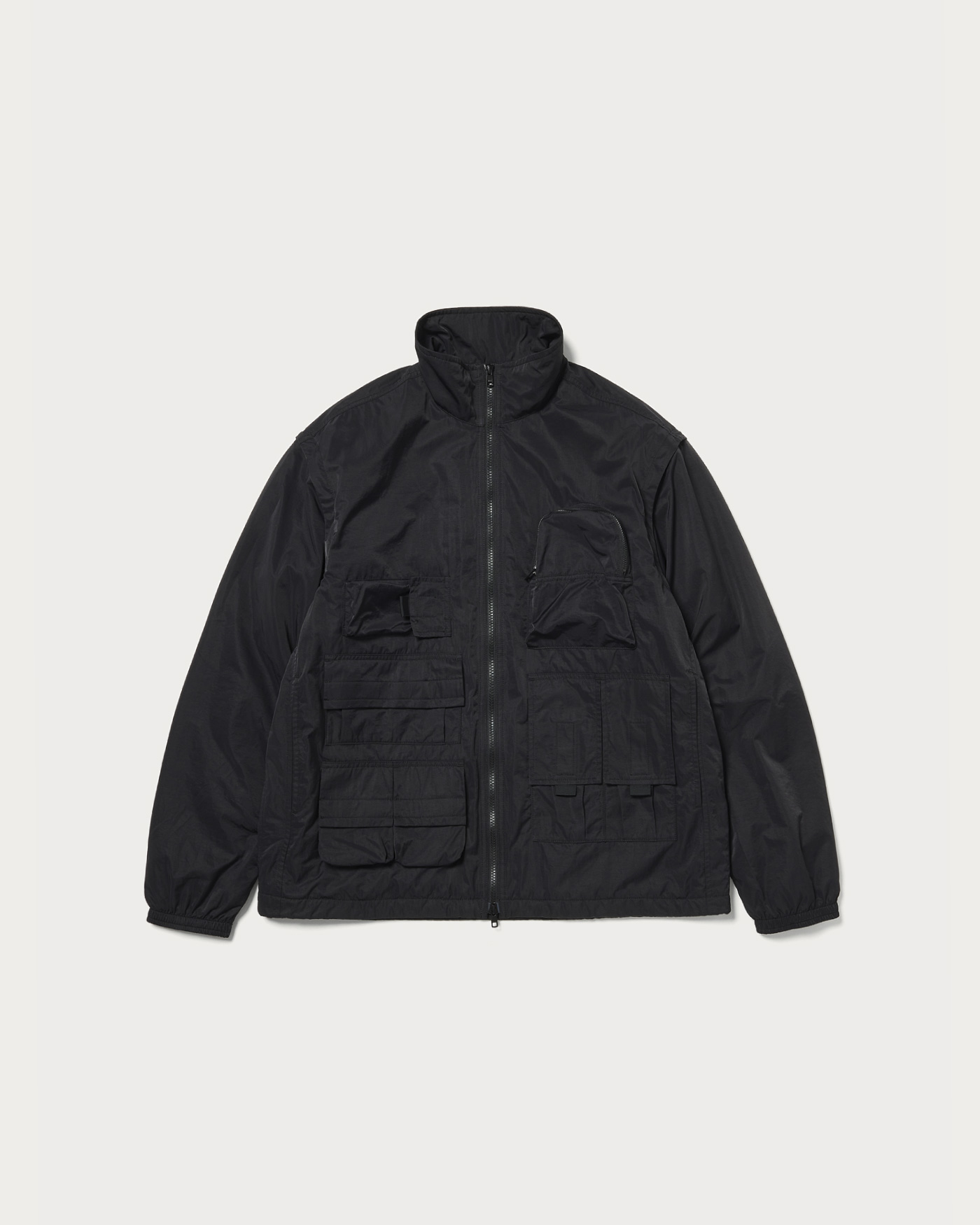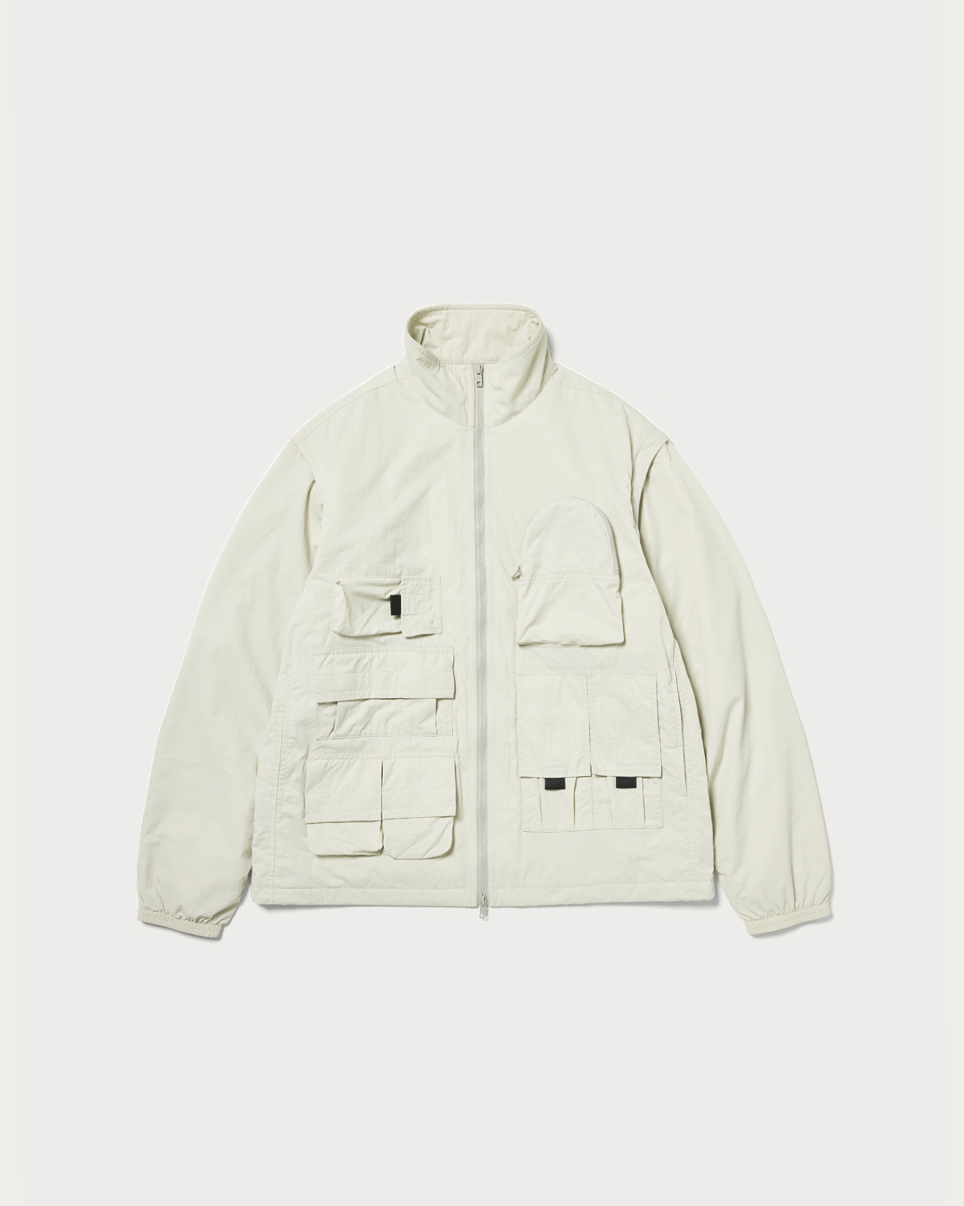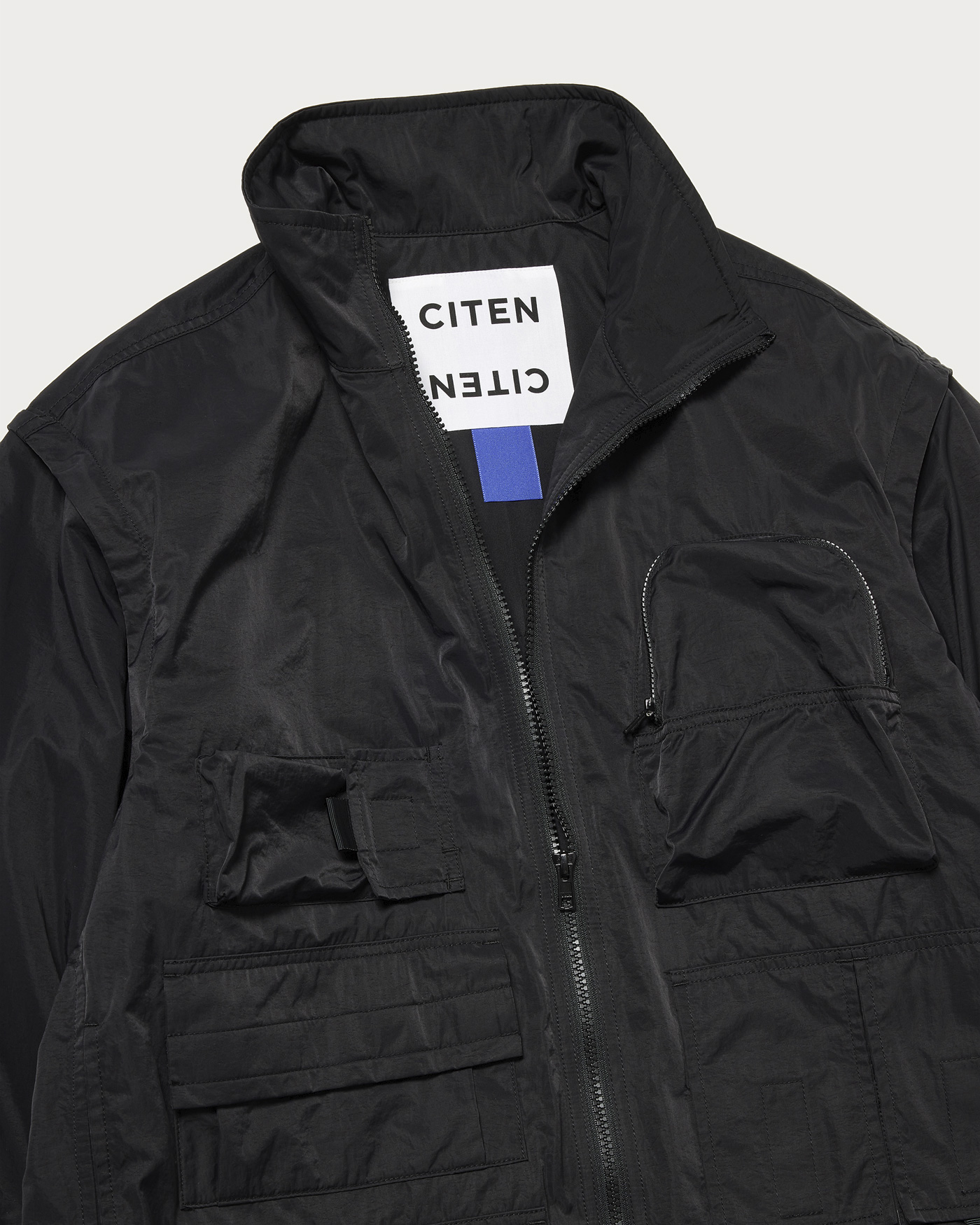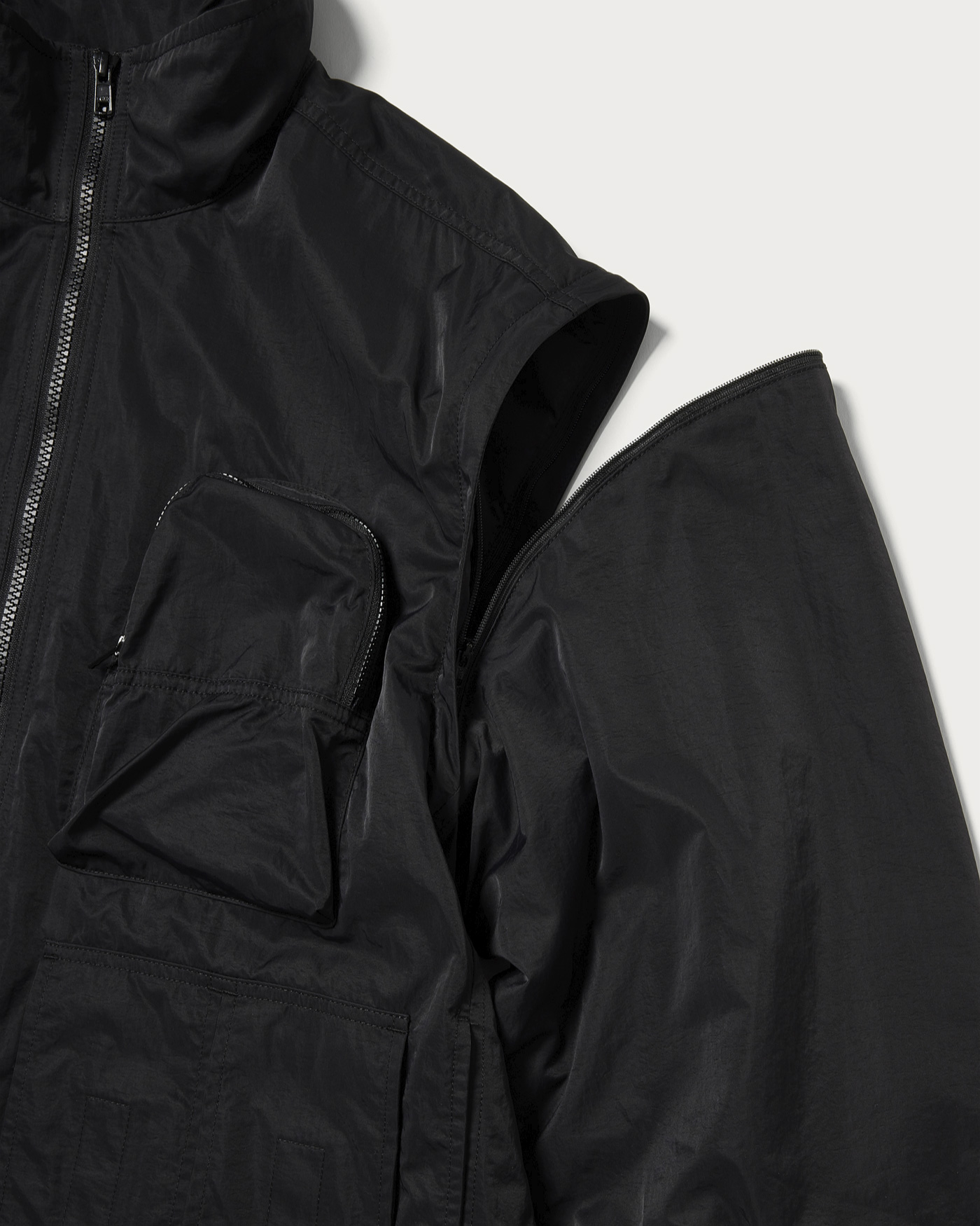 A multi-pocket blouson made from matte, durable nylon material. It features a design with detachable sleeves, allowing it to be worn as a vest. The multi-pockets on the front are designed for practicality, providing excellent storage for items like your mobile phone and wallet.