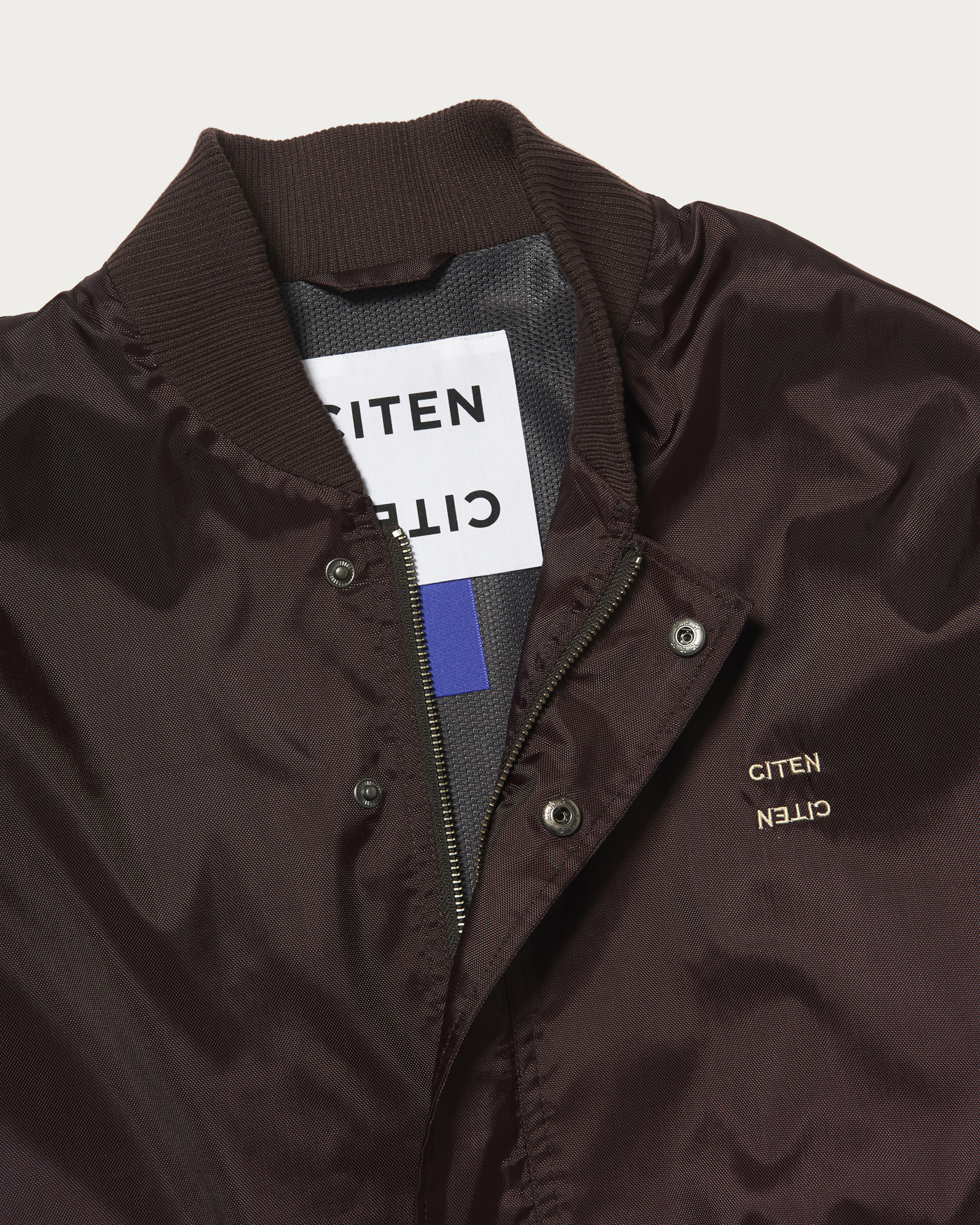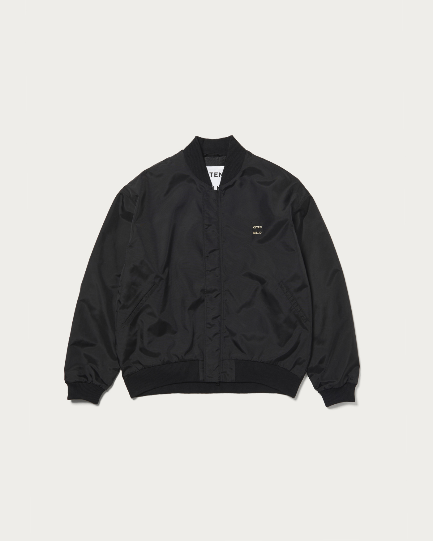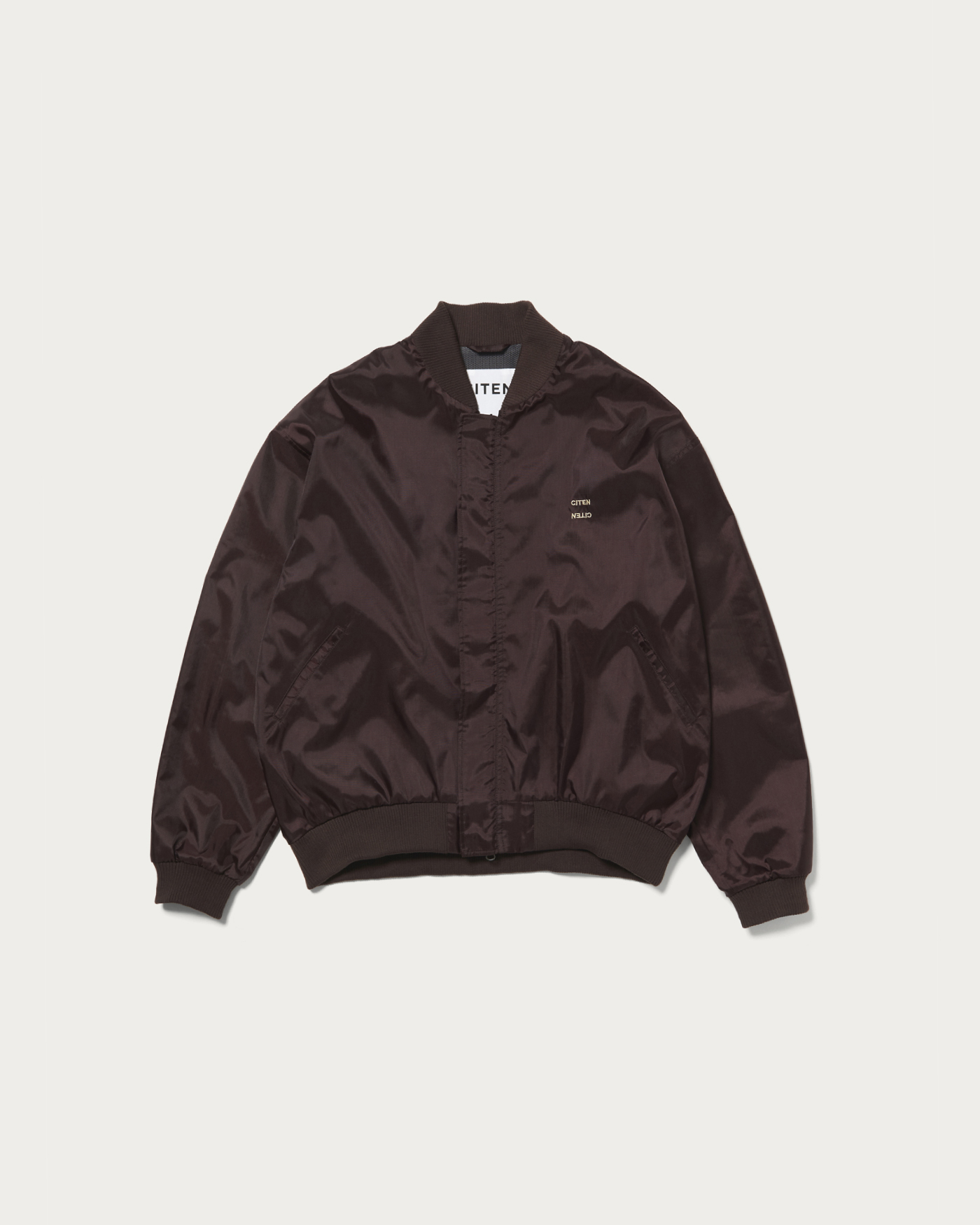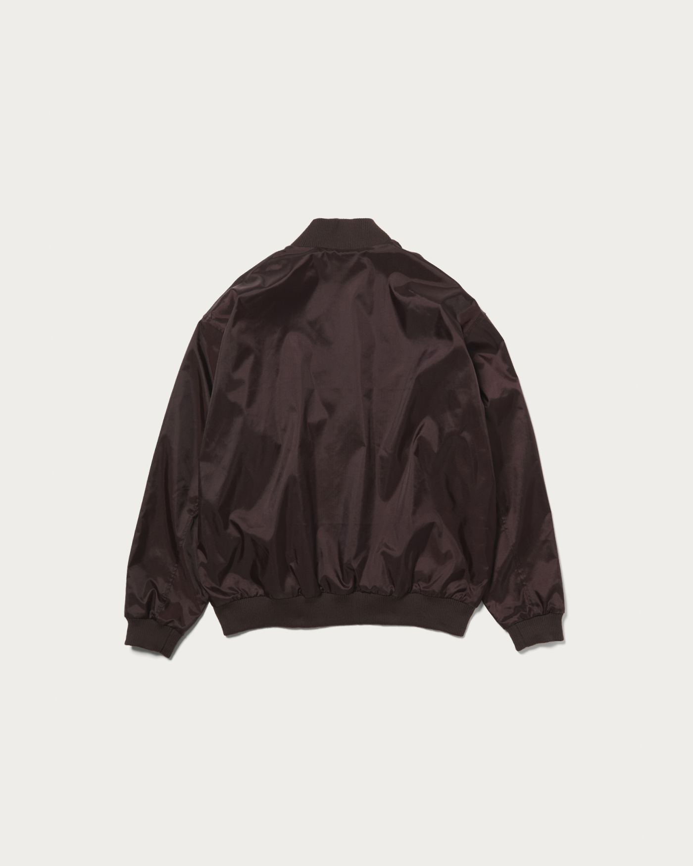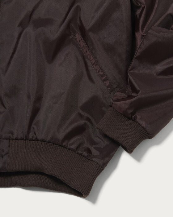 A blouson with a moderate sheen and voluminous balloon silhouette that exudes a retro vibe. By slightly tightening the ribbed hem, we've crafted a blouson with a retro feel. The logo is placed on the left chest.