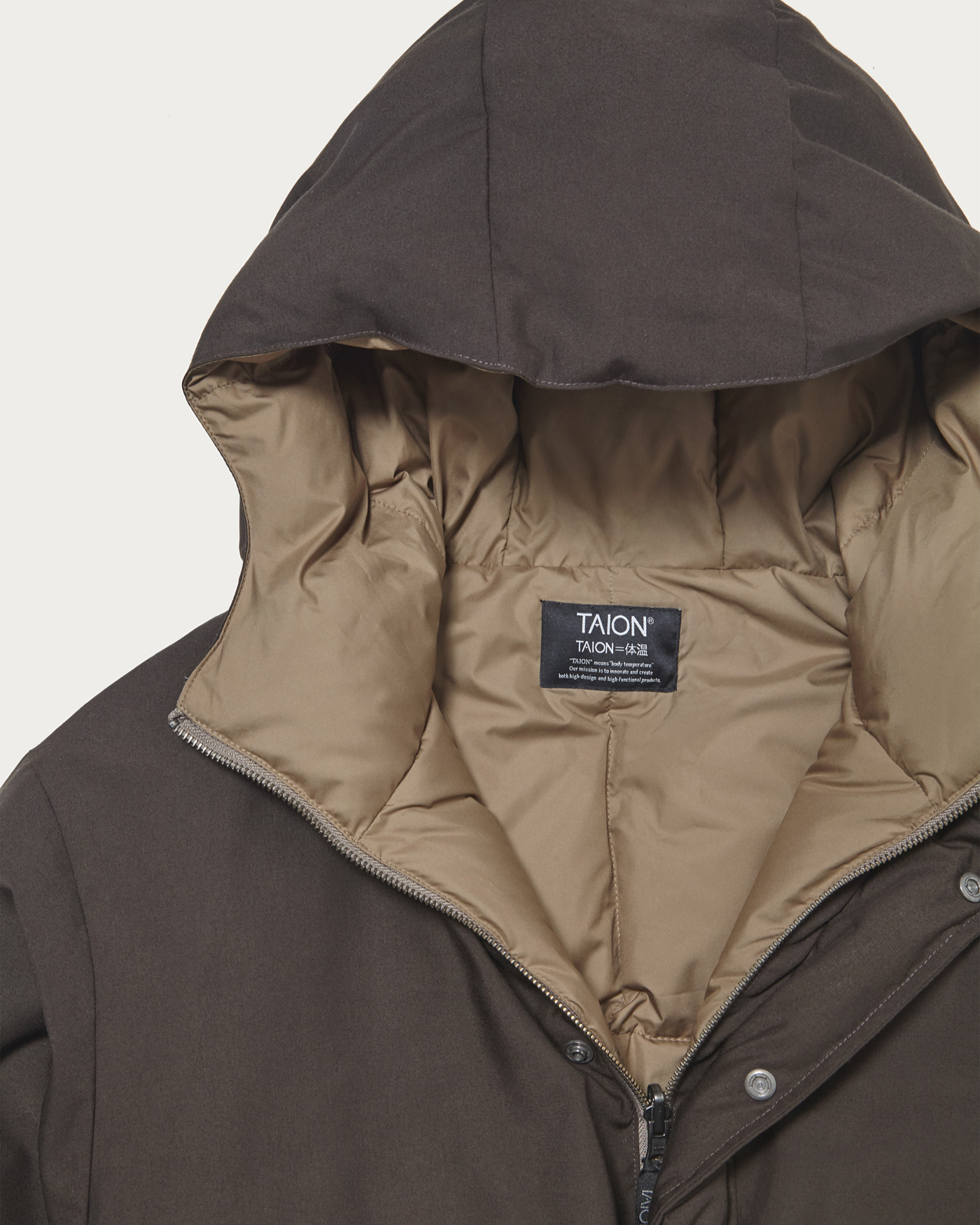 A special collaboration project with TAION. The design is custom-made, combining the comfort of high-cost-performance down with the smart casual style of Green Label Relaxing. It features a reversible design, allowing you to enjoy the refined look of T/R fabric. In addition to the classic black, this season's trendy brown color is also available. The balance of moderately lightweight fabric and ample down filling achieves both lightness and warmth for the depths of winter.