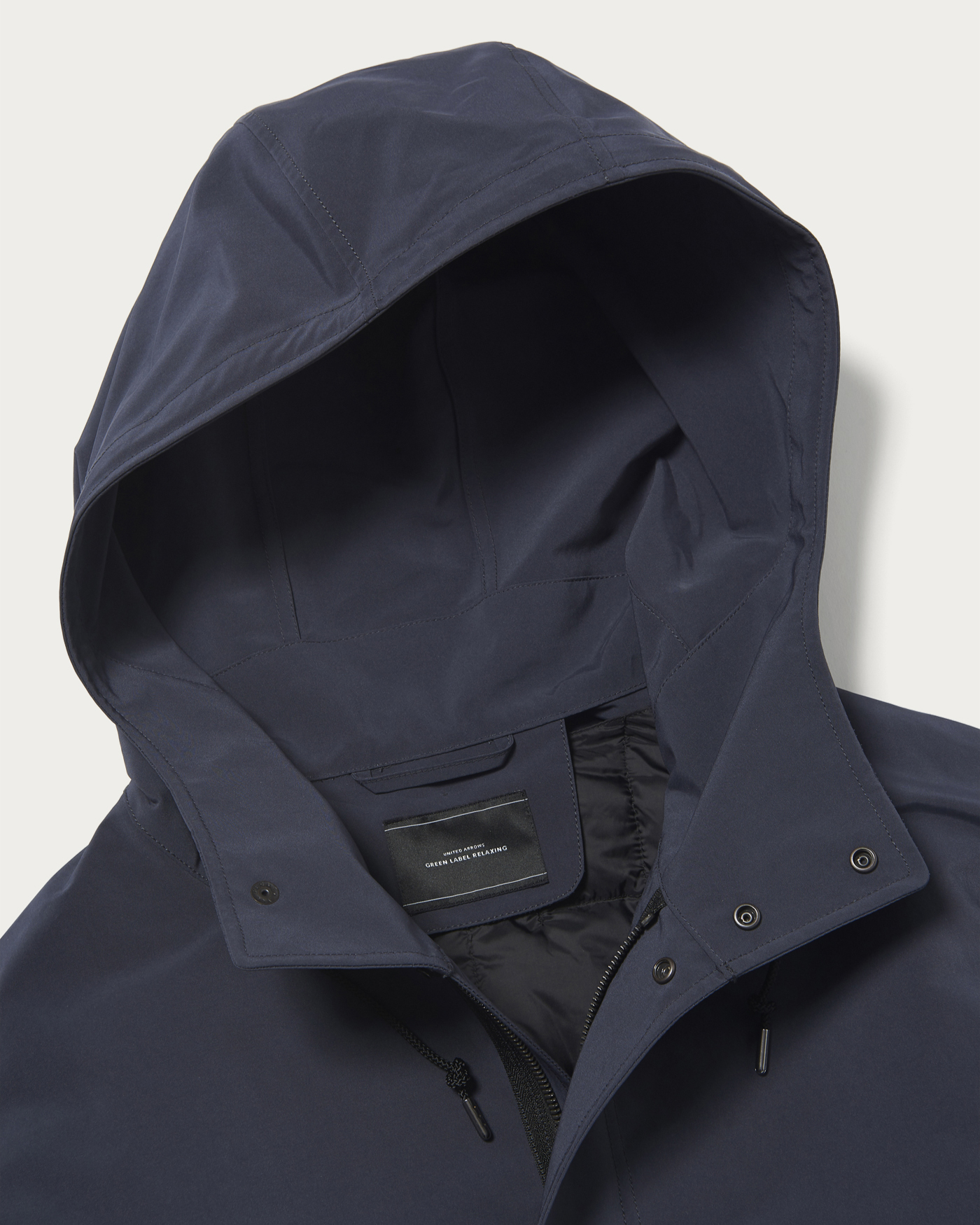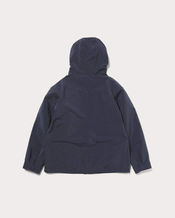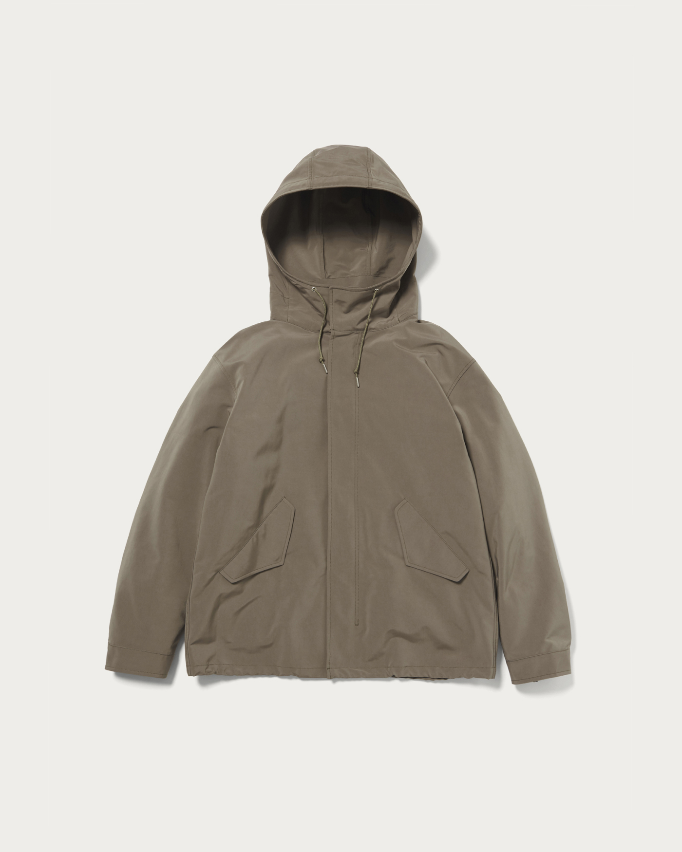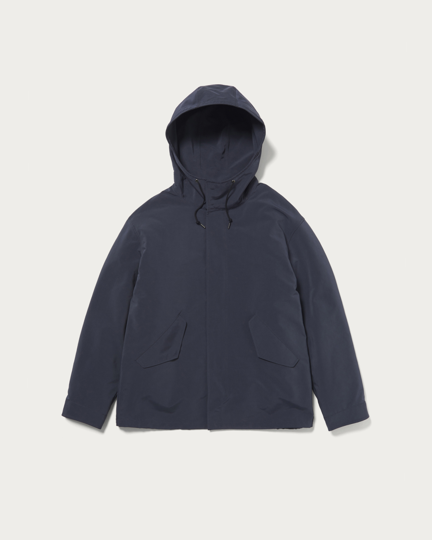 Designed as a blouson-length mod coat, this piece features a pattern that ensures the hood appears three-dimensional, with simple and clean detailing. It boasts a 3-way design with a removable TAION DOWN, making it versatile for three seasons. Made from high-density weather fabric, it offers a unique memory touch that is truly appealing. It uses an original material from Green Label Relaxing, manufactured in Fukui Prefecture.