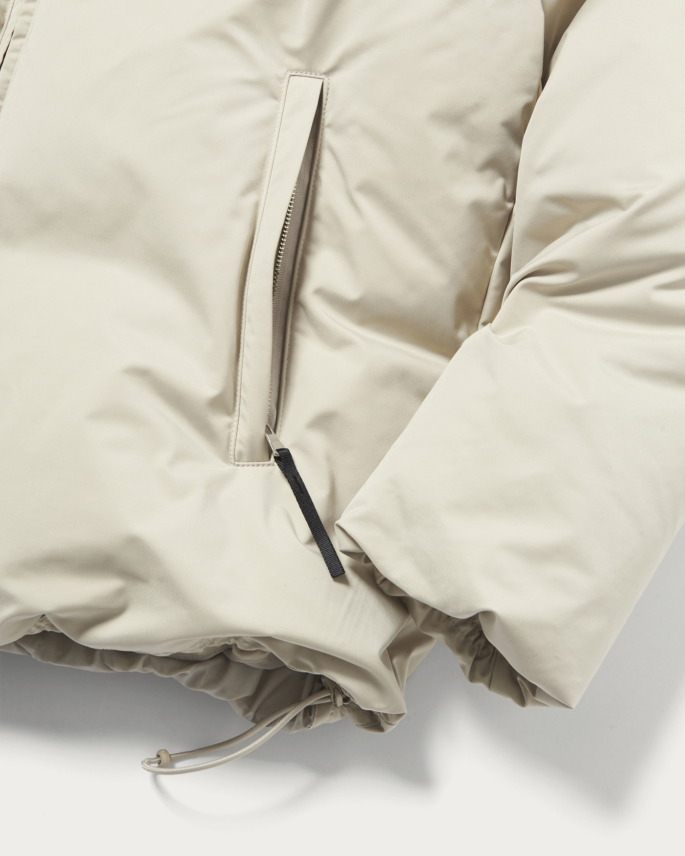 Short-length stand collar down blouson. When it's cold, you can use the hood hidden in the collar. With understated detailing, it's a piece that can be worn elegantly. Lightweight and versatile, it is suitable for a wide range of occasions, from casual to slightly formal settings.