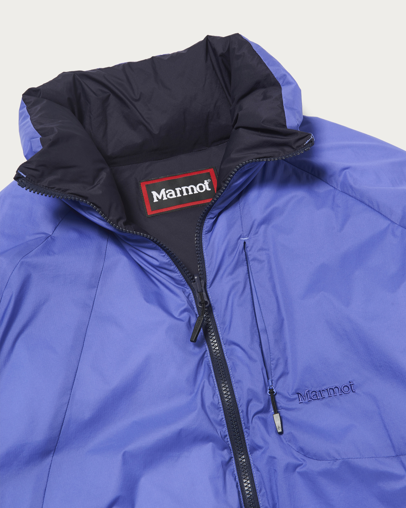 A special collaboration with Marmot. This piece uses a lightweight yet highly durable 15-denier nylon fabric with excellent water repellency. It combines 750 fill power water-repellent down to prevent moisture while providing high insulation. The reversible design with different color options allows you to enjoy versatile styling to match your outfit.
