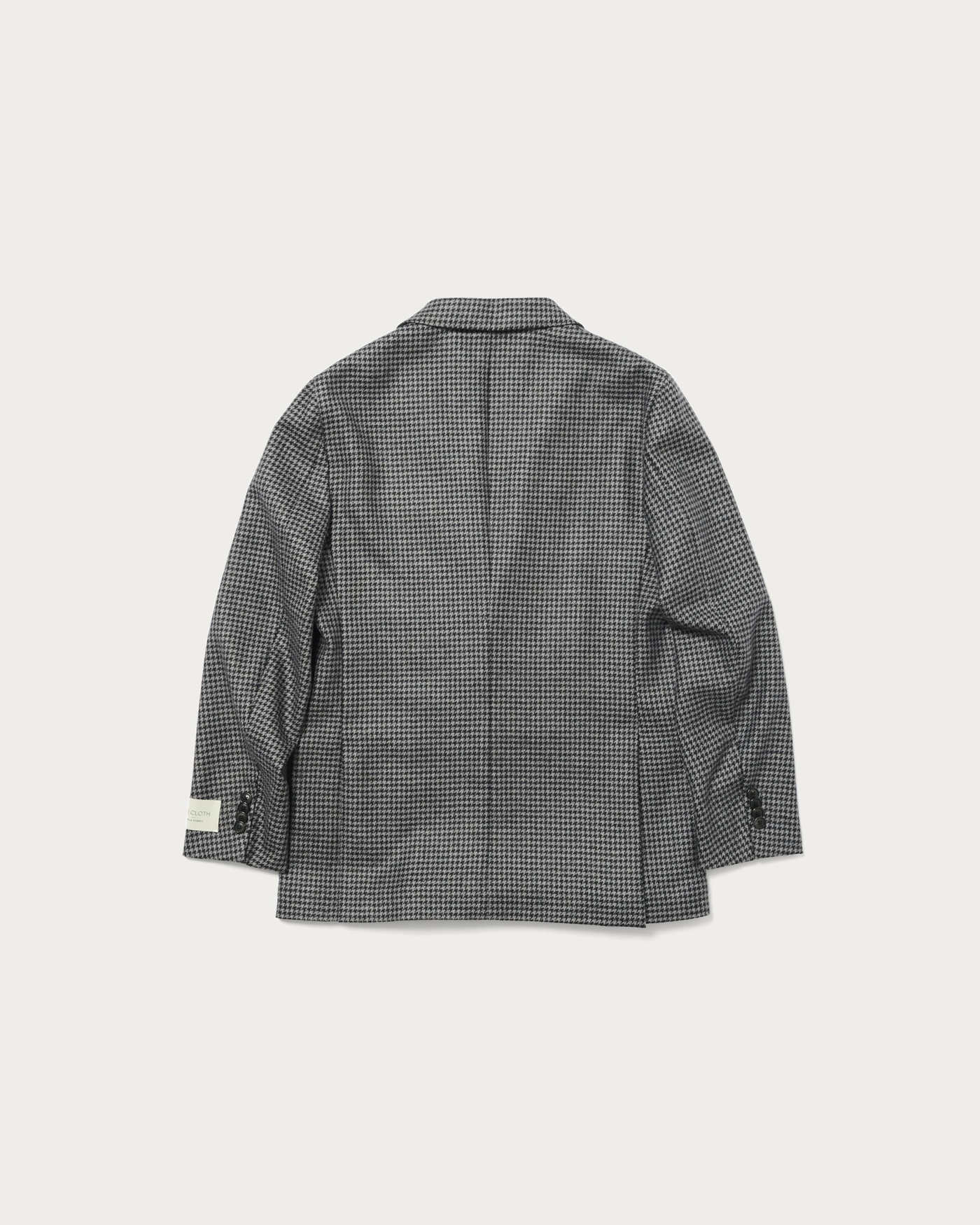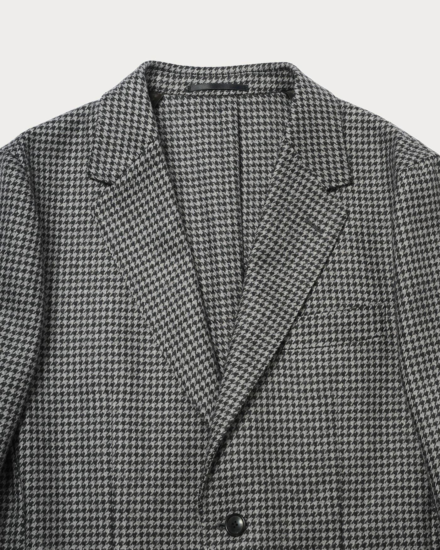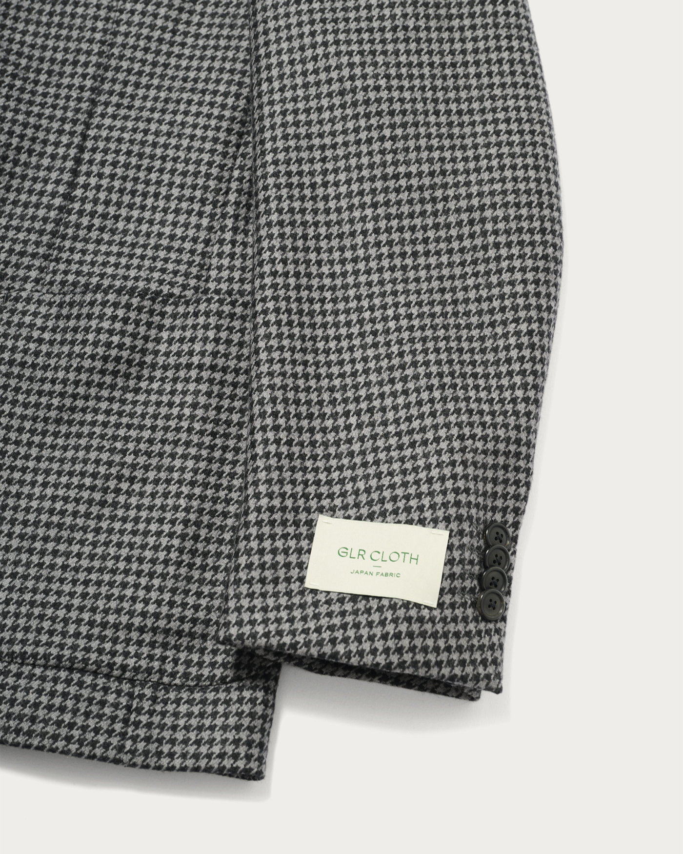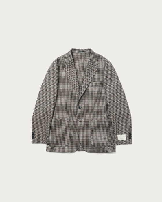 Green Label Relaxing's original material, the GLR CLOTH series, features domestically produced fabric with a unique milled texture that is more refined than Saxony yet not as heavy as flannel. This collection focuses on a soft, comfortable fit with an unconstructed regular body, enhanced by classic details. The moderately large houndstooth pattern leaves a striking impression, making this single jacket a perfect match for both slacks and denim, ideal for the autumn and winter seasons.