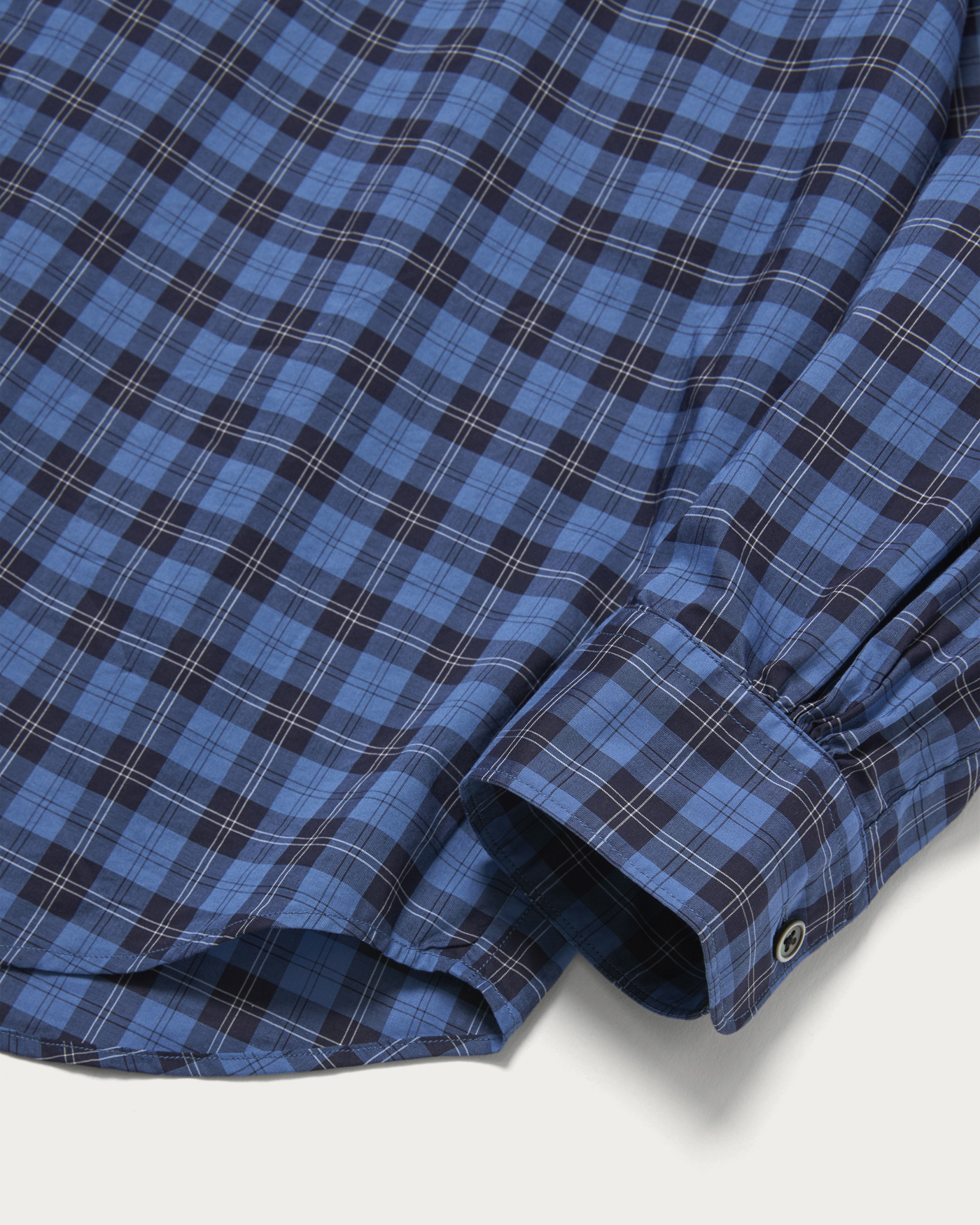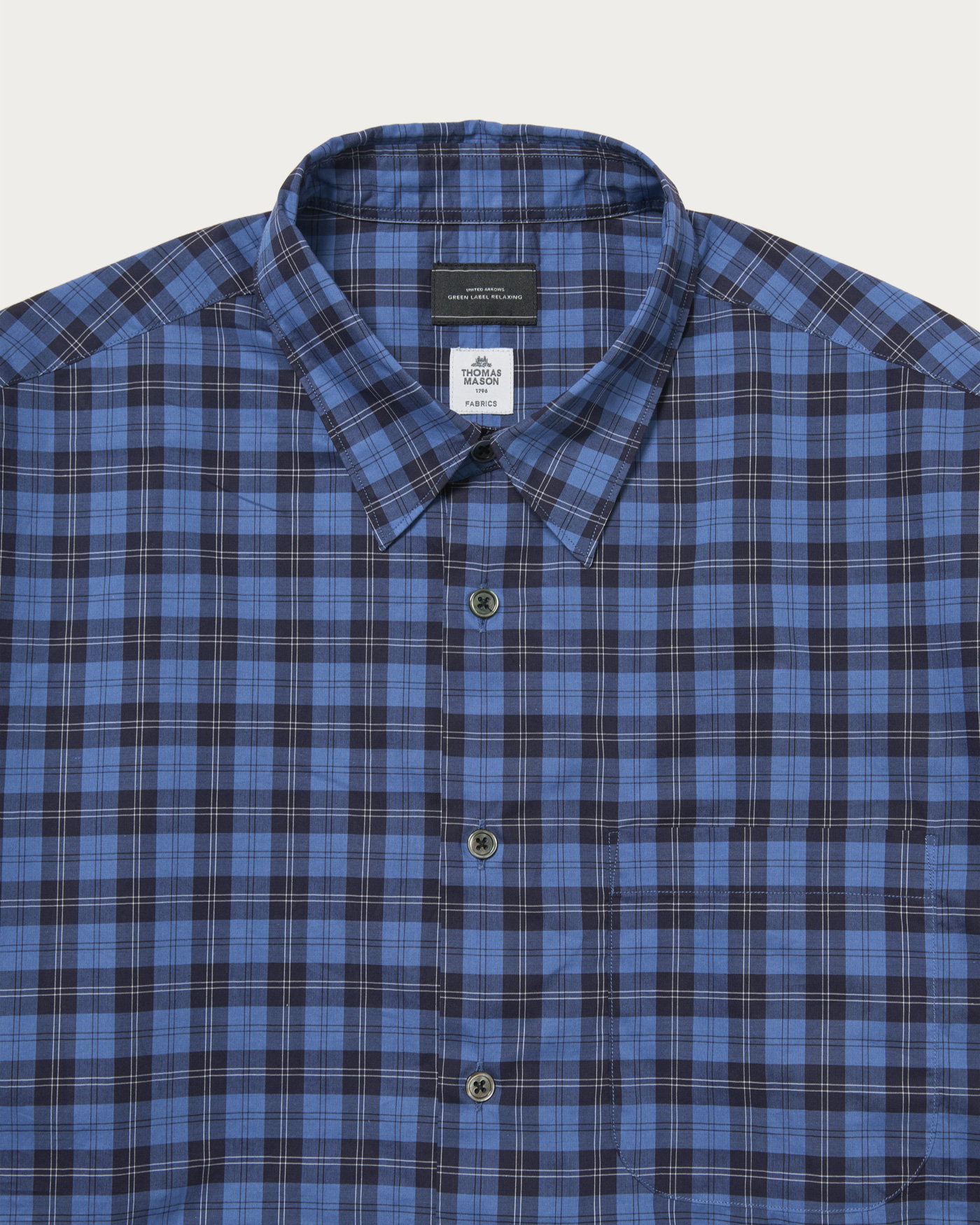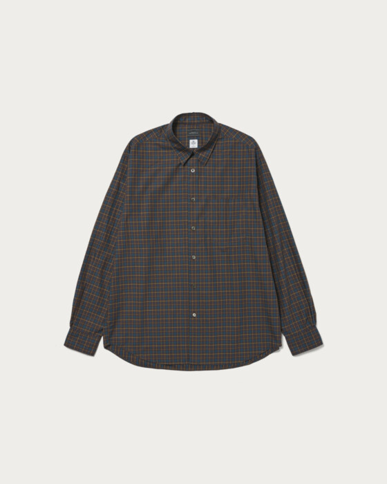 A shirt made with fabric from the prestigious British brand, Thomas Mason. It features an elegant sheen and smooth texture, with a just-loose silhouette that offers a comfortable fit. This season, in addition to stripes, sophisticated check patterns are also available.