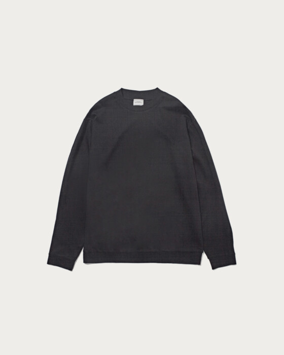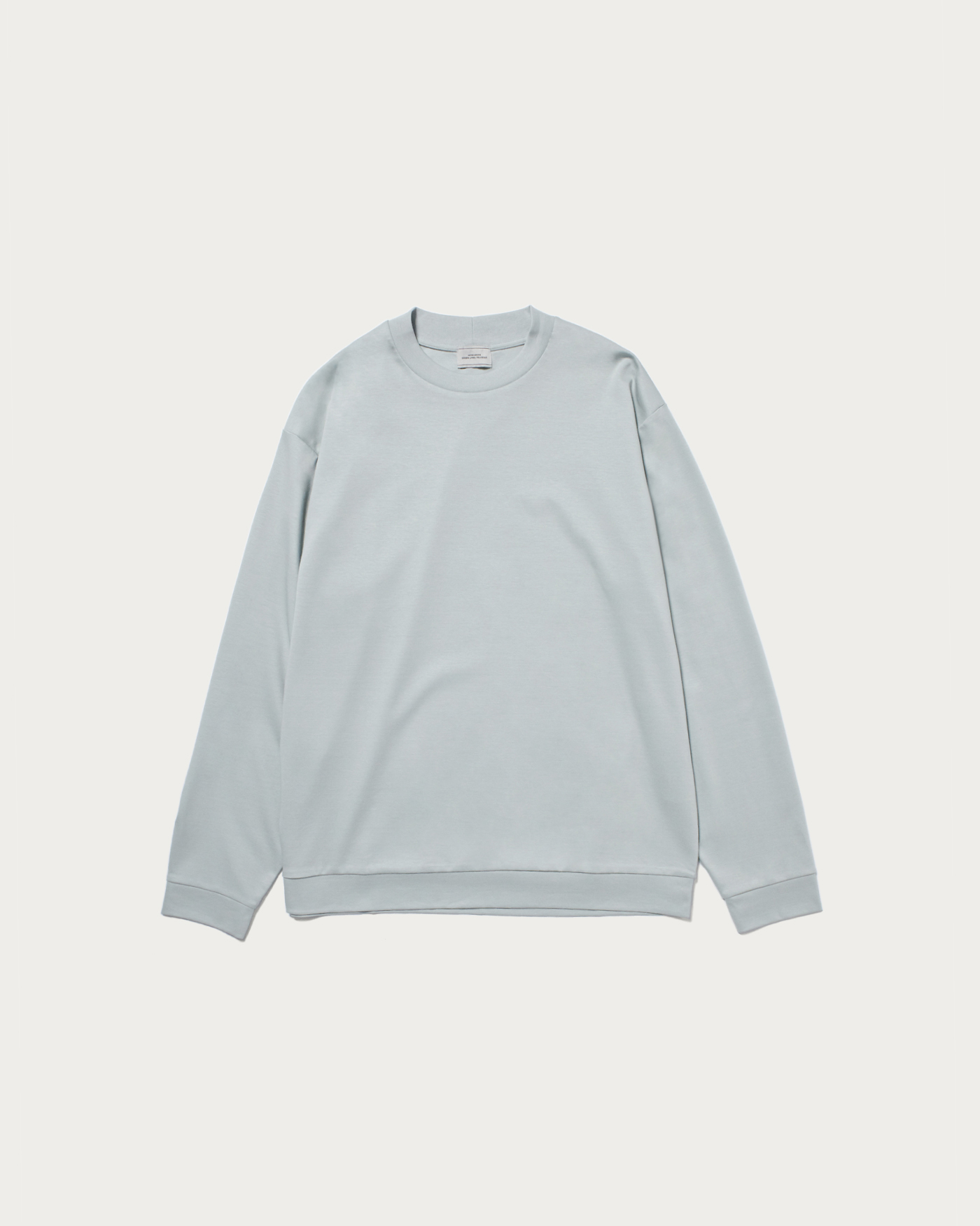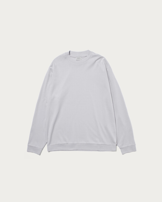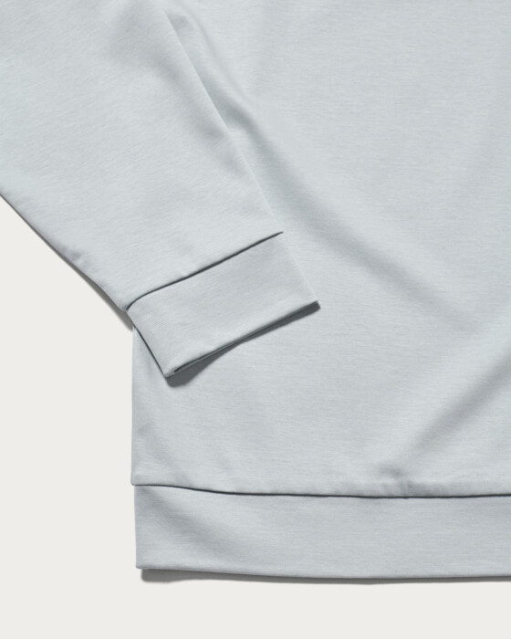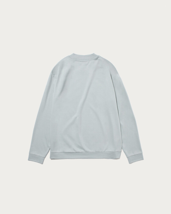 We used fine-count yarn to create a smooth and glossy ponte fabric through processing. The crew neck, with varying collar heights at the front and back, reduces neck stress when wearing a jacket. This piece is perfect as an inner layer.