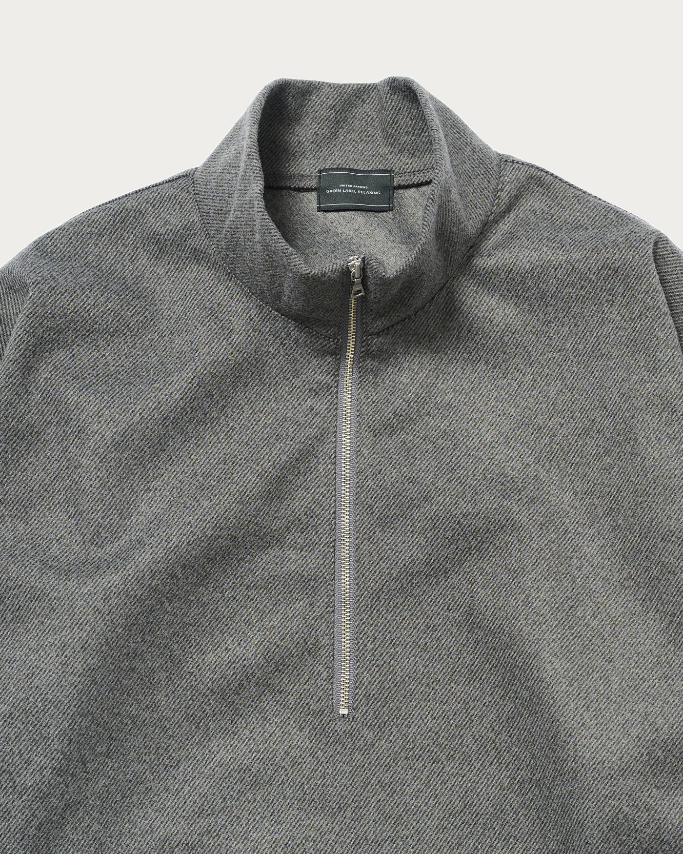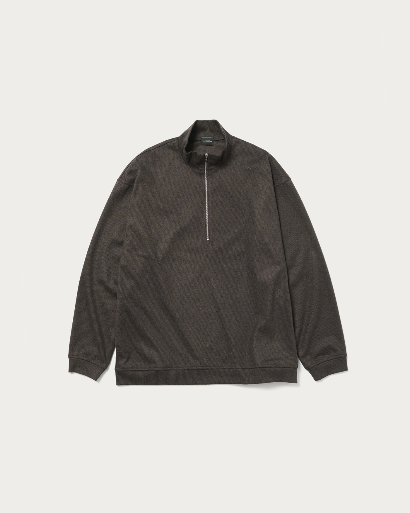 The Autumn/Winter Wonder Cross Series features a stand-collar half-zip blouson. This piece is crafted from a wool-like material, different from typical sweatshirts, offering warmth and an elegant impression. It uses polyester yarns dyed in varying shades, with a brushed finish to create a luxurious wool-like texture. Perfect for use as both an inner layer and a mid-layer.
