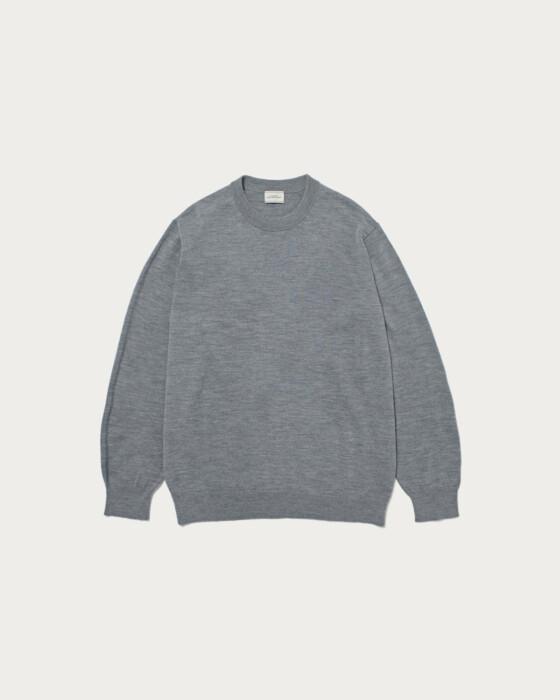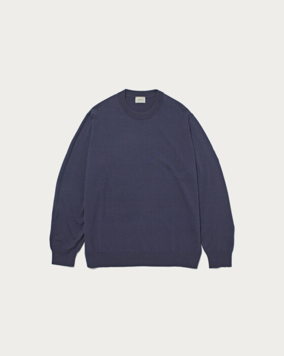 A classic basic high-gauge knit. Each season, we use carefully selected materials, and this season features wool known for its smooth, glossy finish and moderate fullness. The minimal design is complemented by a size that balances a polished look with just the right amount of ease, making it truly appealing.