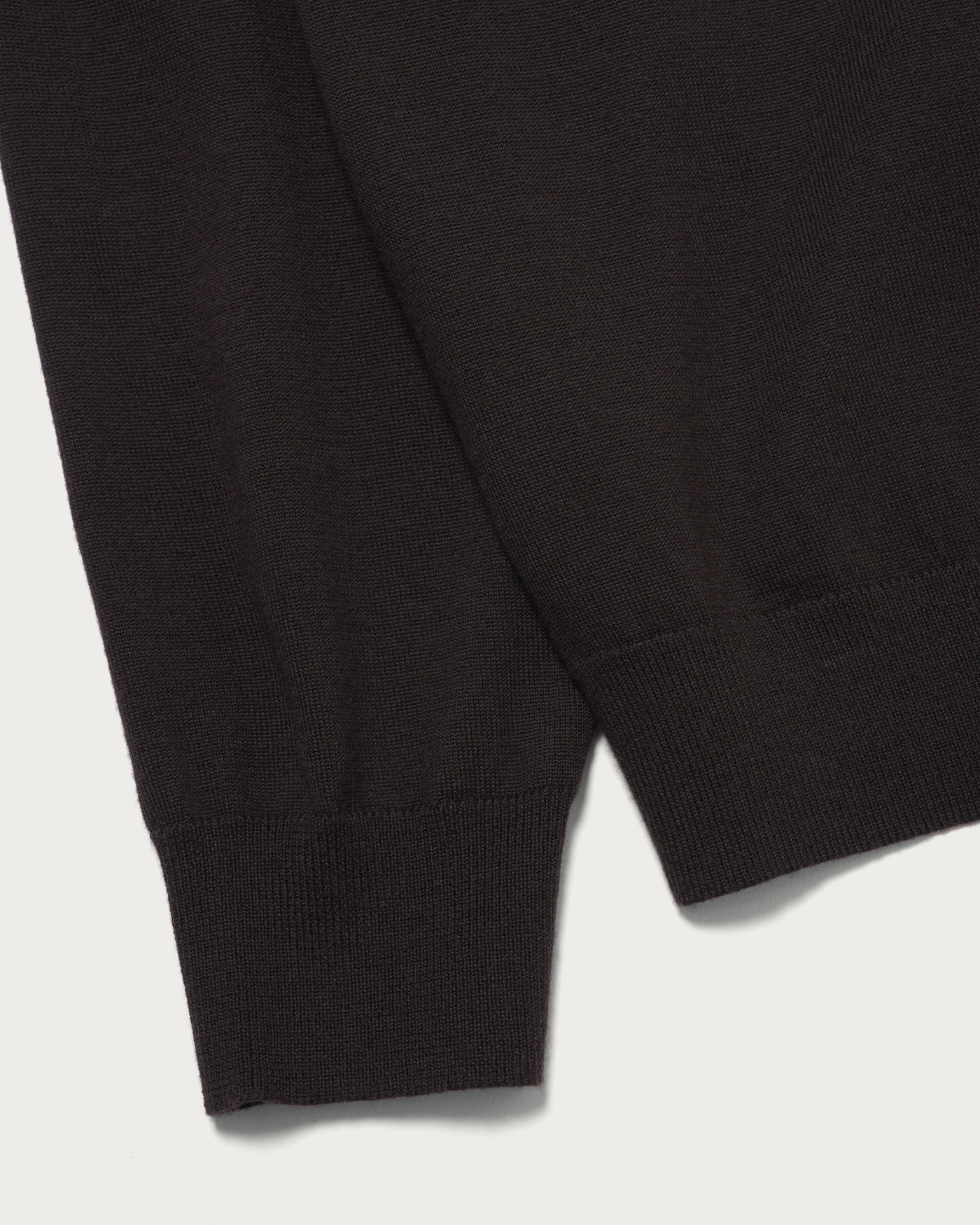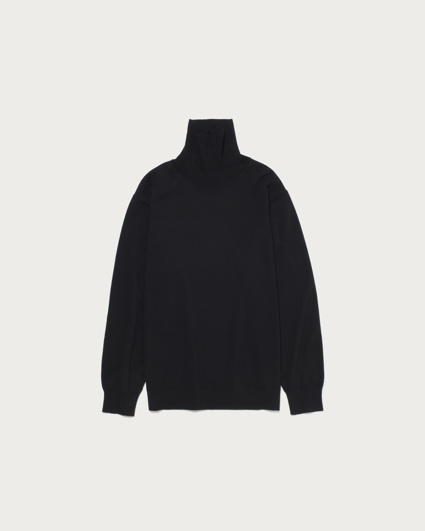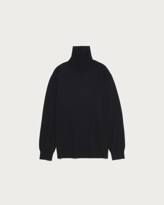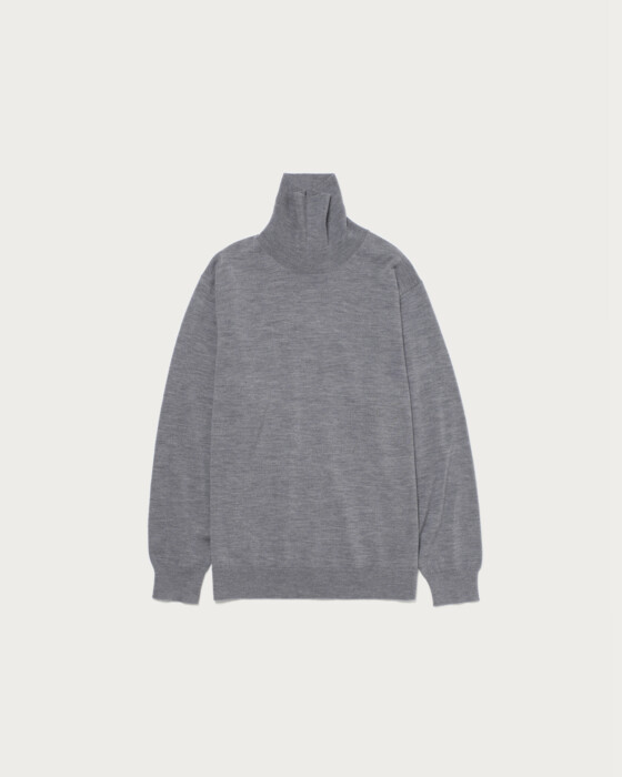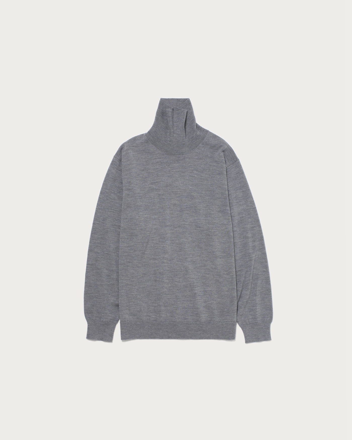 A basic high-gauge knit. Despite its simple design, this piece is meticulously crafted with attention to material, fit, and finishing details. Compared to last year's model, the collar tips have been slightly narrowed for a more refined look. Made with Super 120 wool, it offers a smooth texture and a subtle sheen that exudes elegance.